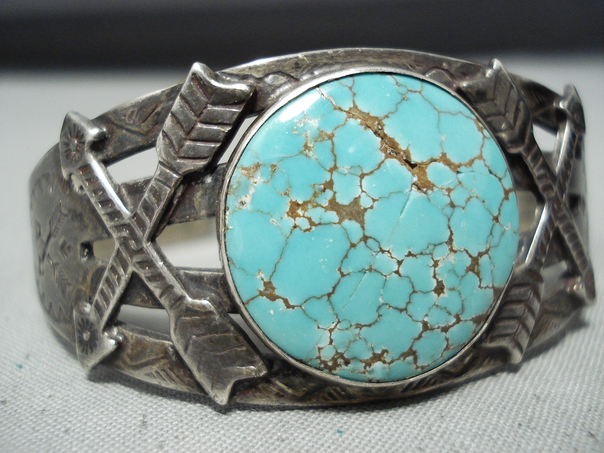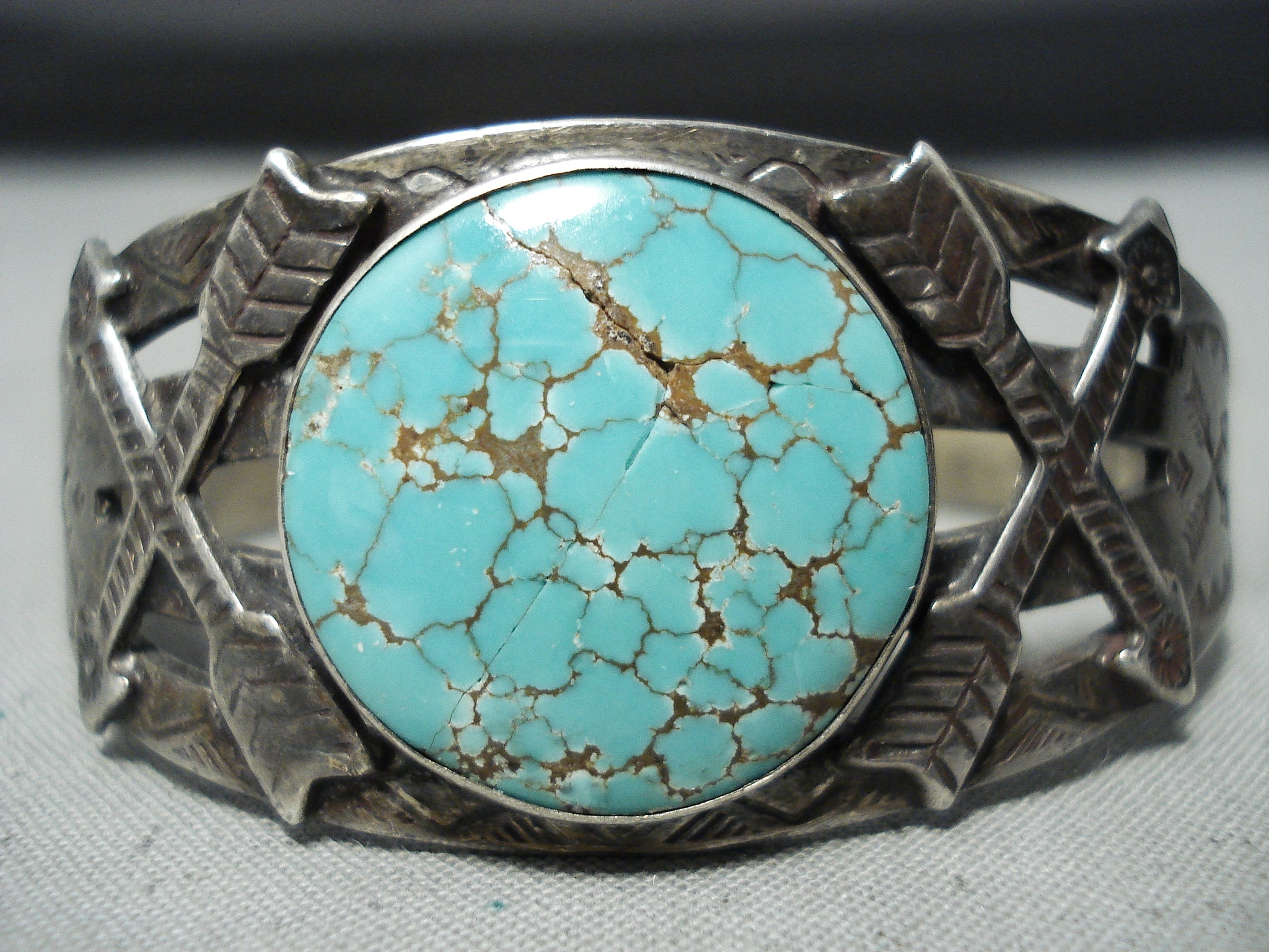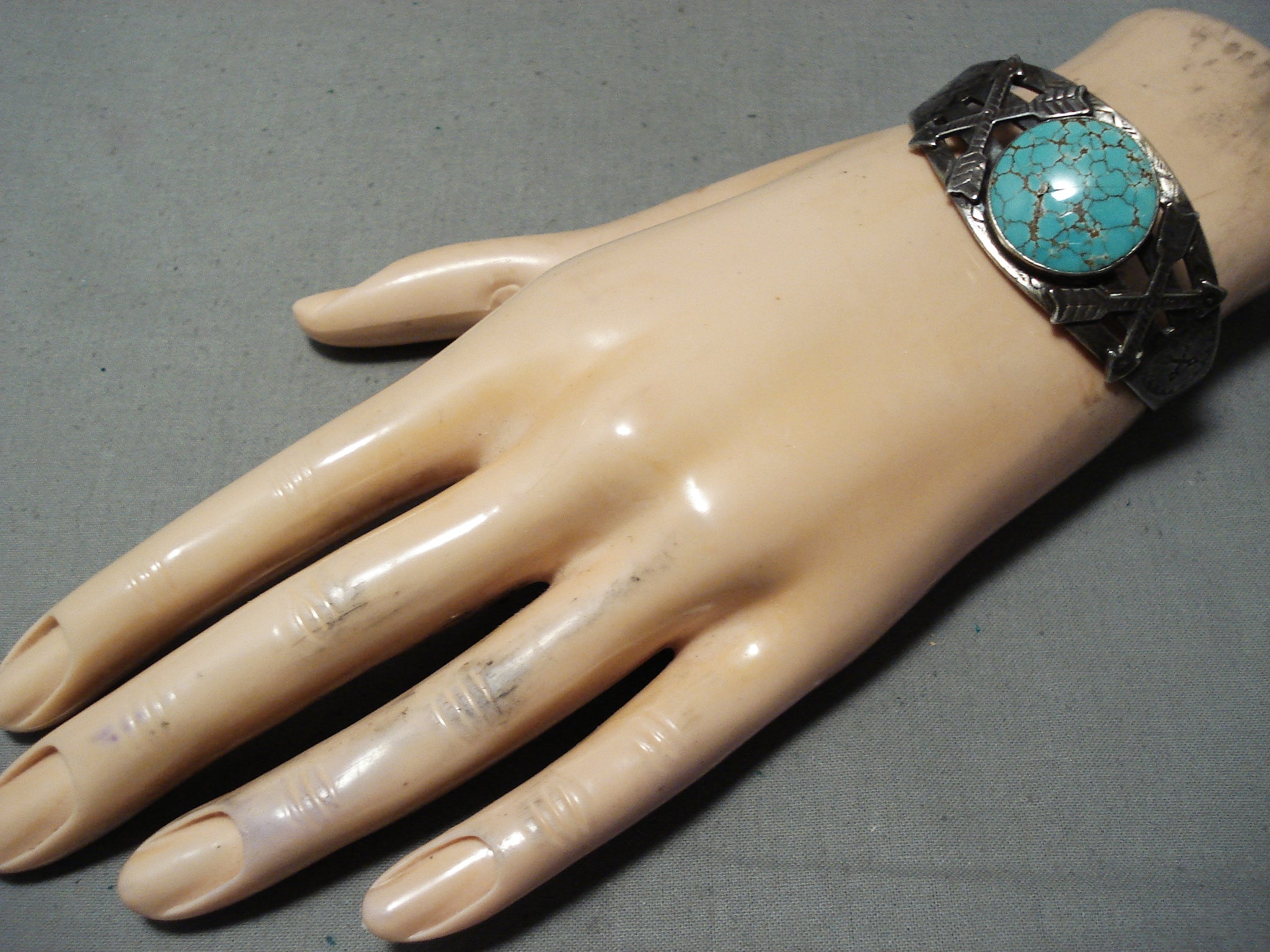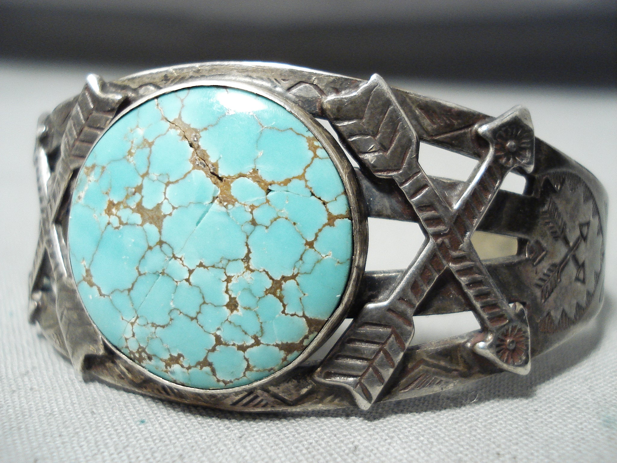 Museum Crossed Arrows Vintage Native American Navajo Turquoise Sterling Silver Bracelet