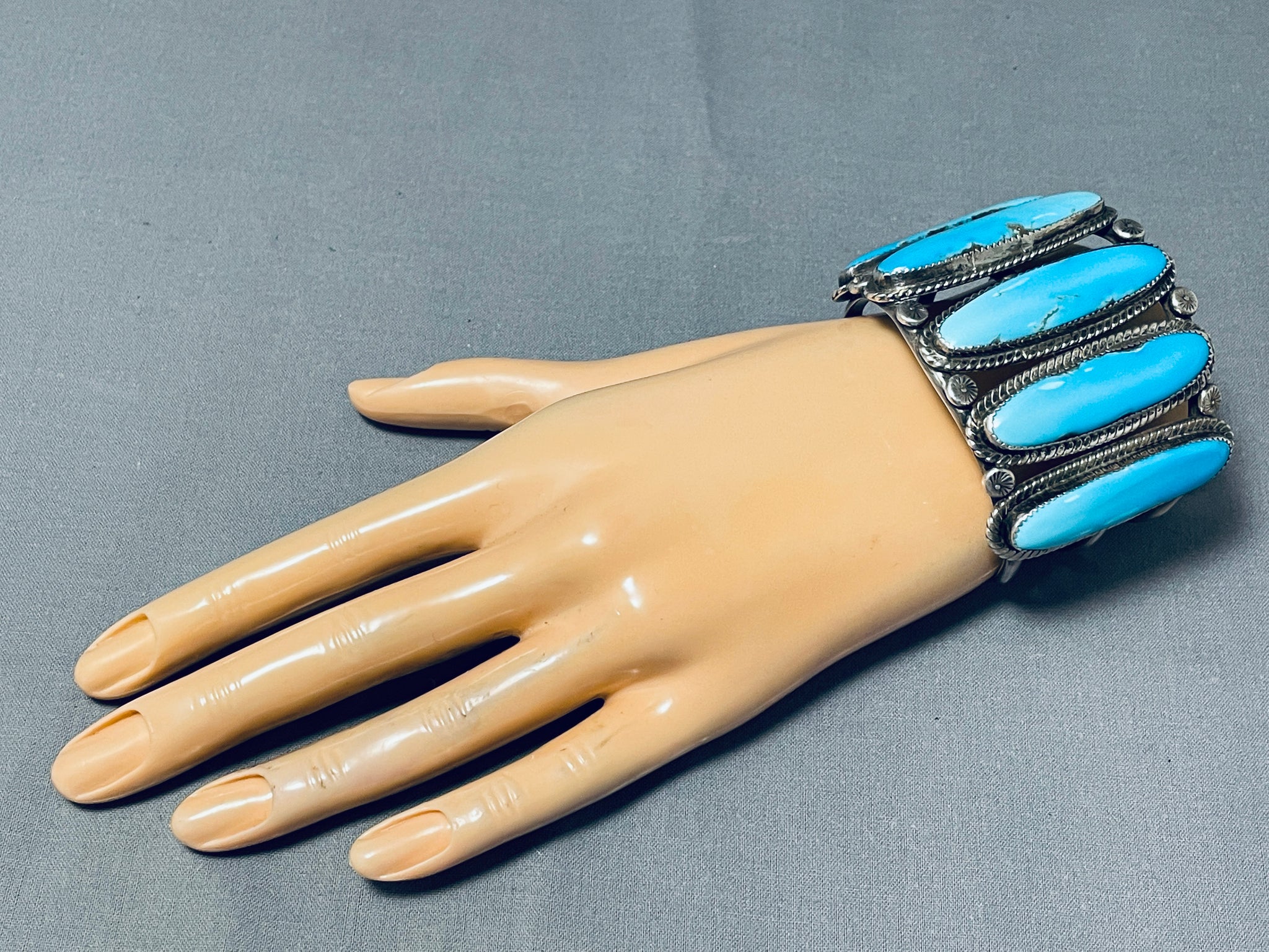 Museum Mind Blowing Vintage Native American Navajo Long Turquoise Sterling Silver Bracelet