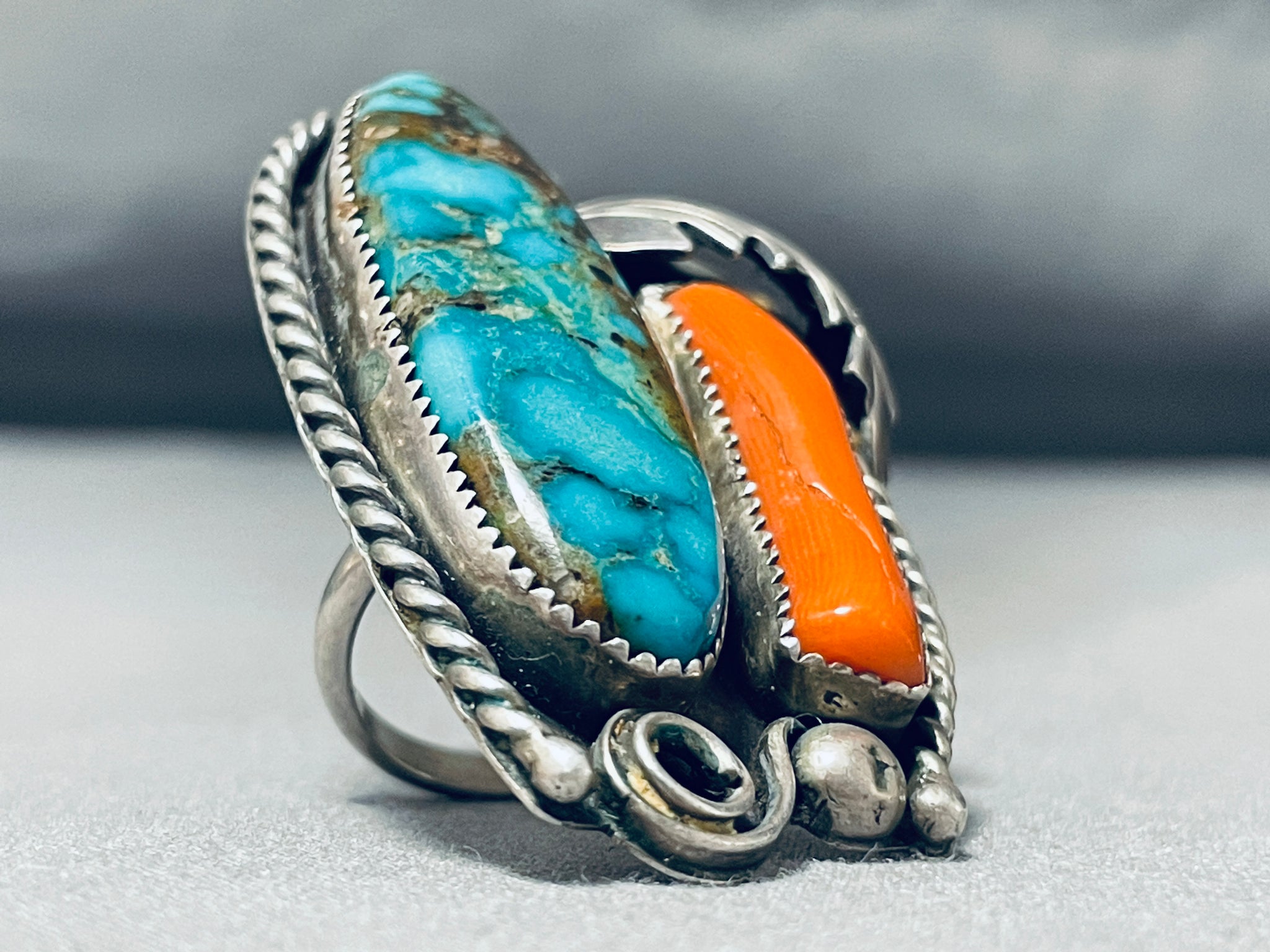 Museum Quality Vintage Native American Navajo Bisbee Turquoise Sterling Silver Ring