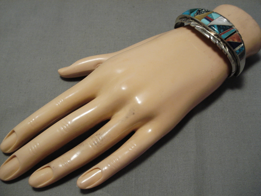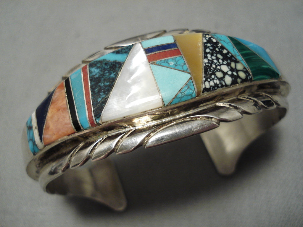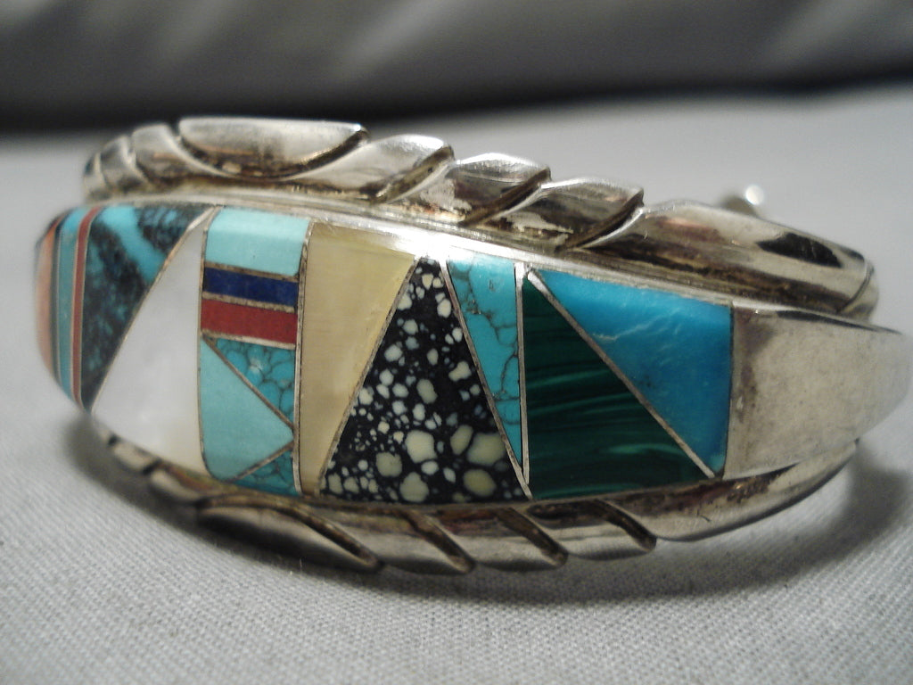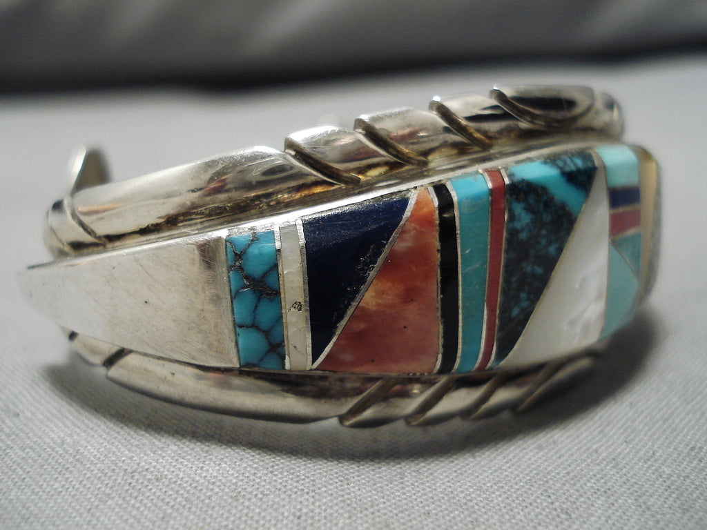 Museum Quality Vintage Native American Navajo Lander Blue Turquoise Sterling Silver Bracelet