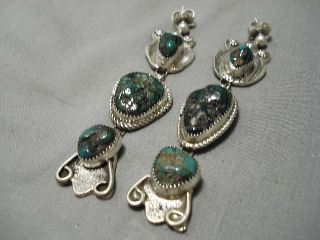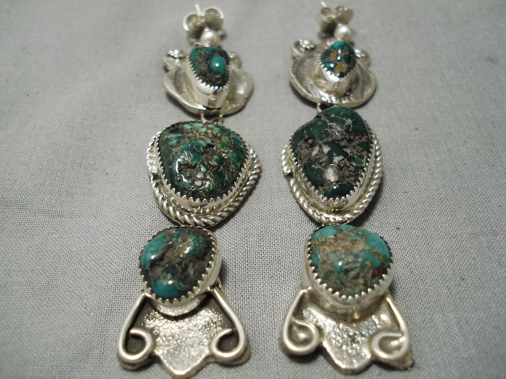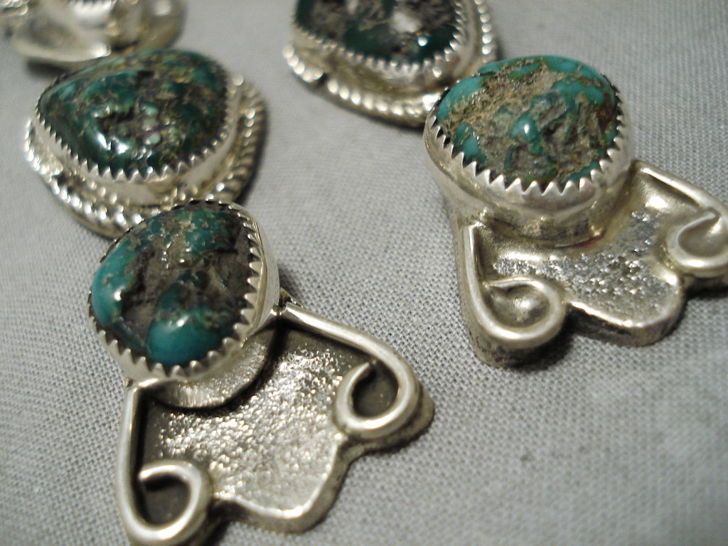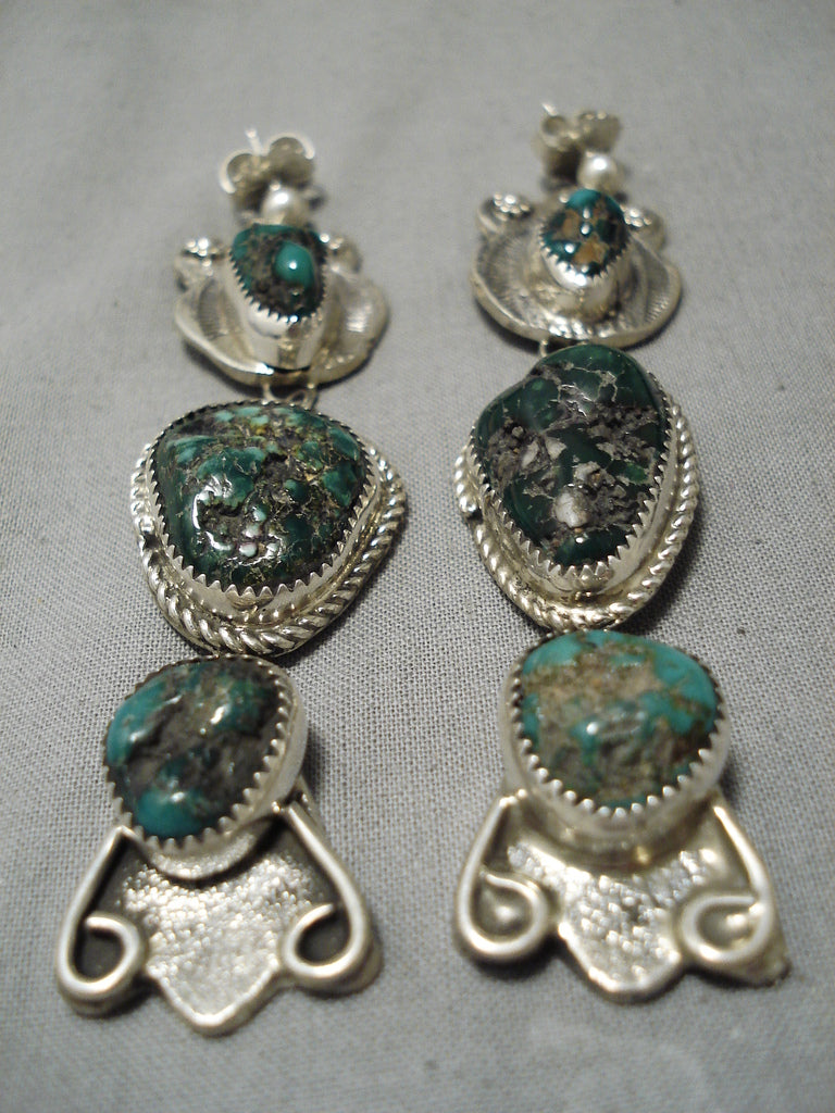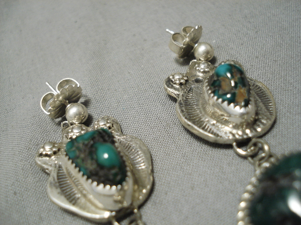 Museum Quality Vintage Native American Navajo Rare Turquoise Sterling Silver Earrings