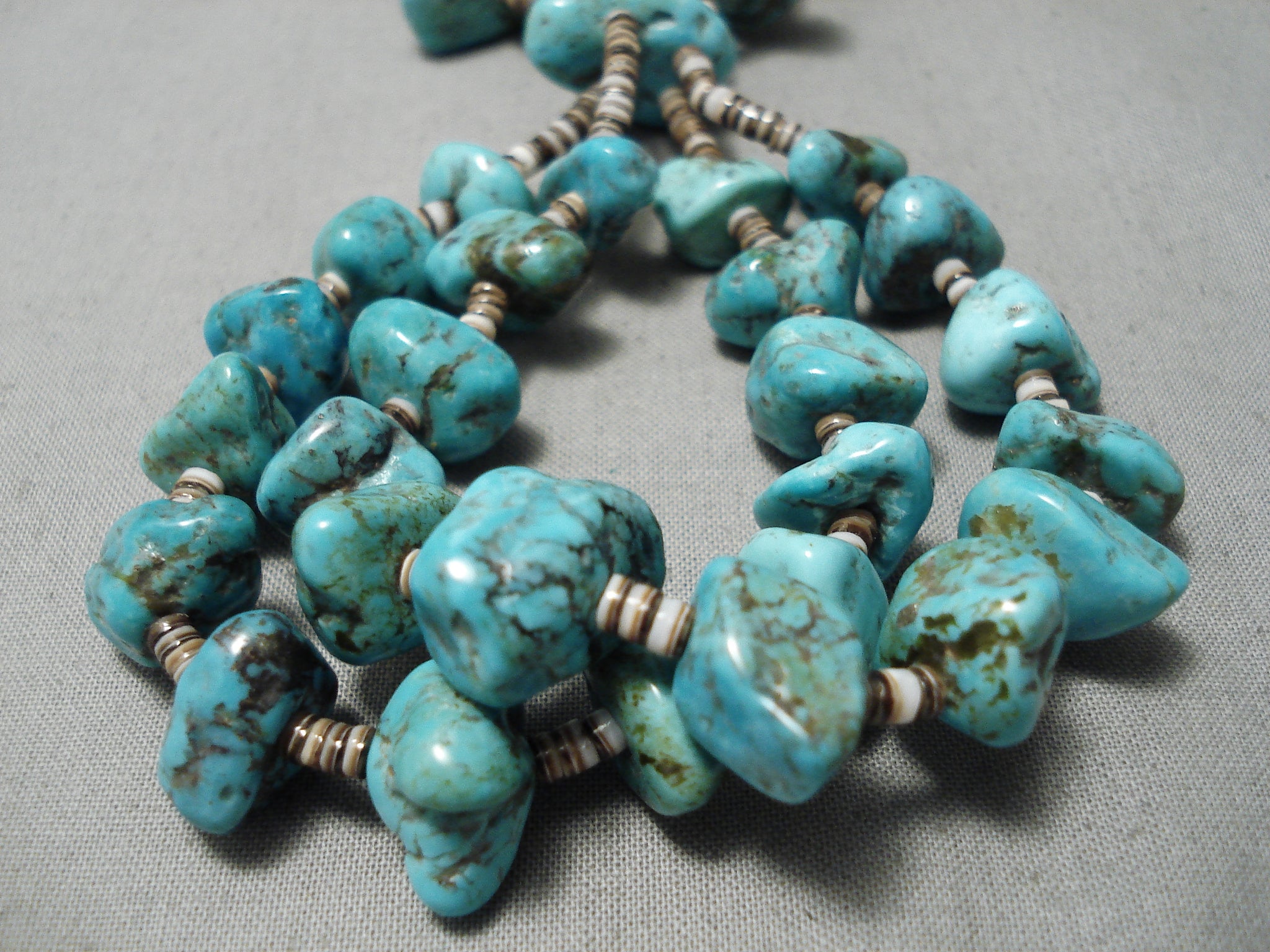 Museum Quality Vintage Native American Navajo Turquoise Nugget Jacla Necklace Old