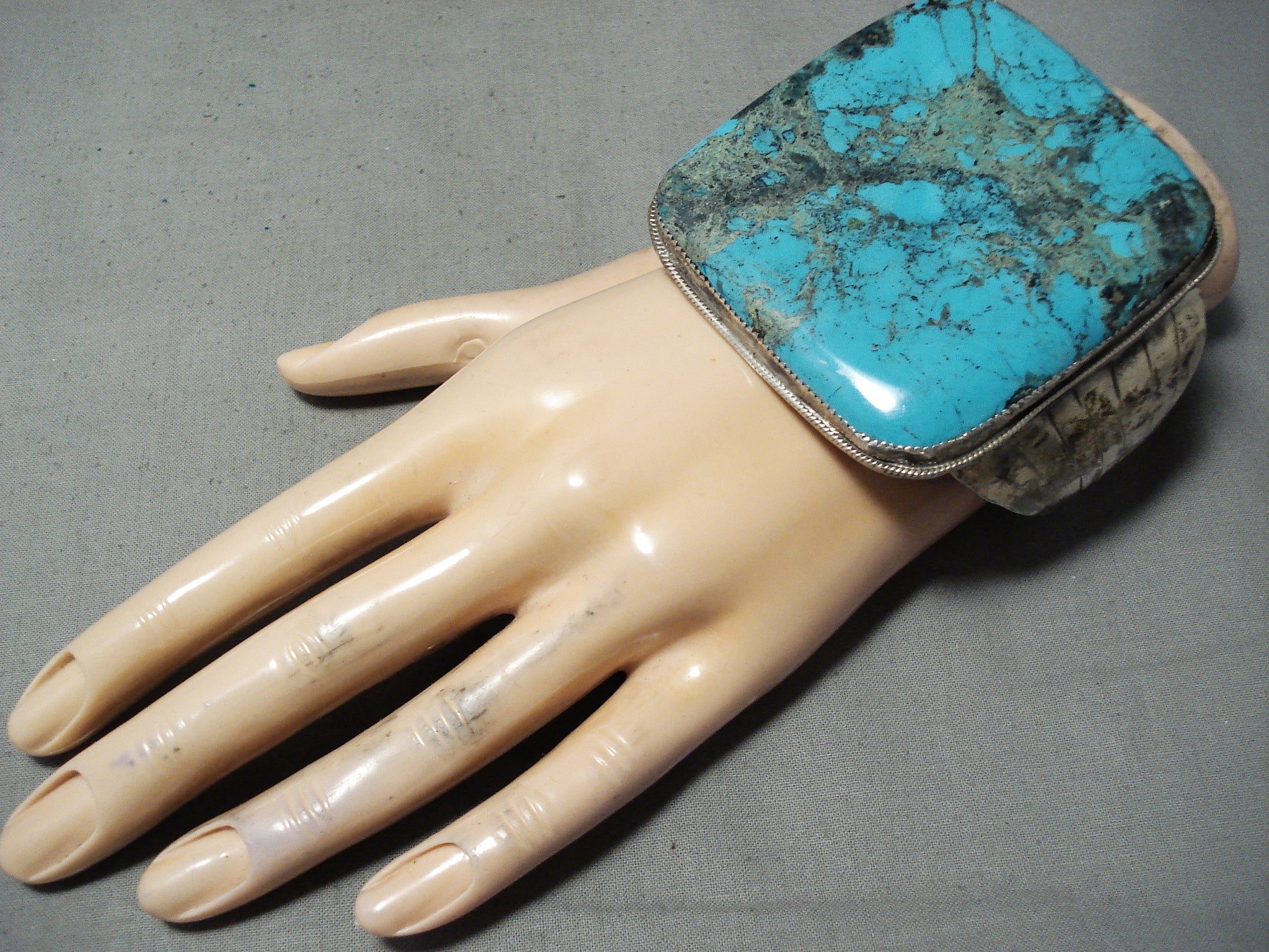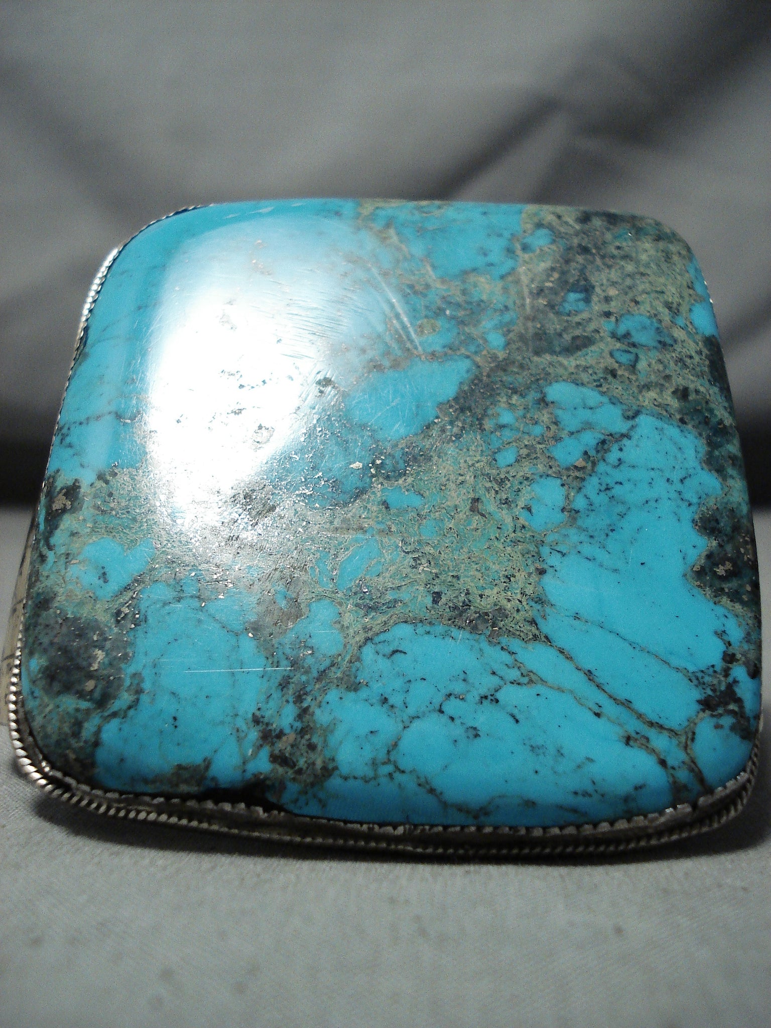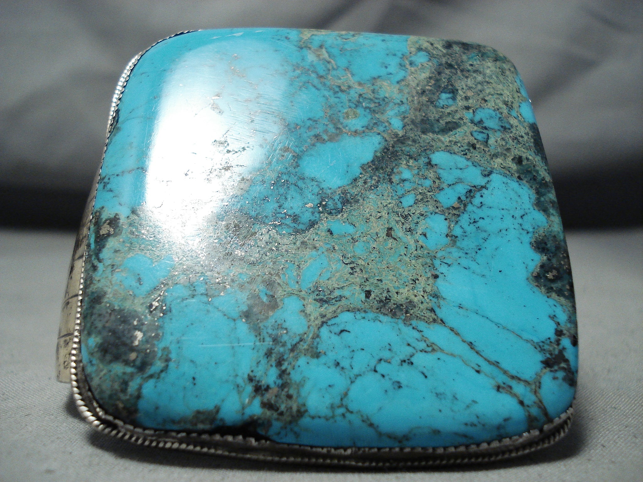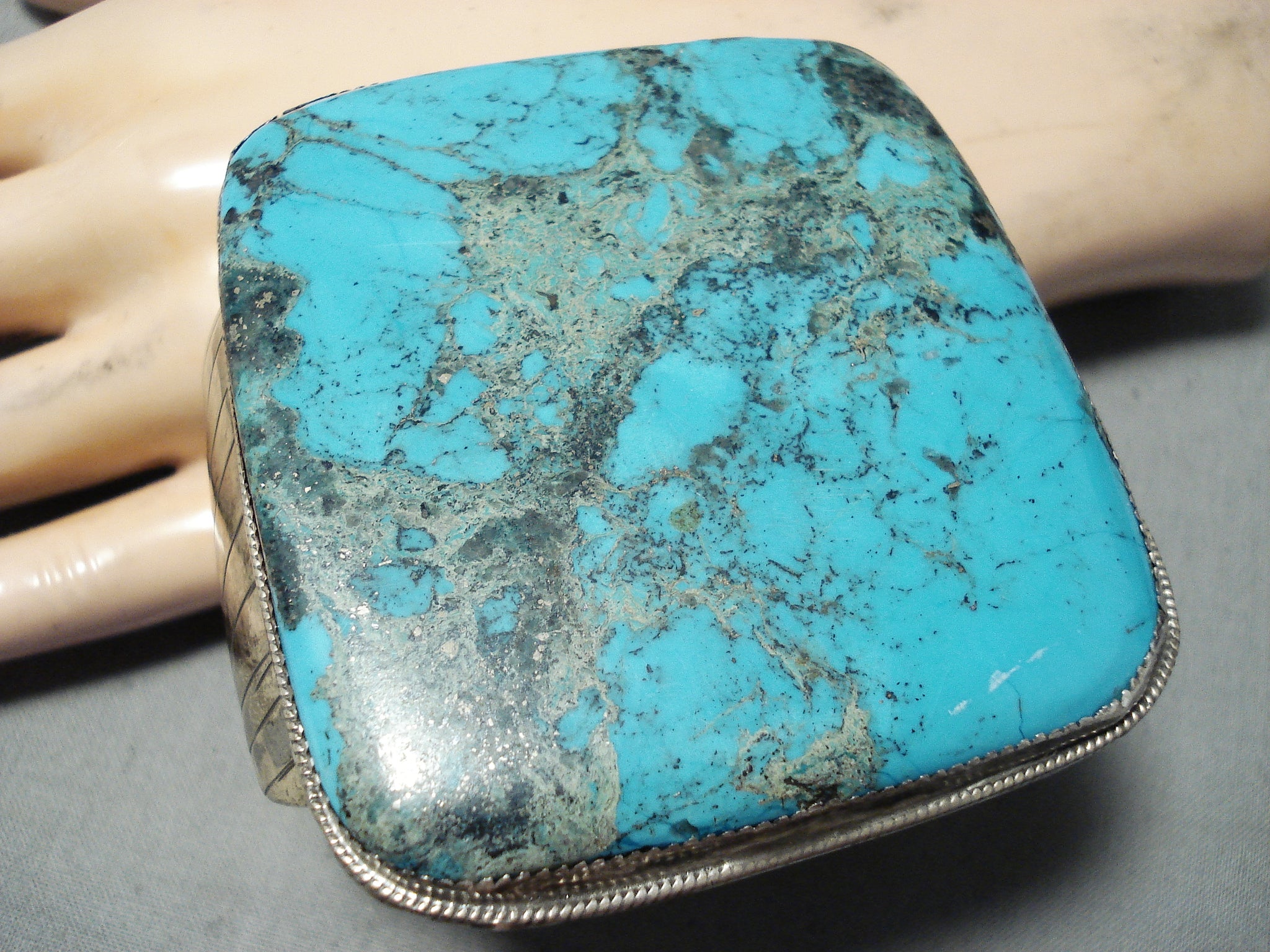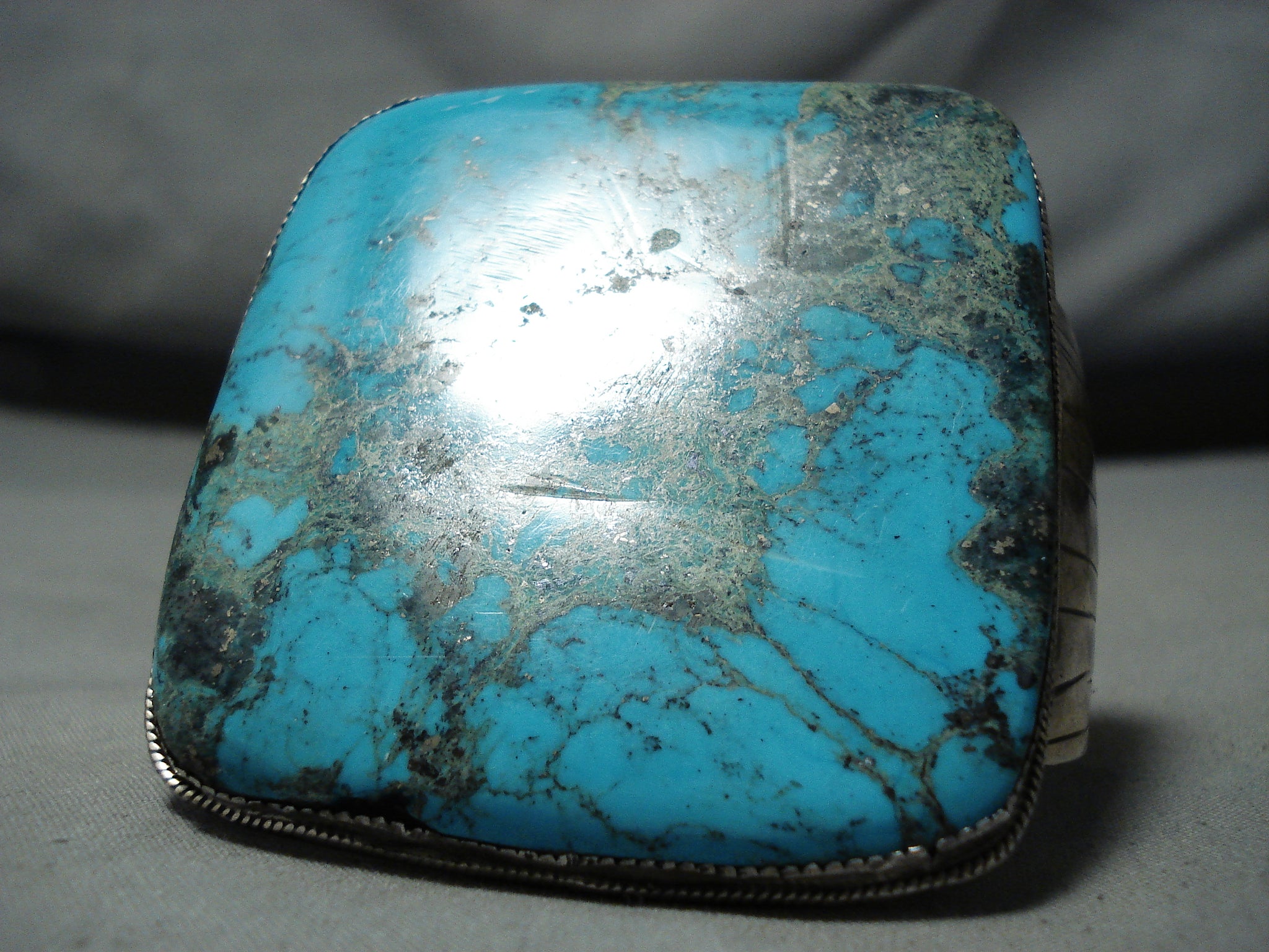 Museum Square Vintage Native American Navajo Huge Turquoise Sterling Silver Bracelet