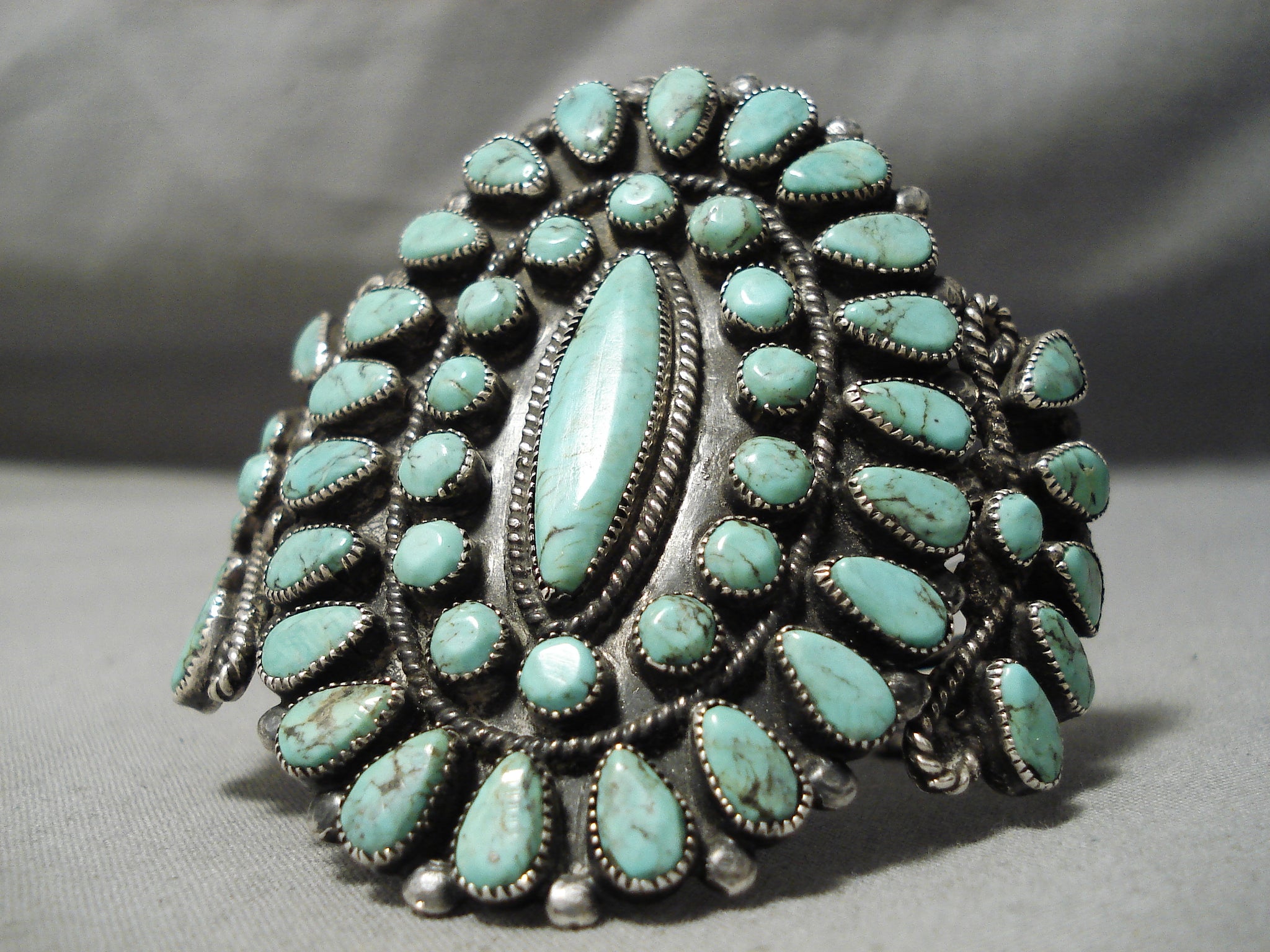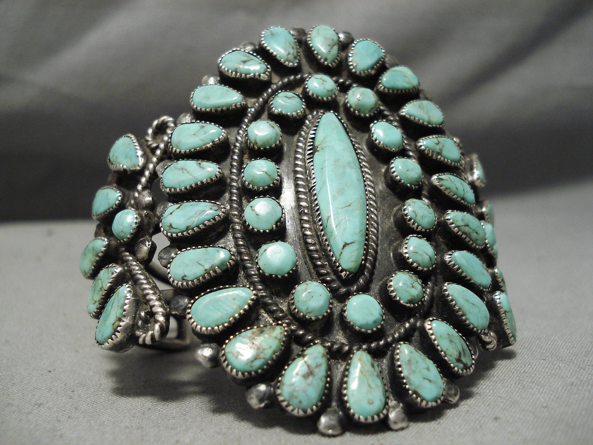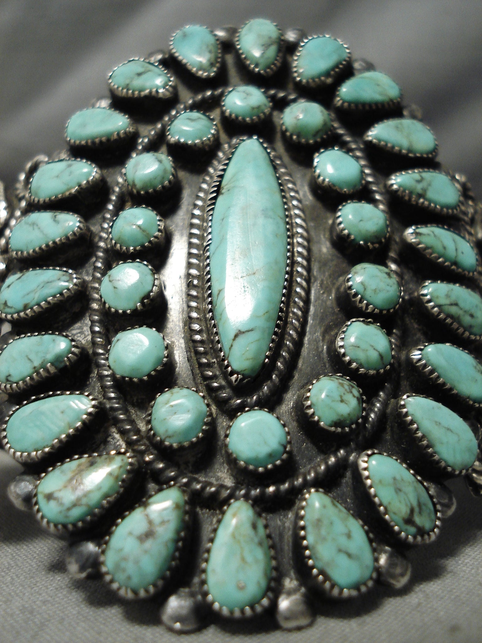 Museum Vintage Native American Navajo Carico Lake Turquoise Sterling Silver Bracelet