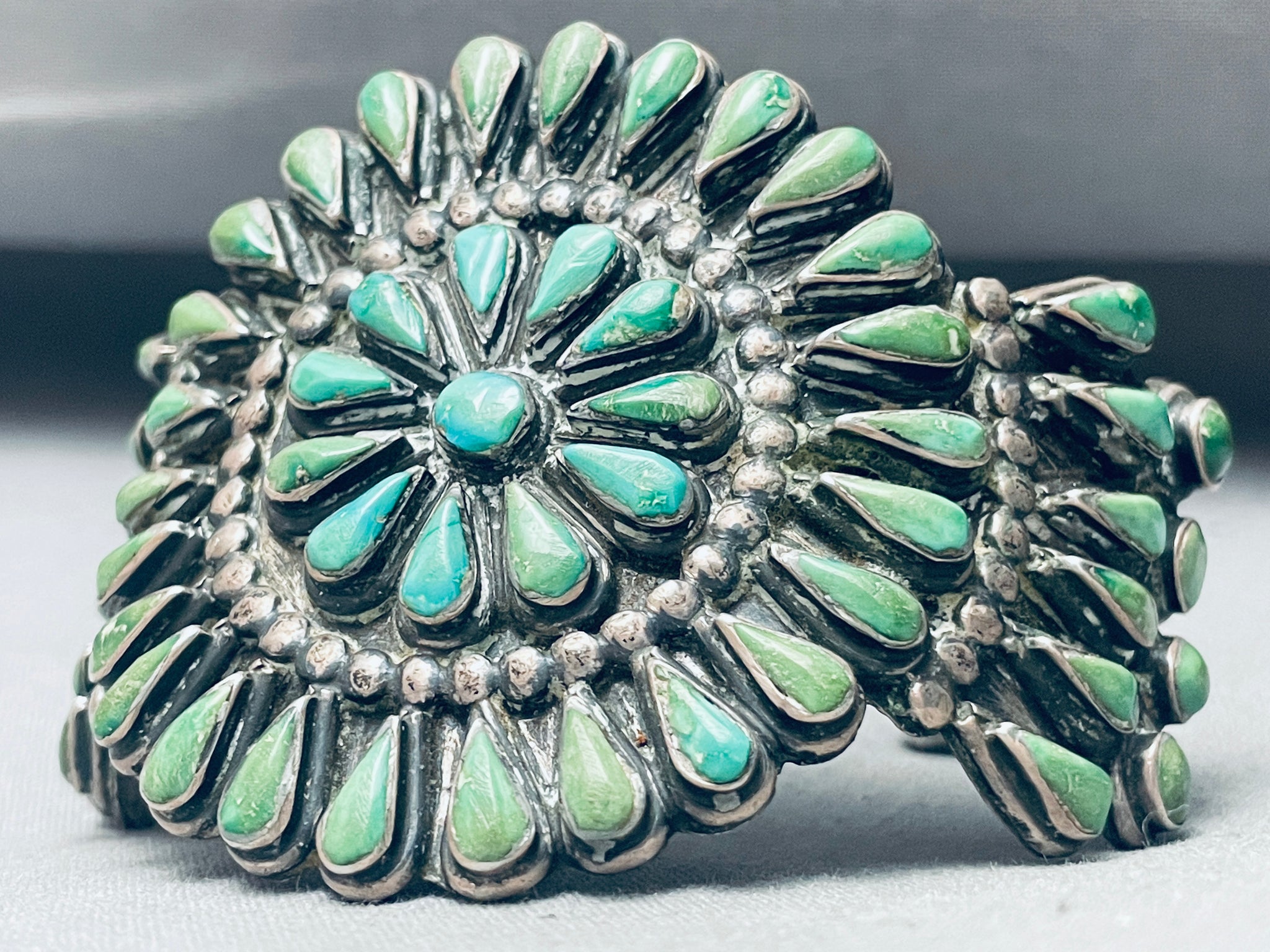 Museum Vintage Native American Navajo Green Turquoise Sterling Silver Bracelet