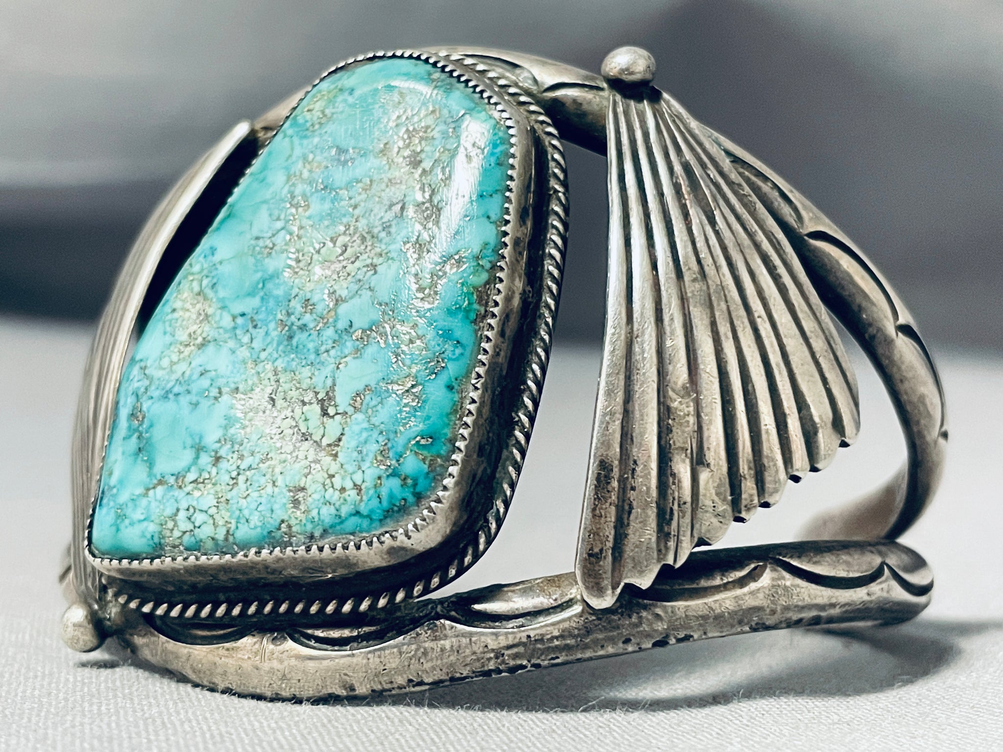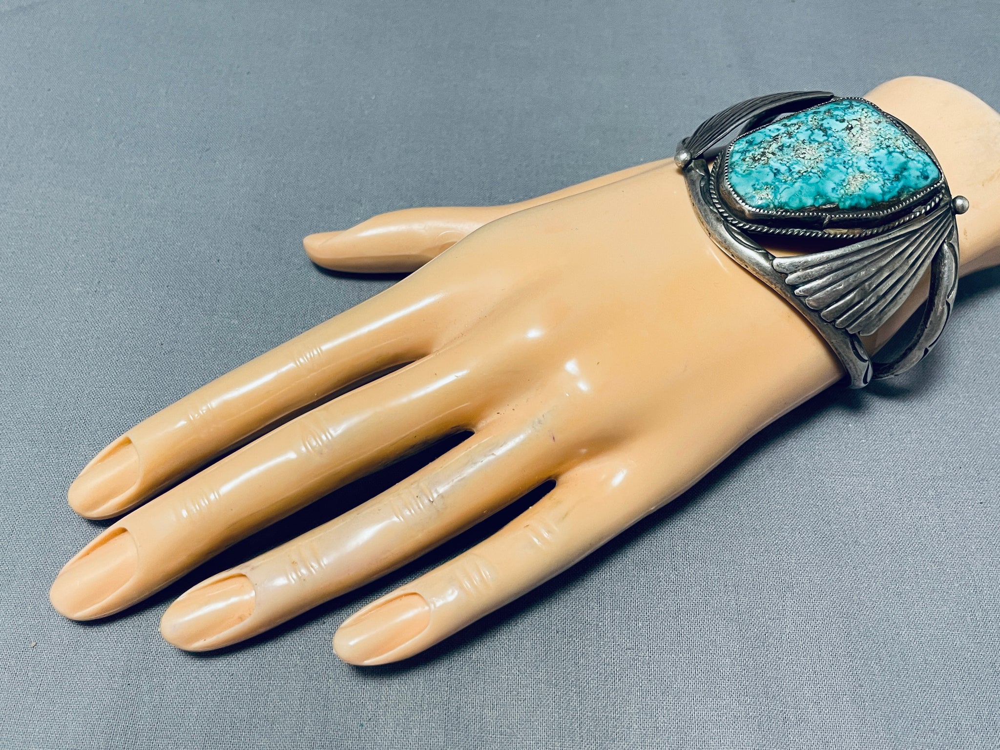 Museum Vintage Native American Navajo Huge Pilot Mountain Turquoise Sterling Silver Bracelet