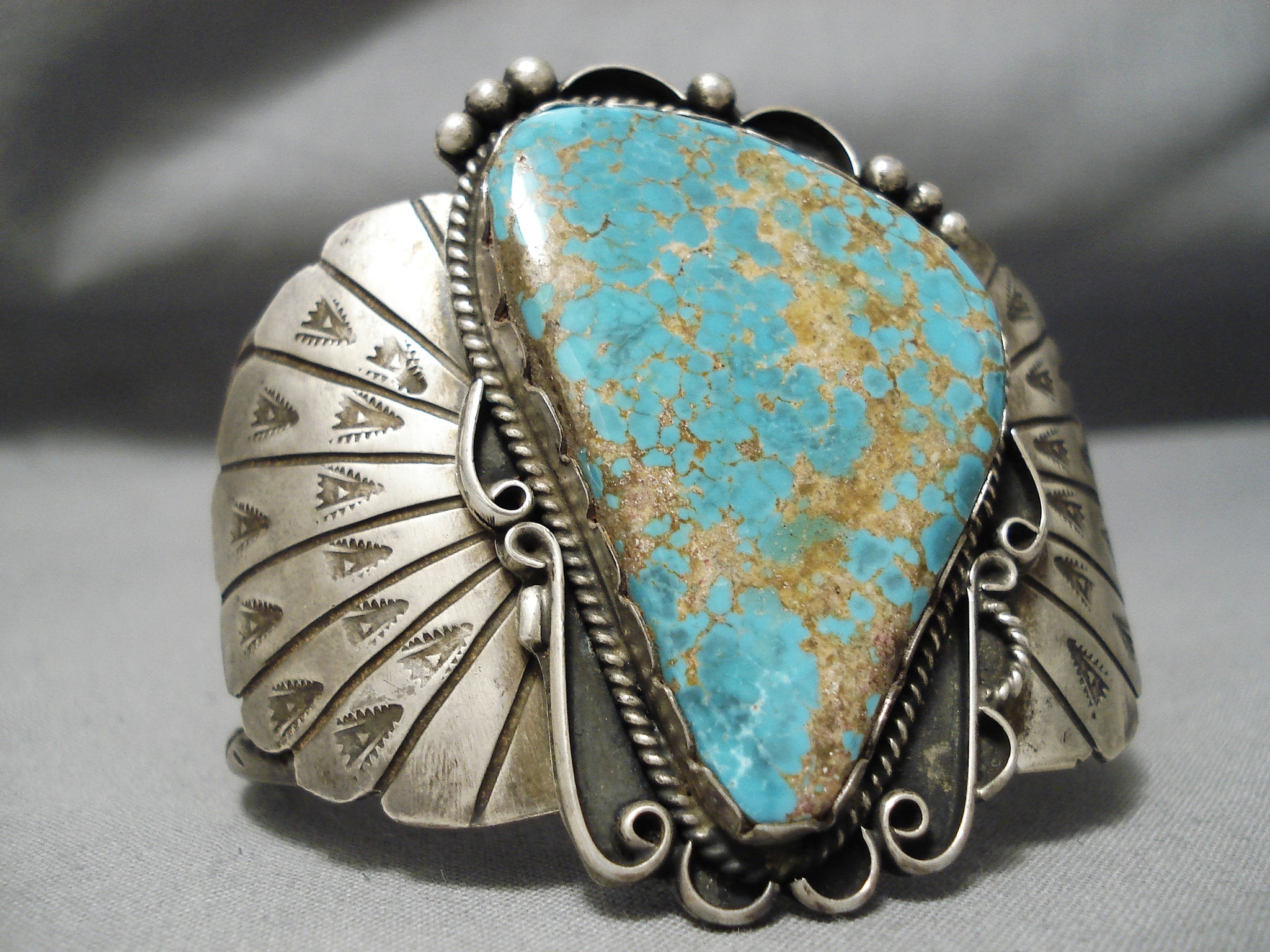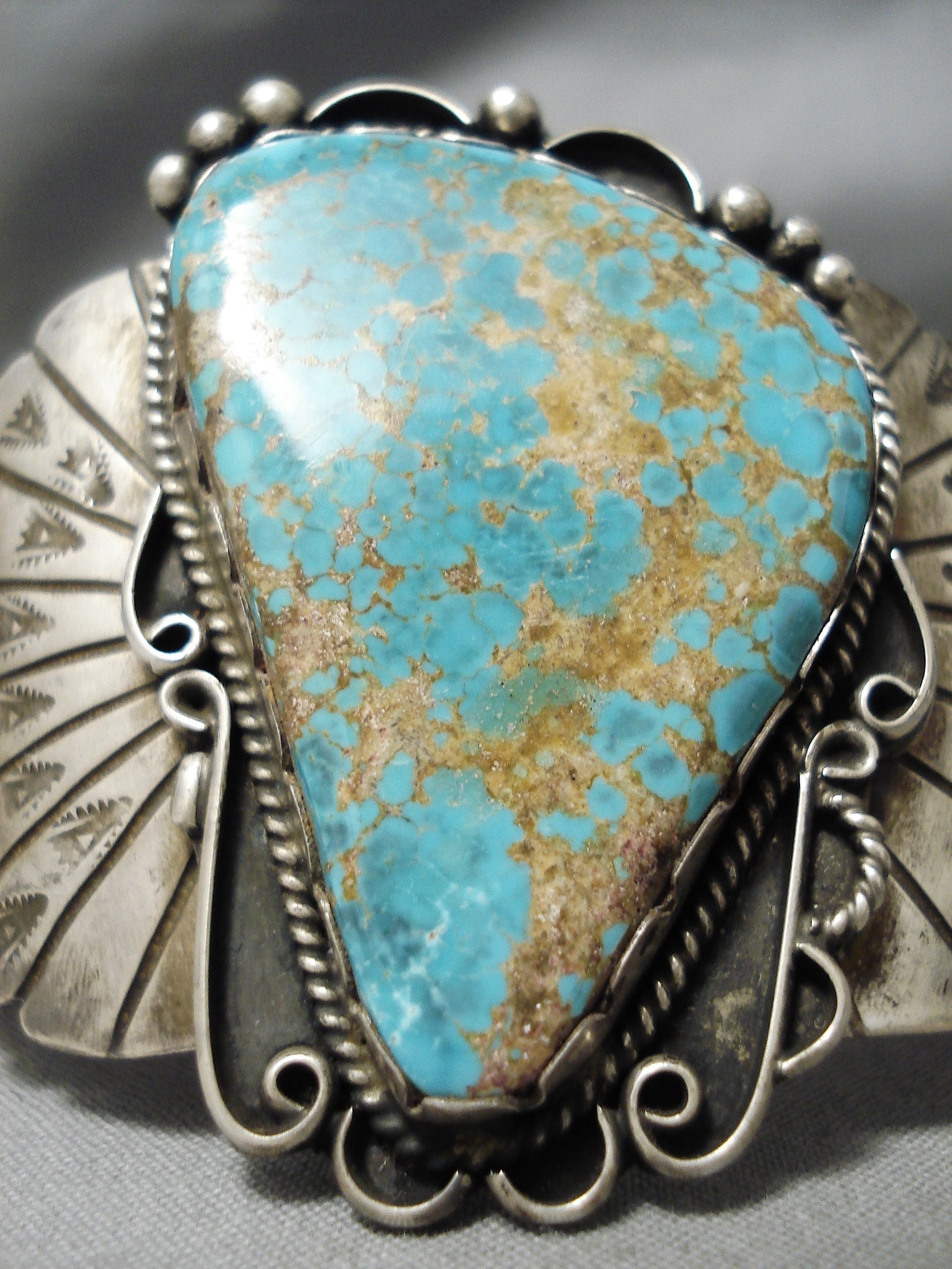 Museum Vintage Native American Navajo Old Deposit #8 Turquoise Sterling Silver Bracelet Old
