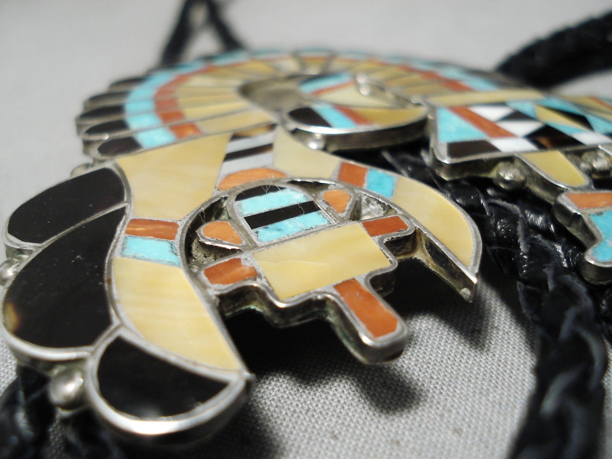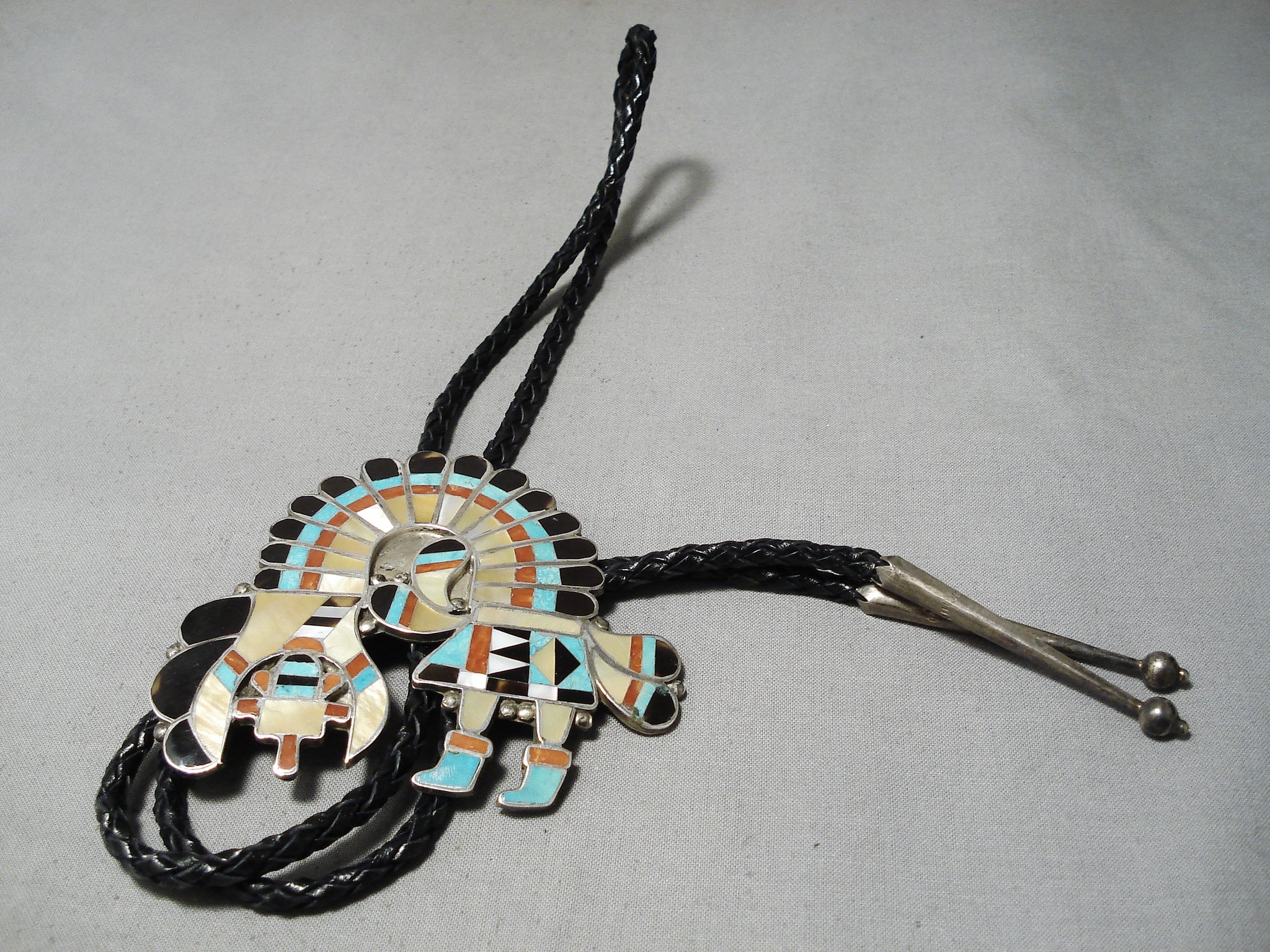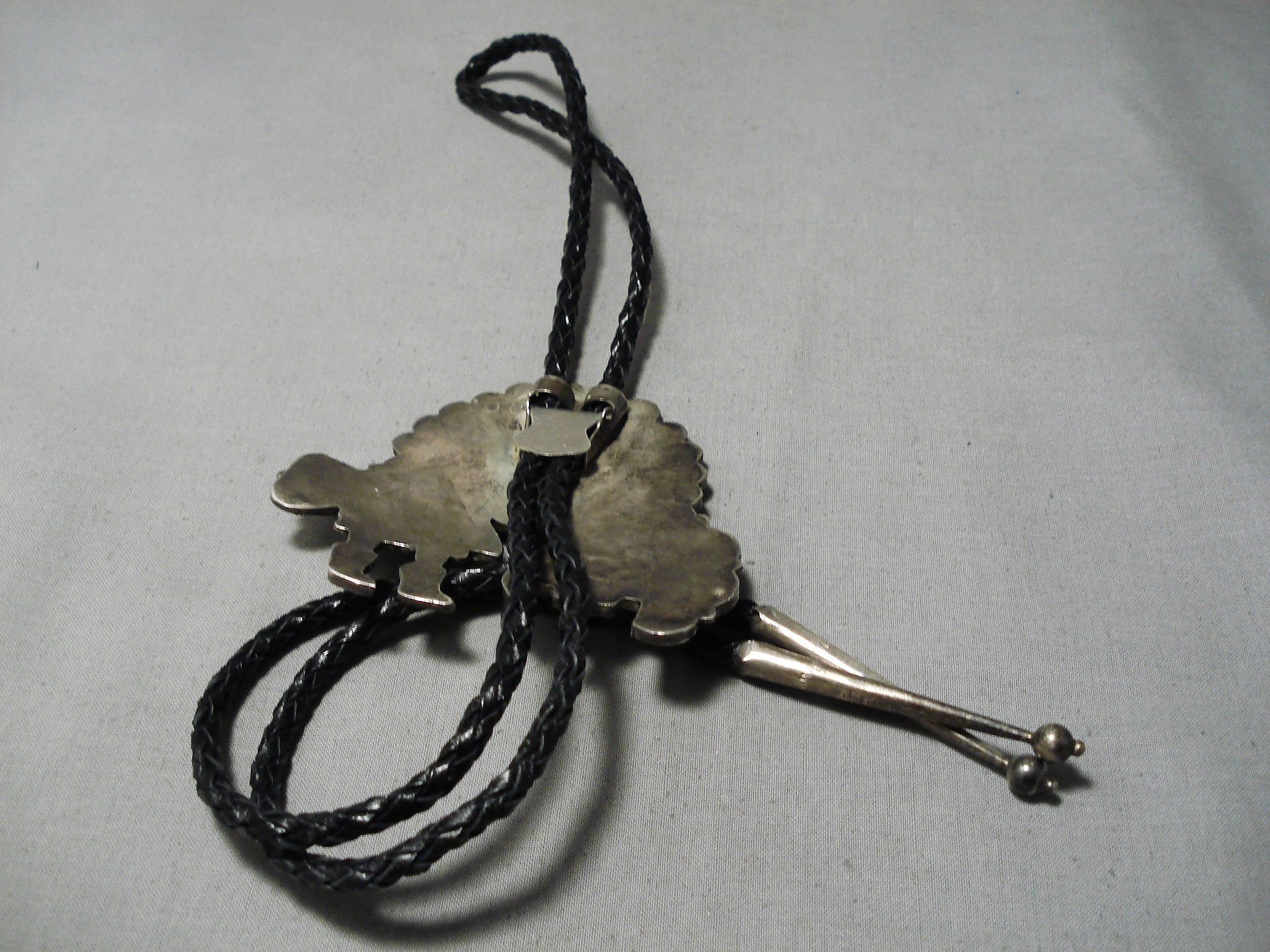 Museum Vintage Native American Zuni Turquoise Sterling Silver Turquoise Bolo Tie Inlay