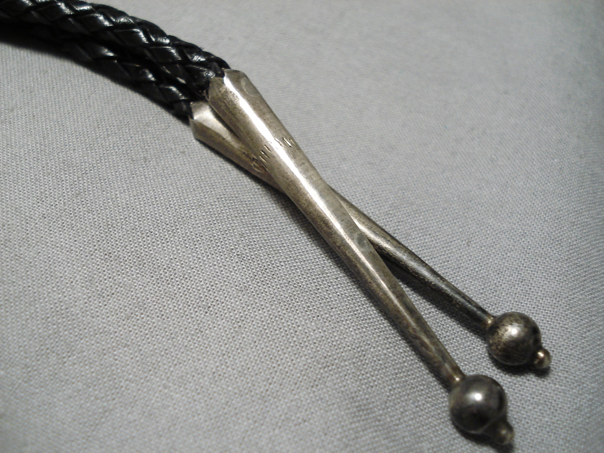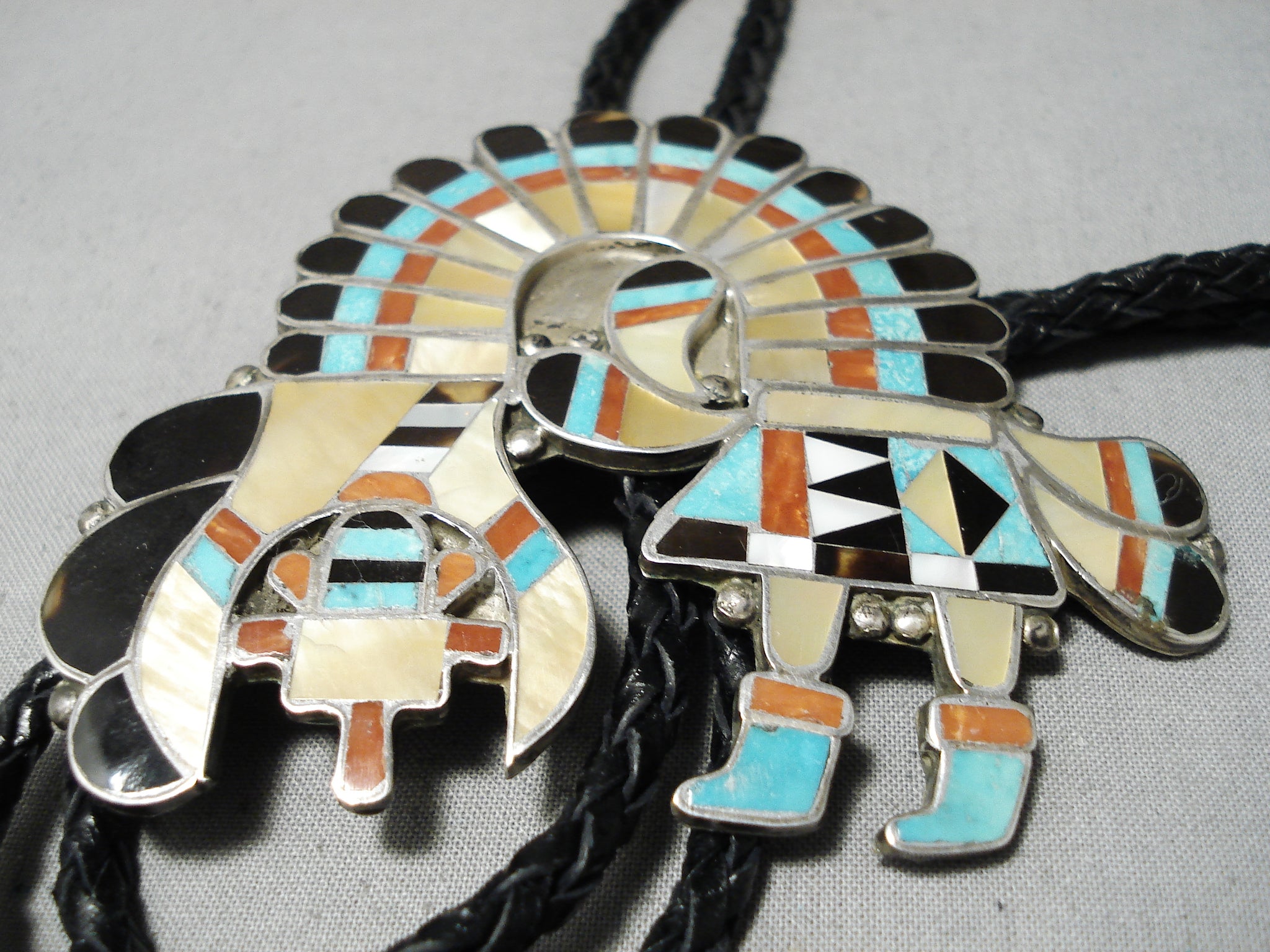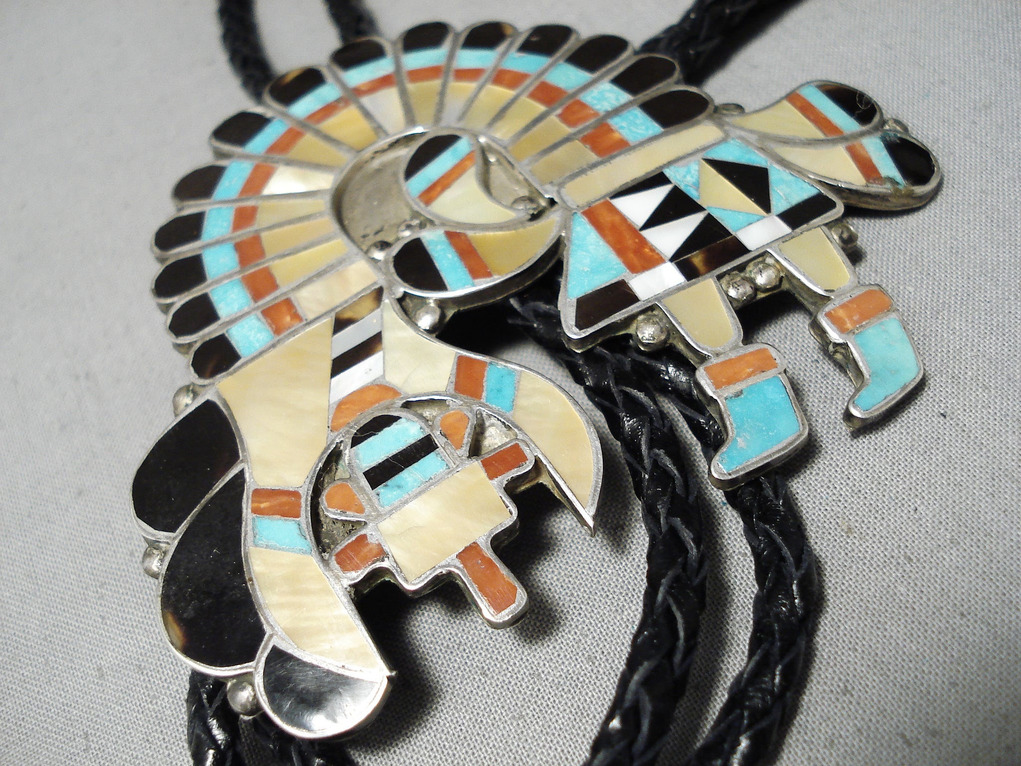 Museum Vintage Native American Zuni Turquoise Sterling Silver Turquoise Bolo Tie Inlay