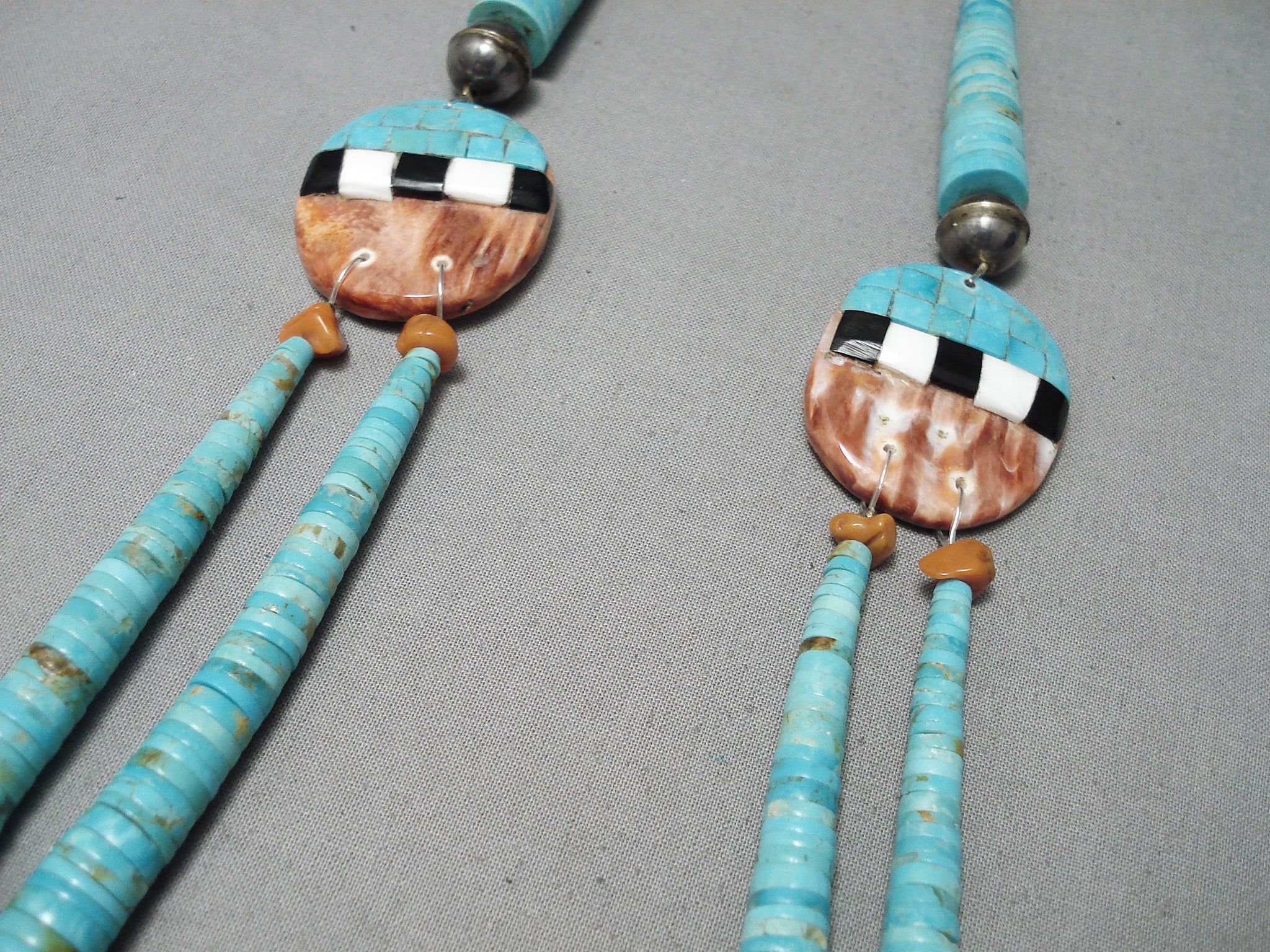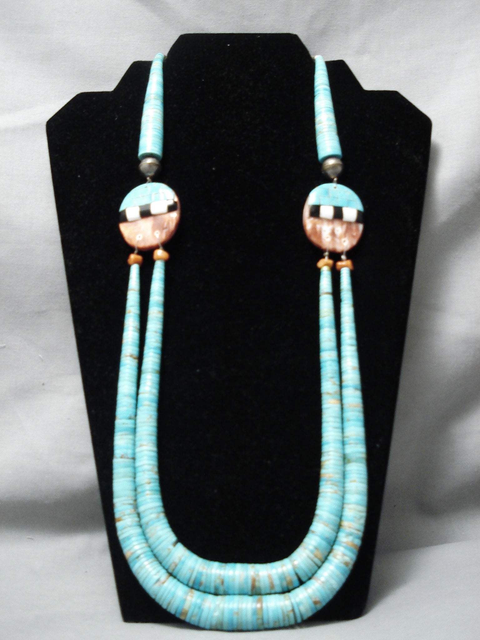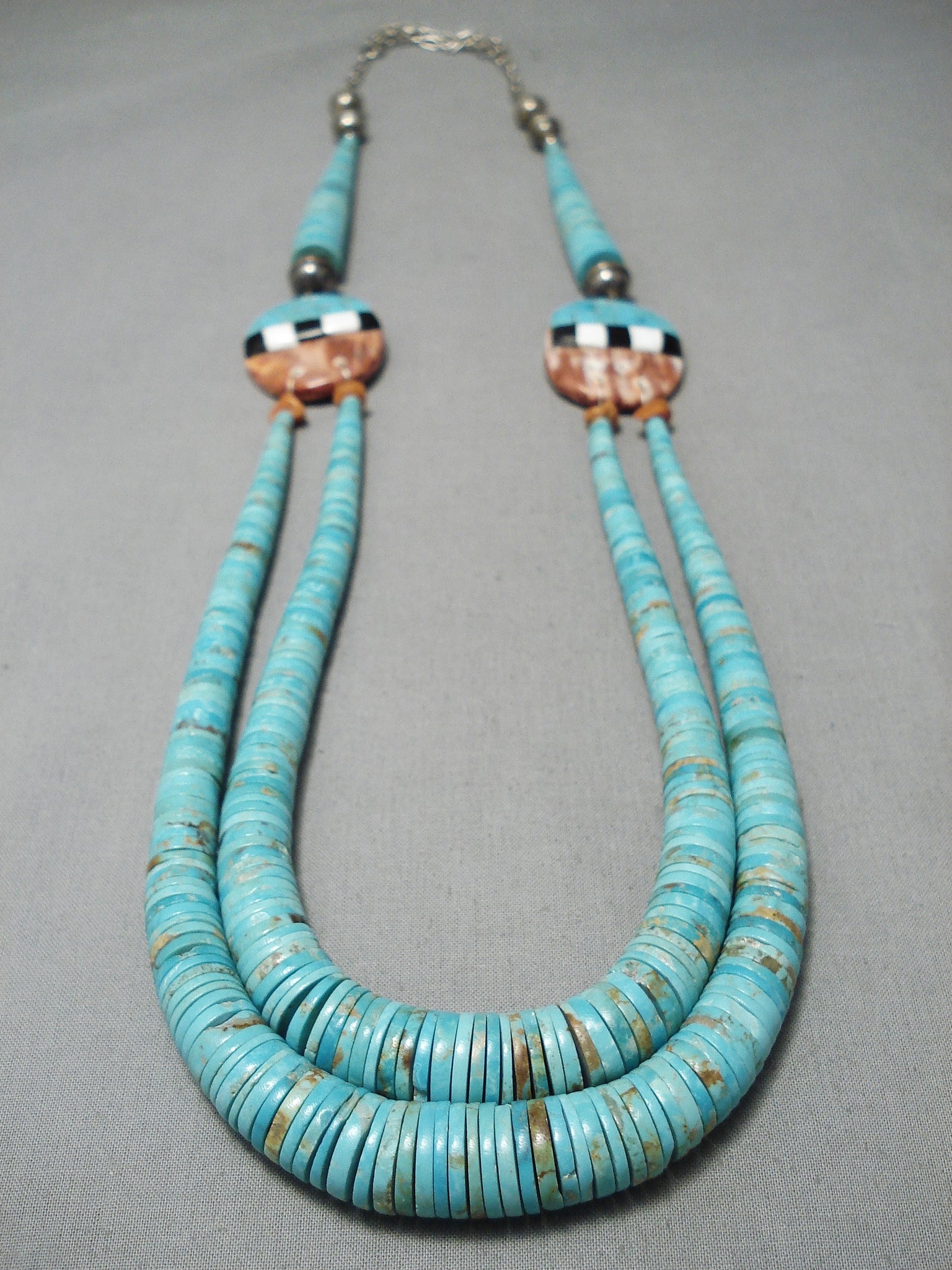 Museum Vintage Santo Domingo Native American Navajo #8 Turquoise Sterling Silver Necklace