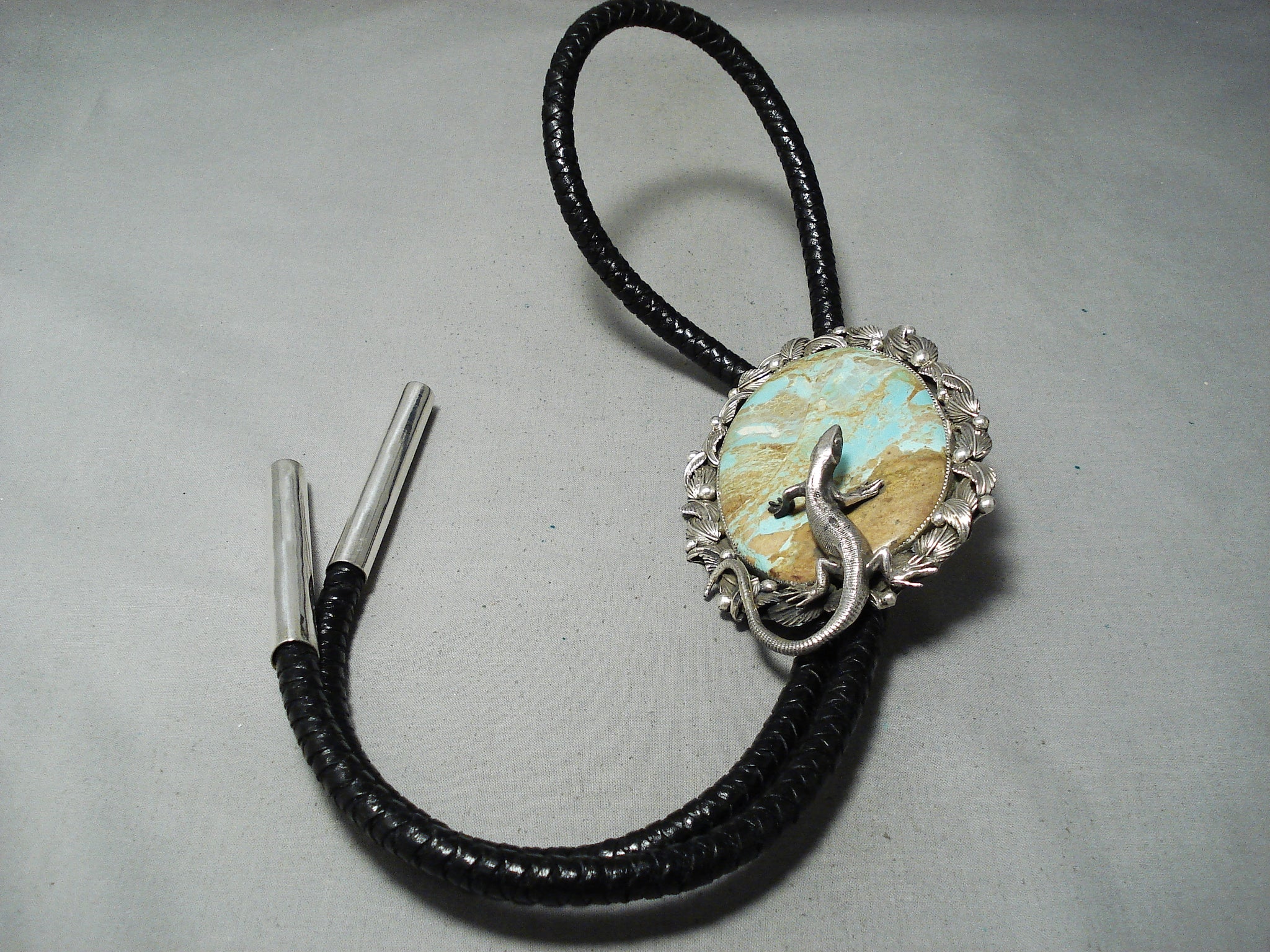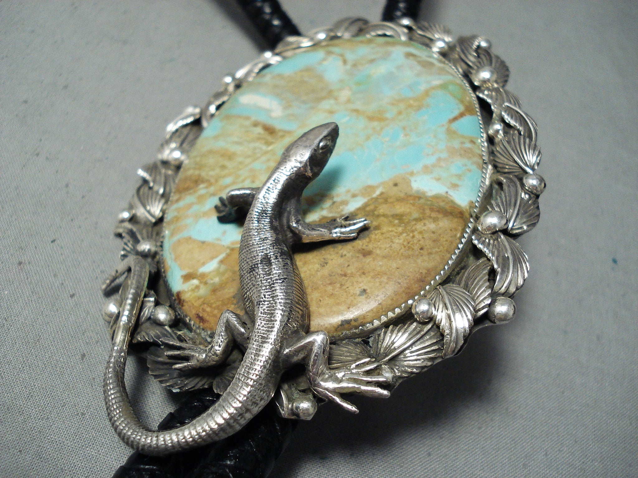 Native American 218 Gram Gecko Royston Turquoise Sterling Silver Lizard Bolo Tie