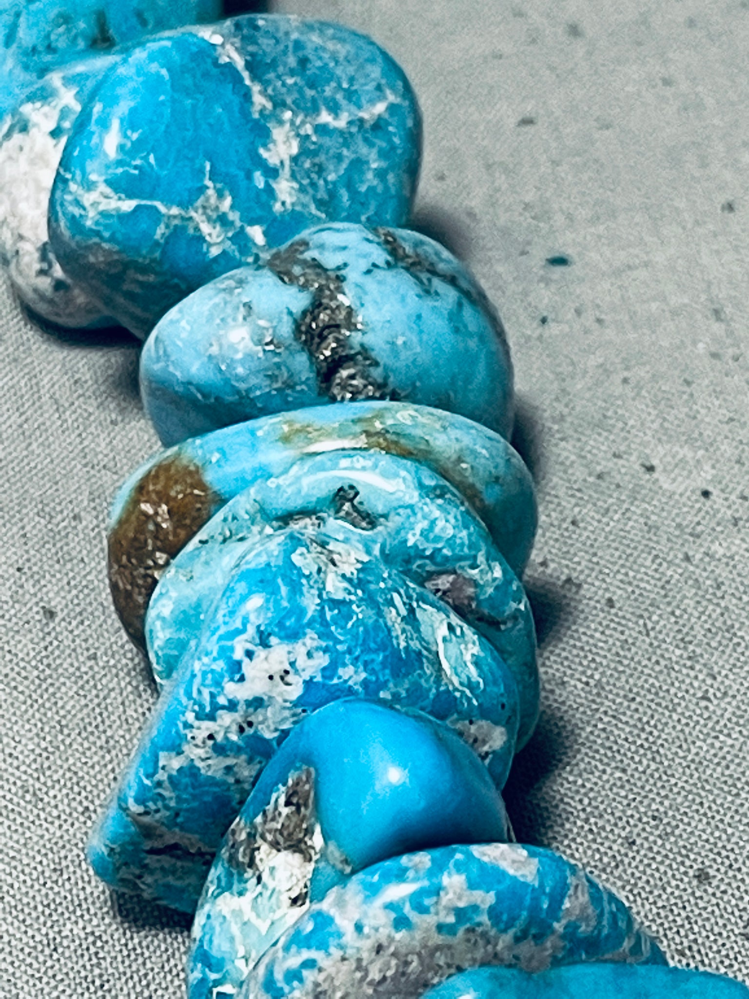 Native American 426 Grams Chunky Turquoise Nugget Signed Sterling Silver Necklace