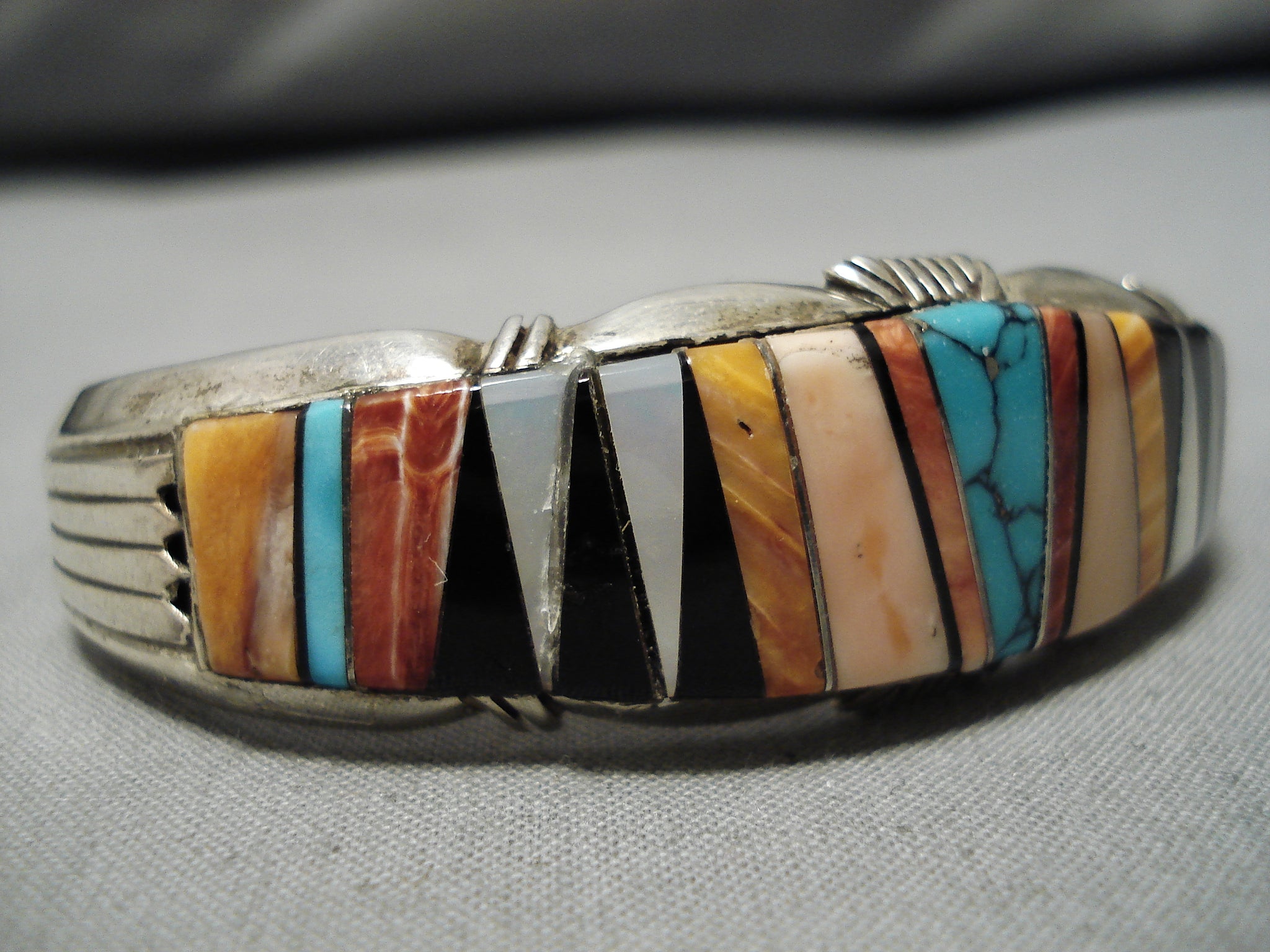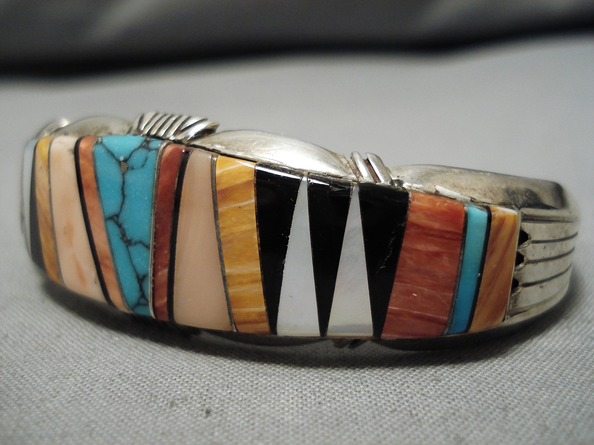 Native American Amazing Vintage Navajo Spiderweb Turquoise Sterling Silver Bracelet