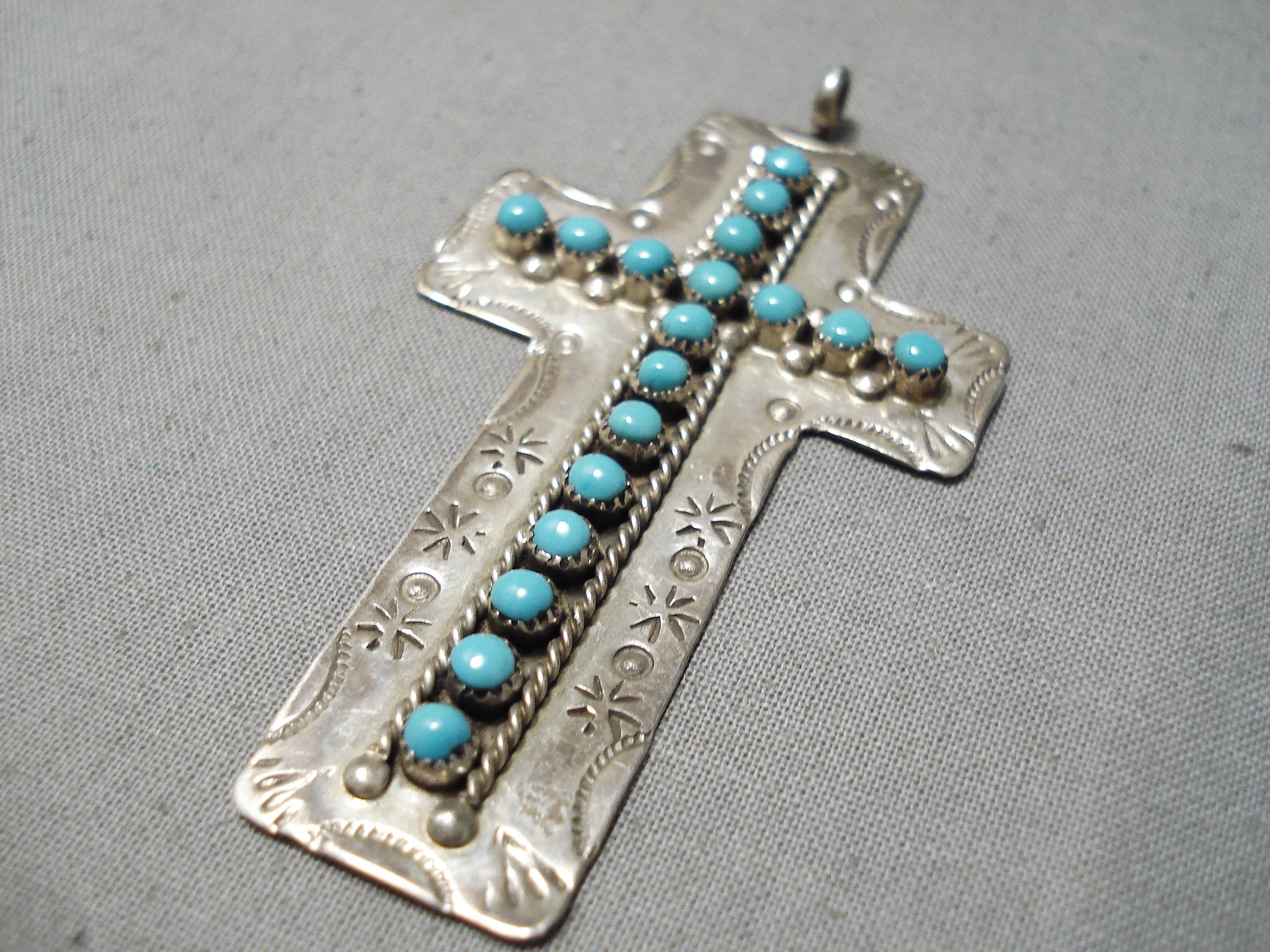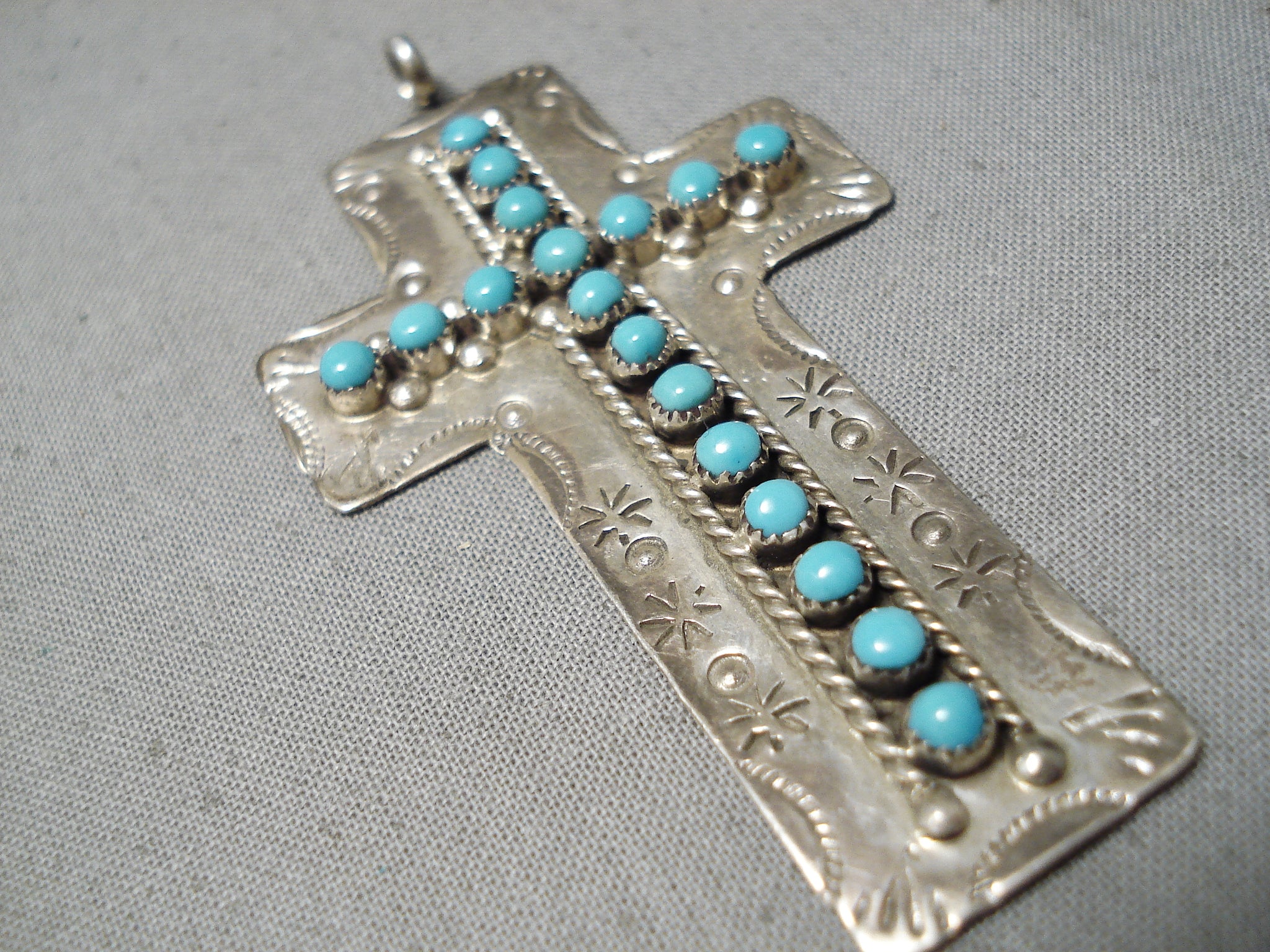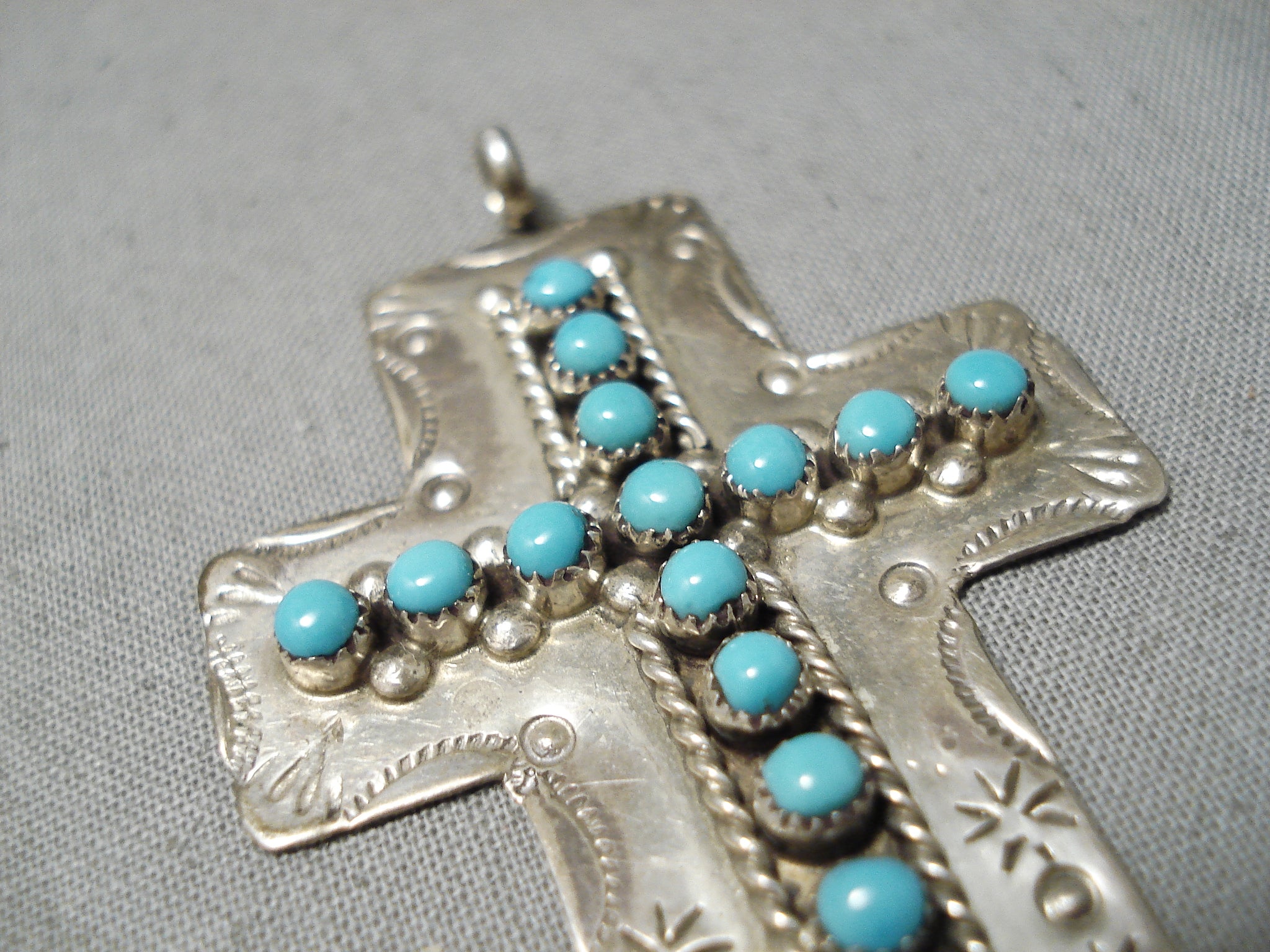 Native American Amazing Vintage Navajo Turquoise Sterling Silver Cross Pendant