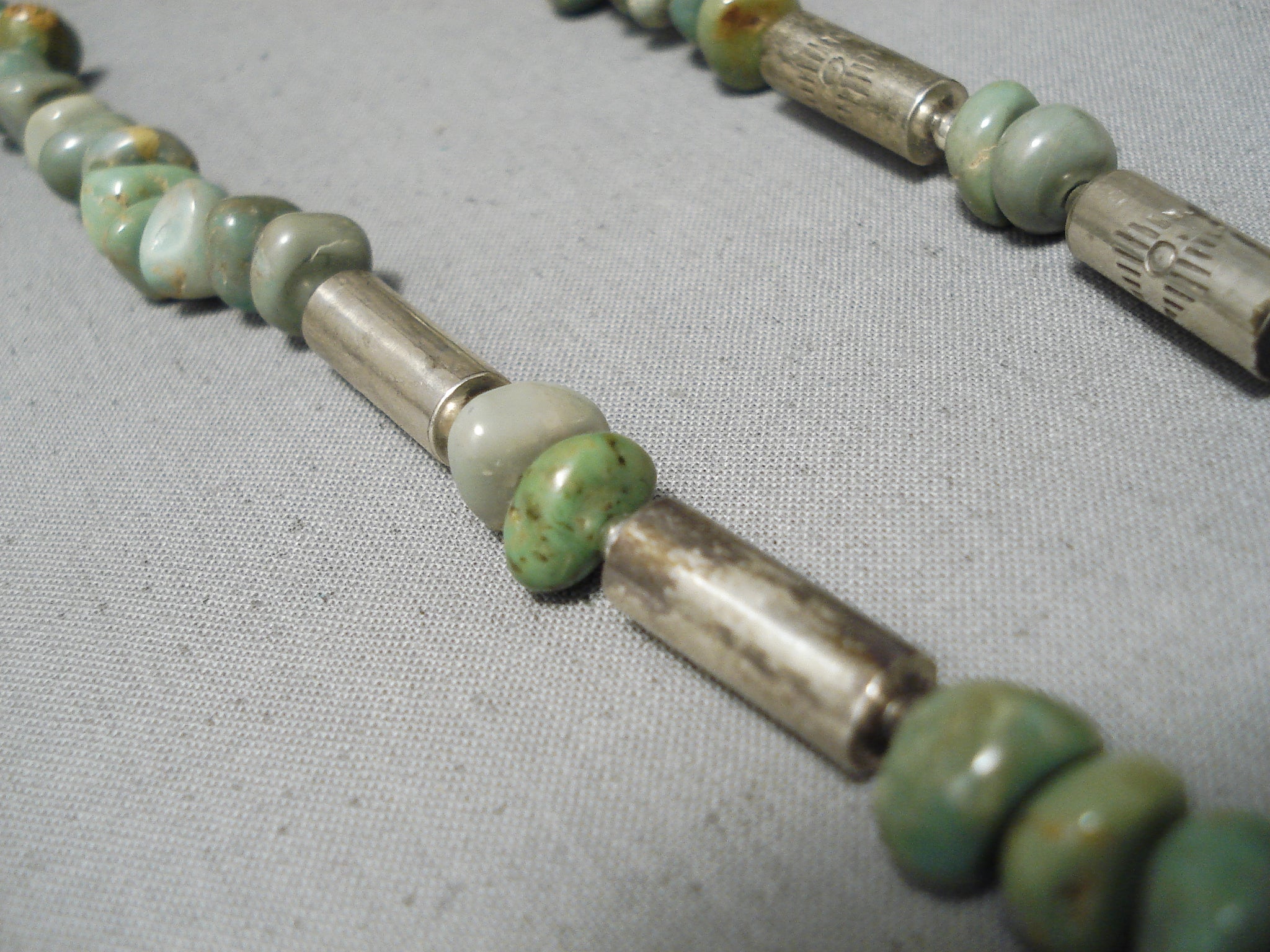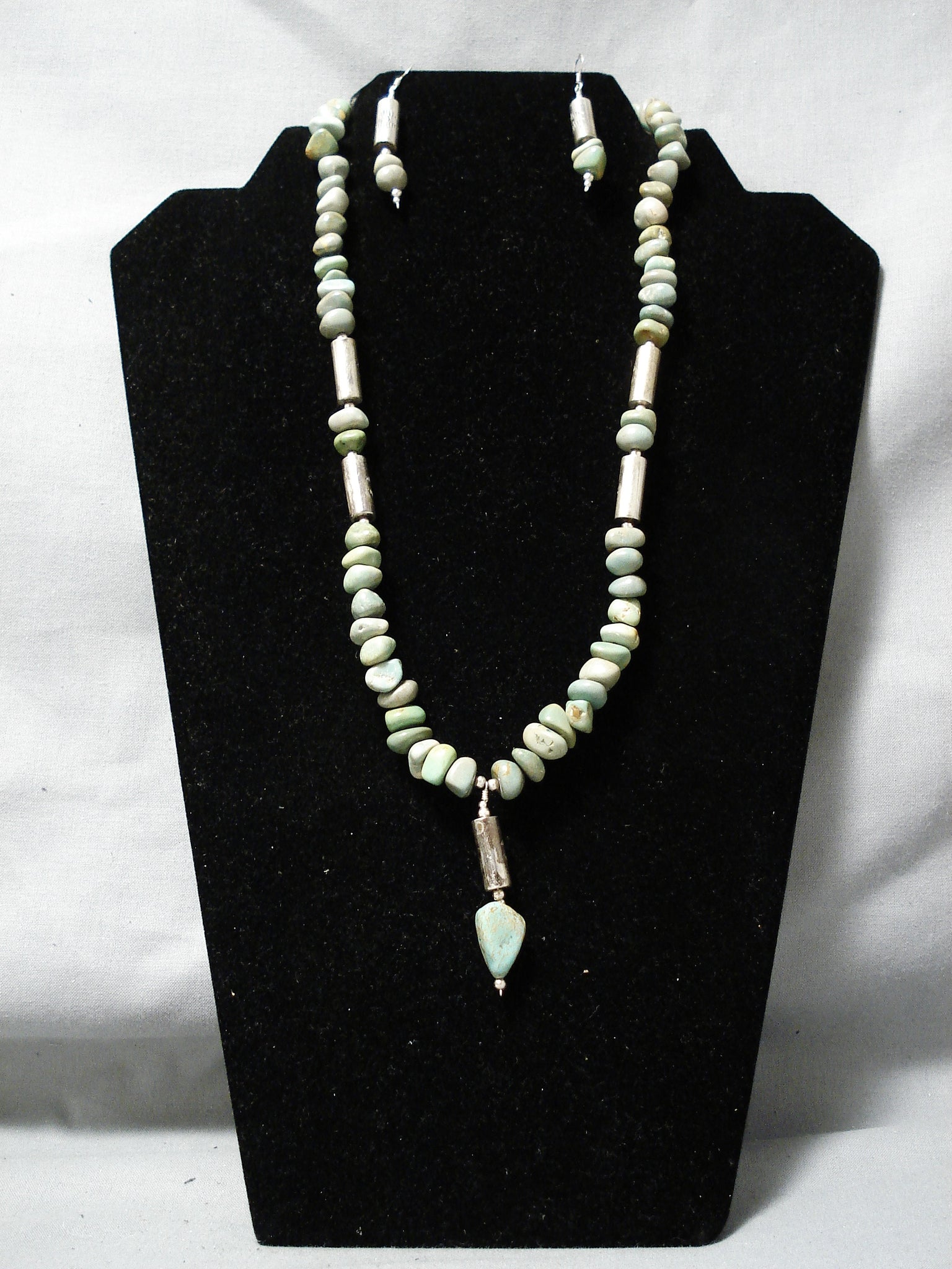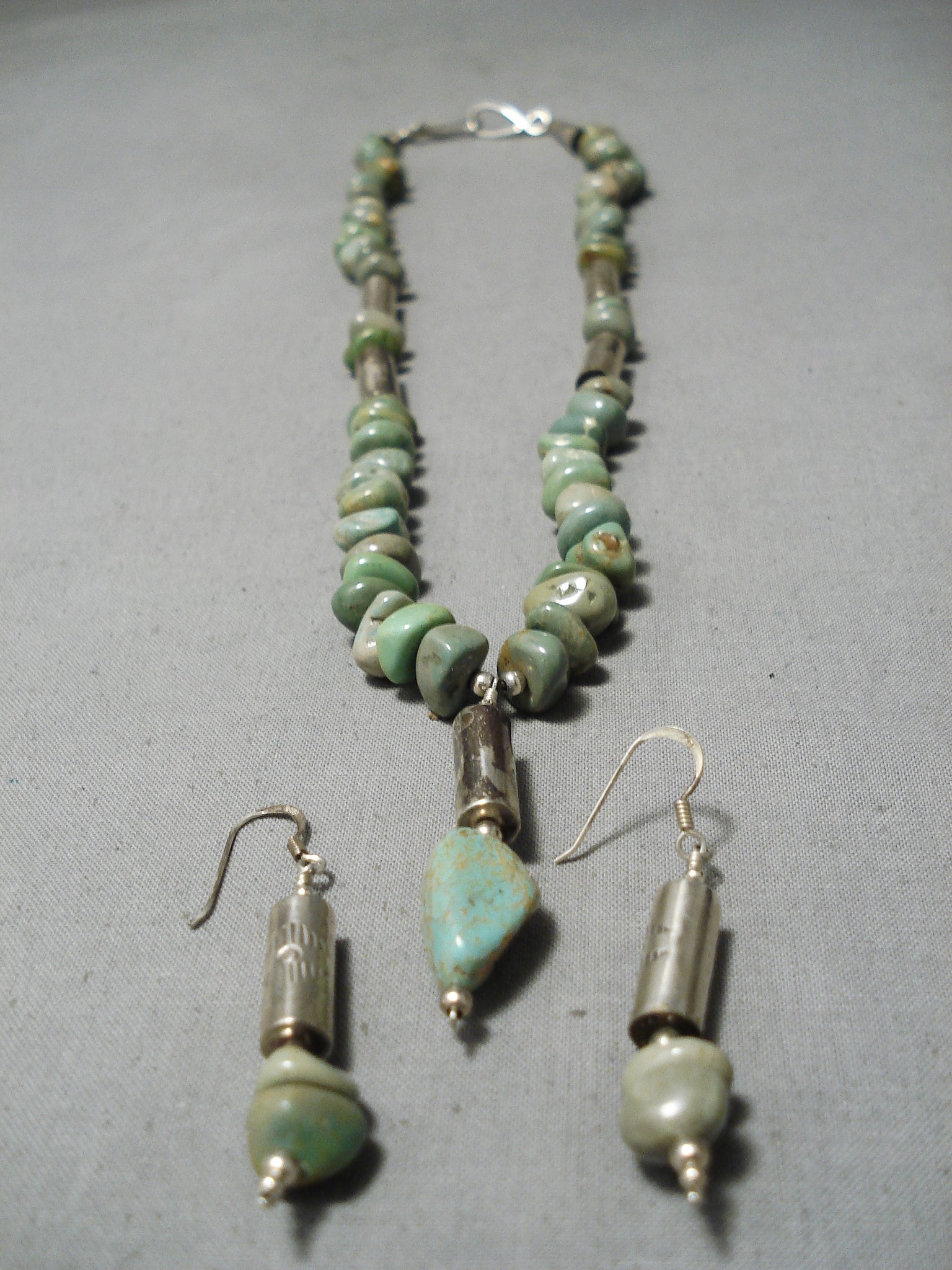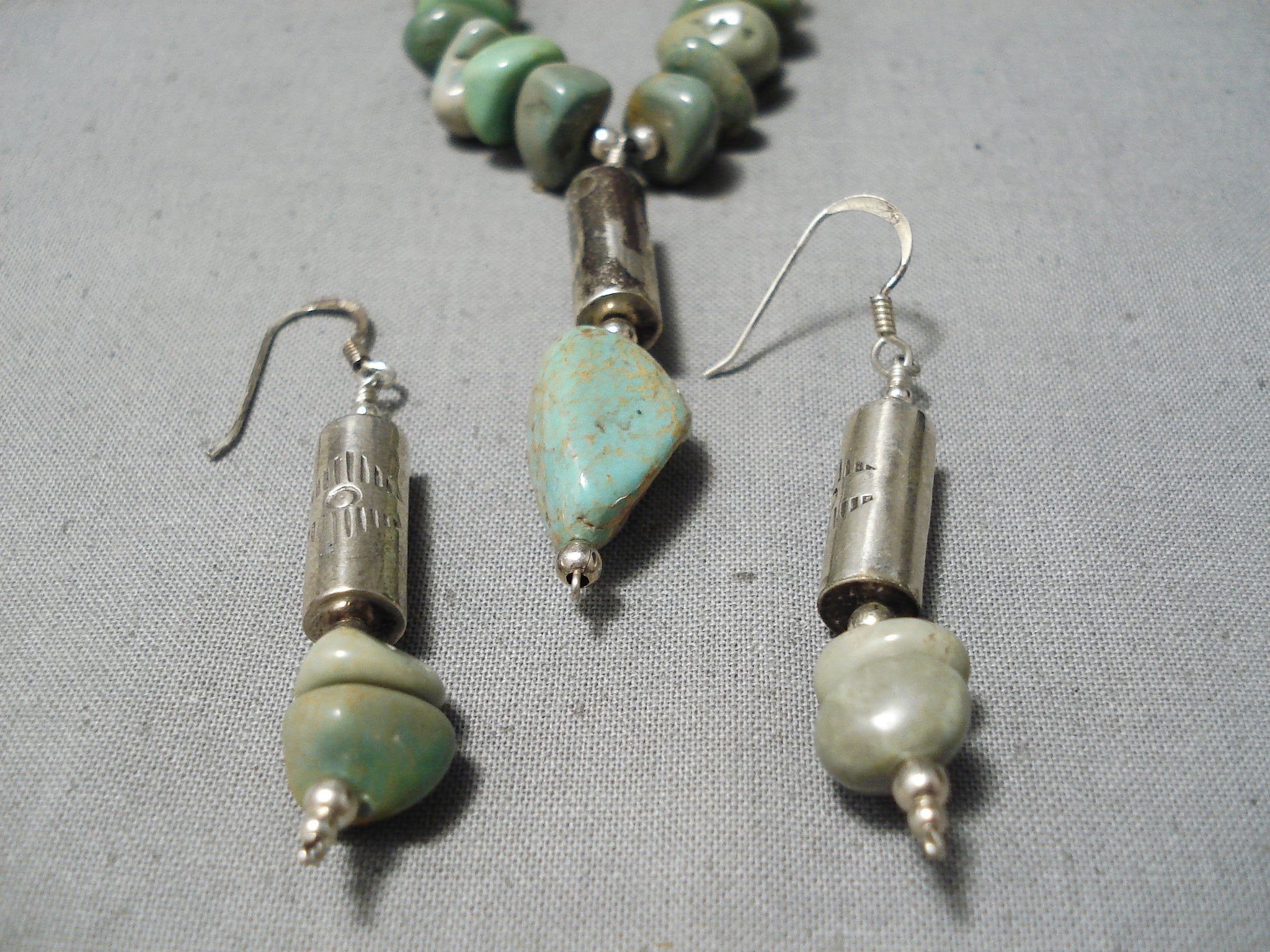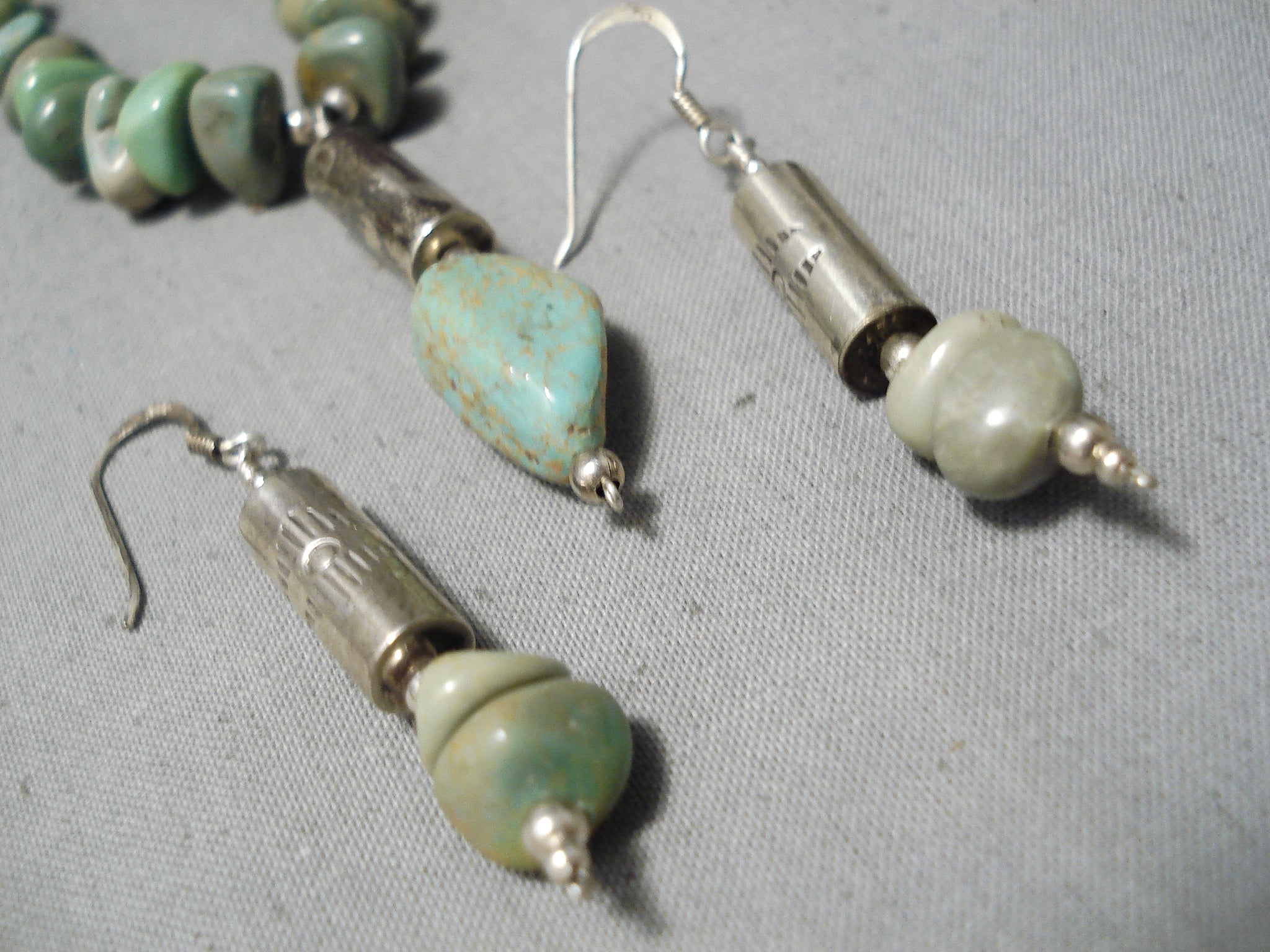 Native American Amazing Vintage Santo Domingo Royston Turquoise Sterling Silver Necklace & Earrings Old