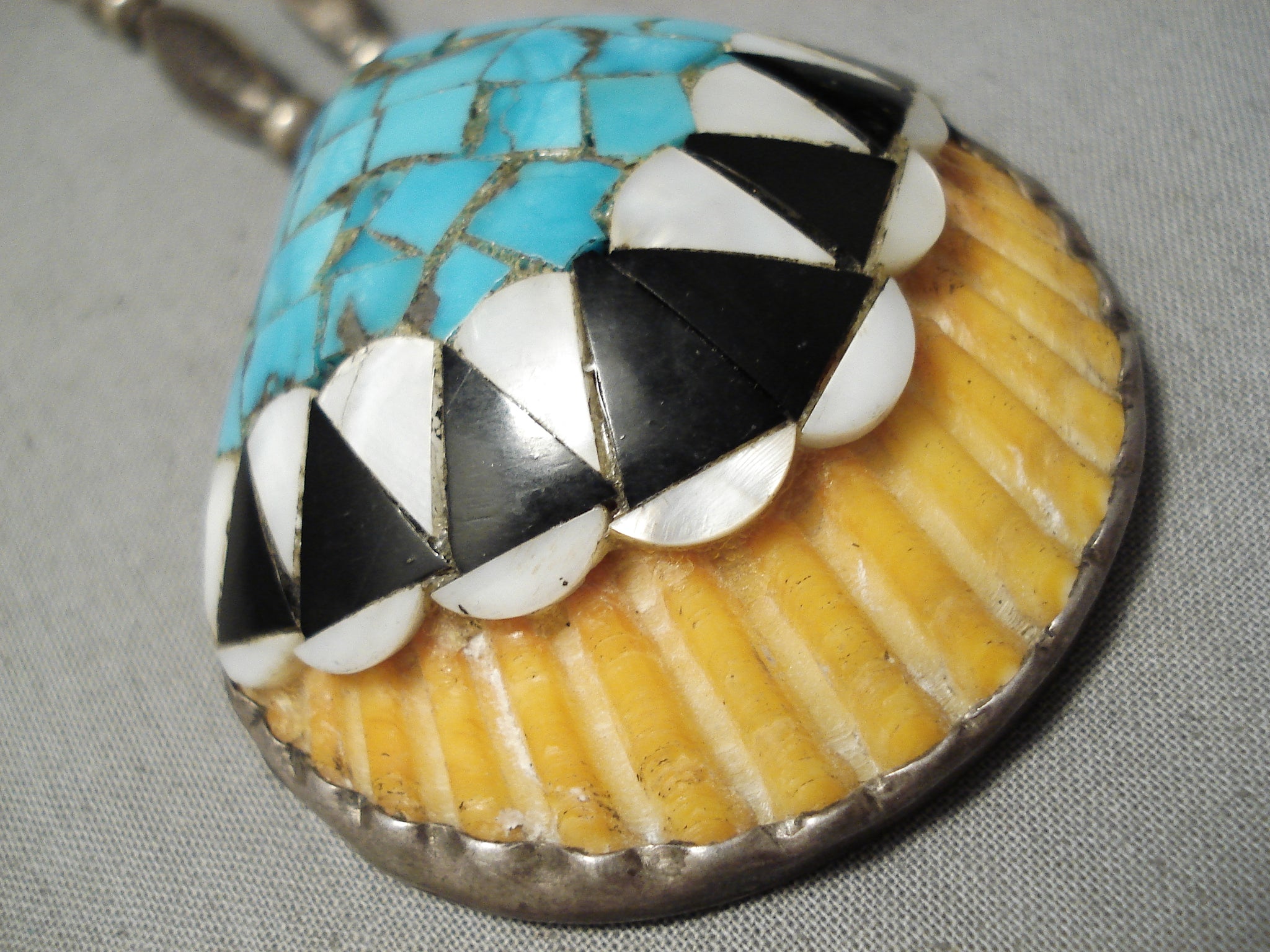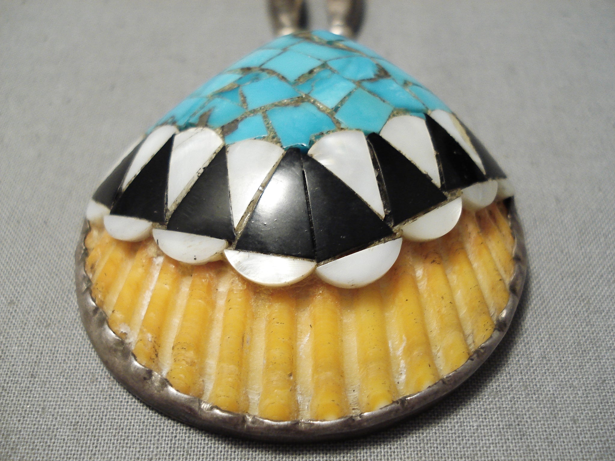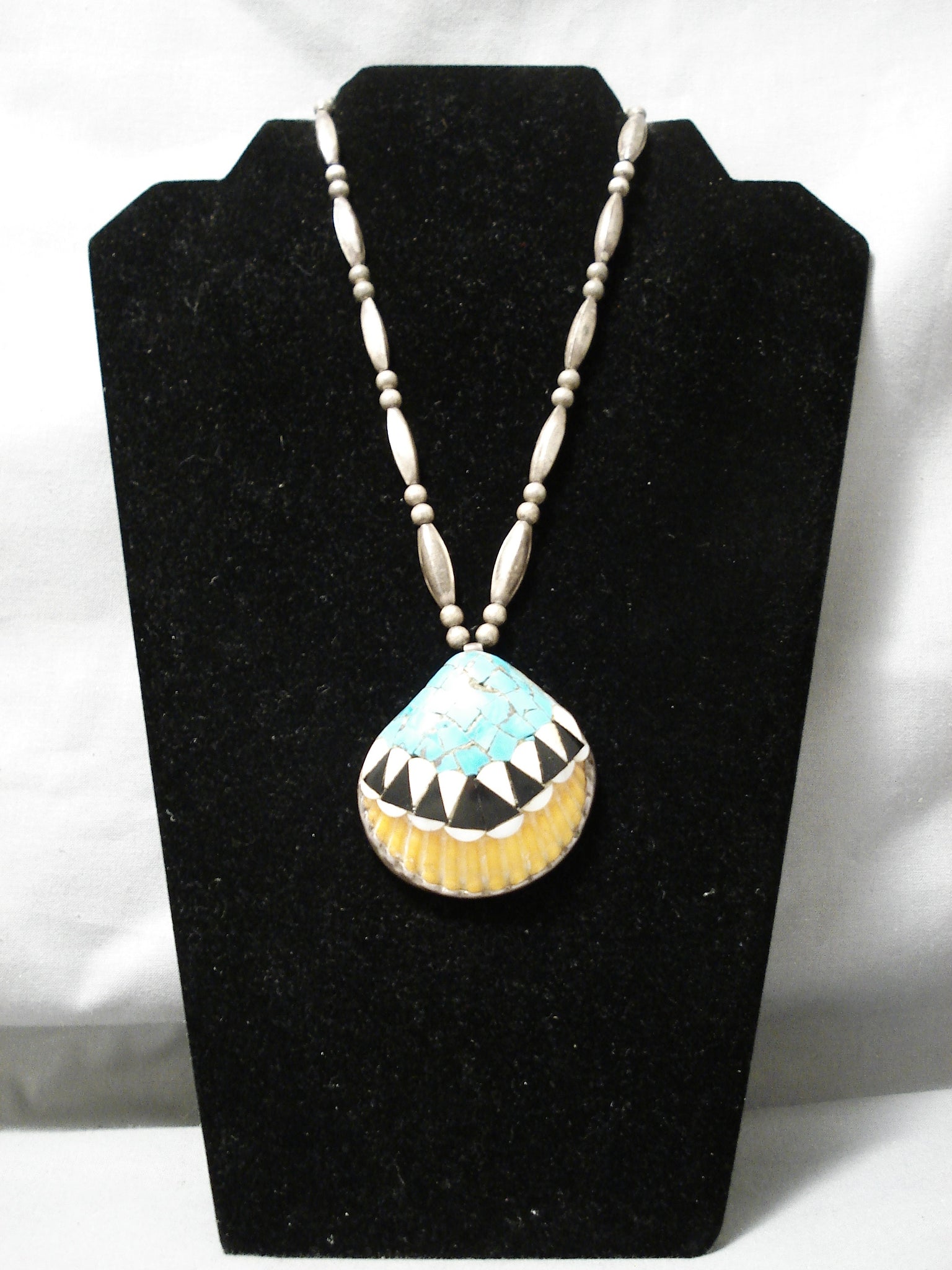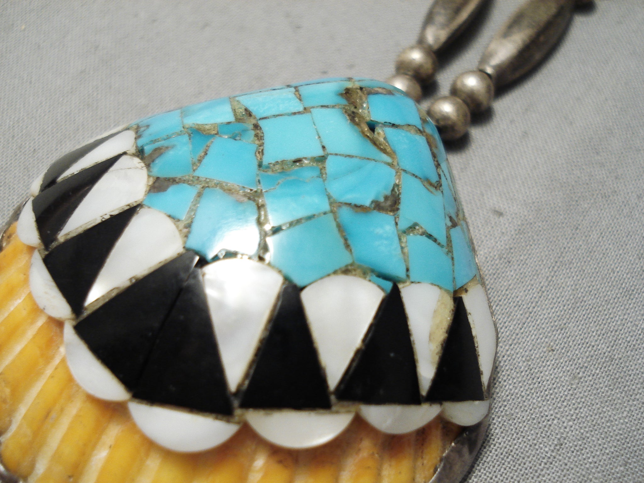 Native American Amazing Vintage Santo Domingo Sterling Silver Turquoise Shell Necklace Old