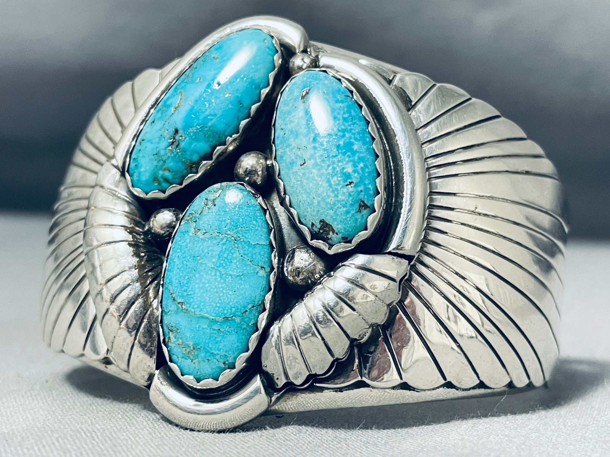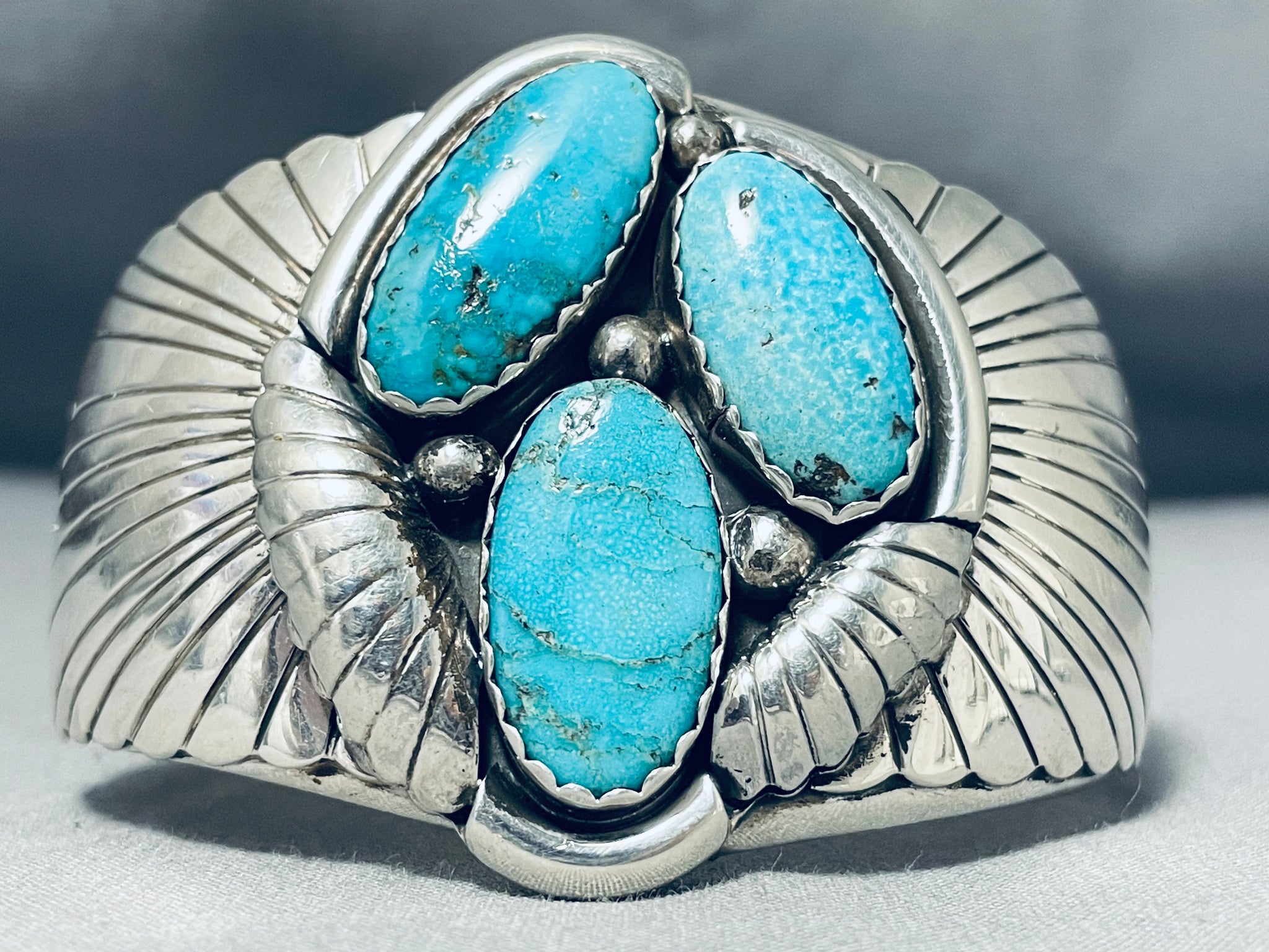 Native American Amazing Vintage Santo Domingo Turquoise Sterling Silver Bracelet Signed