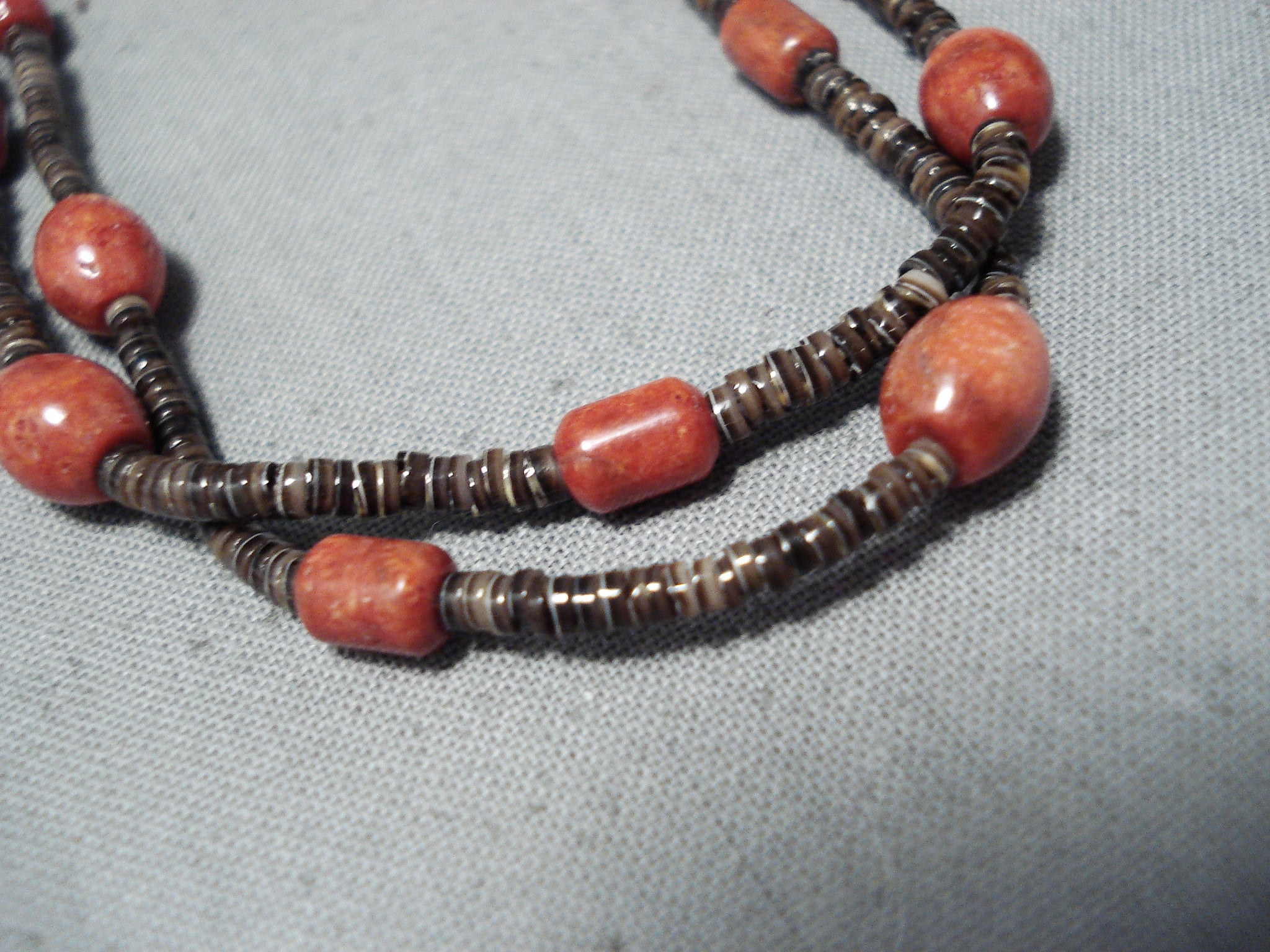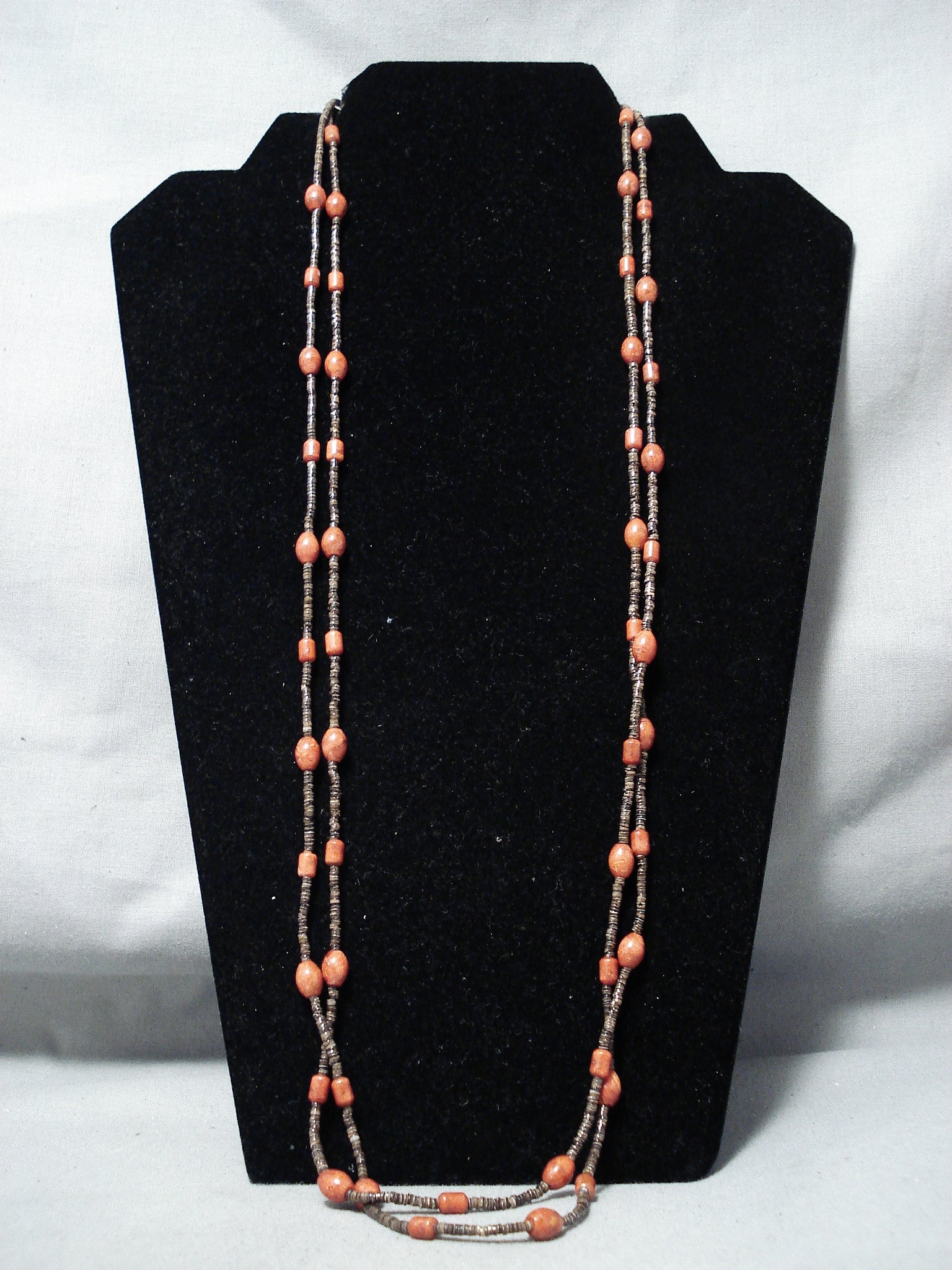 Native American Astonishing Santo Domingo Coral Heishi Necklace