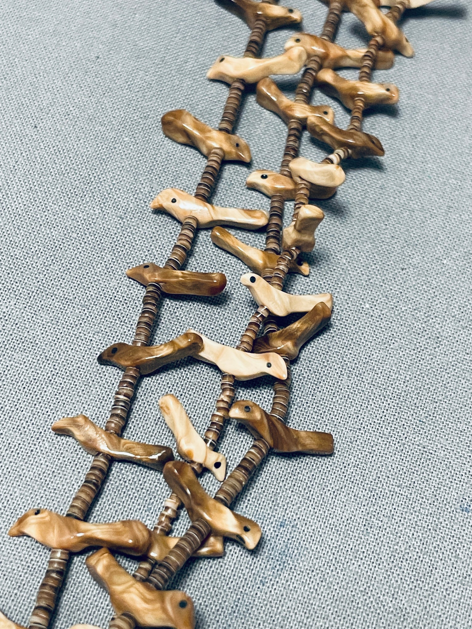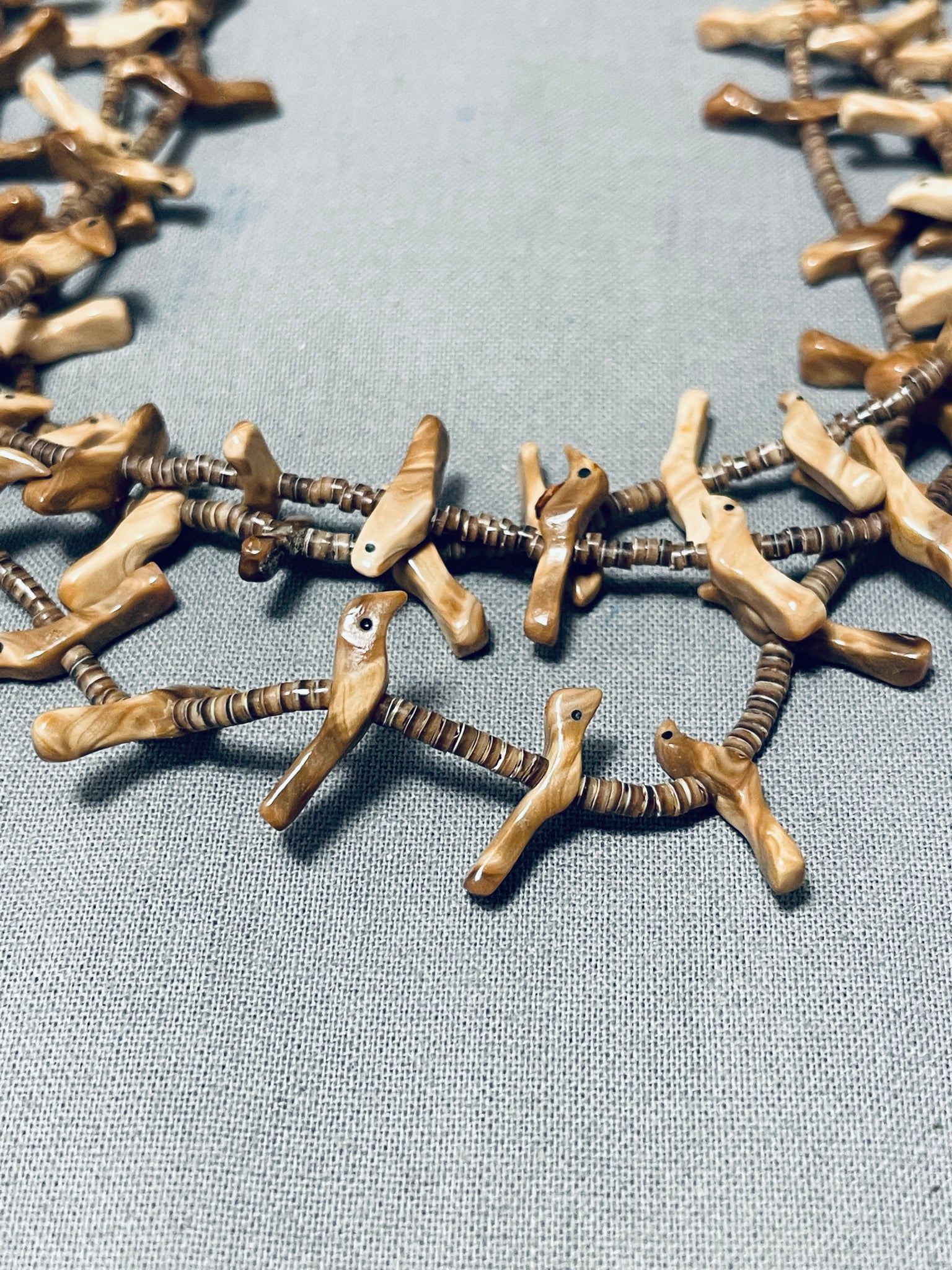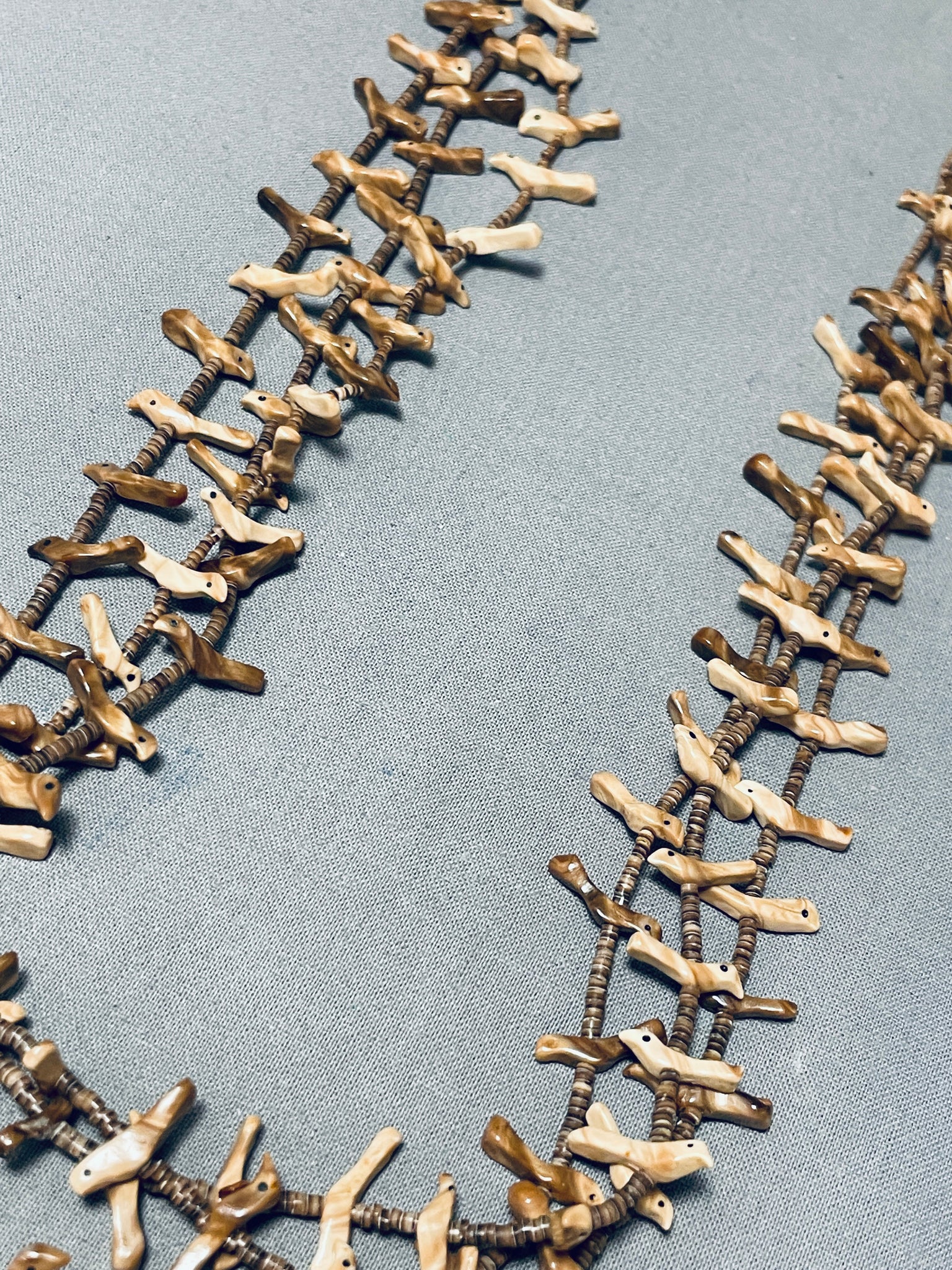 Native American Authentic Vintage Santo Domingo Heishi Bird Fetish Sterling Silver Necklace