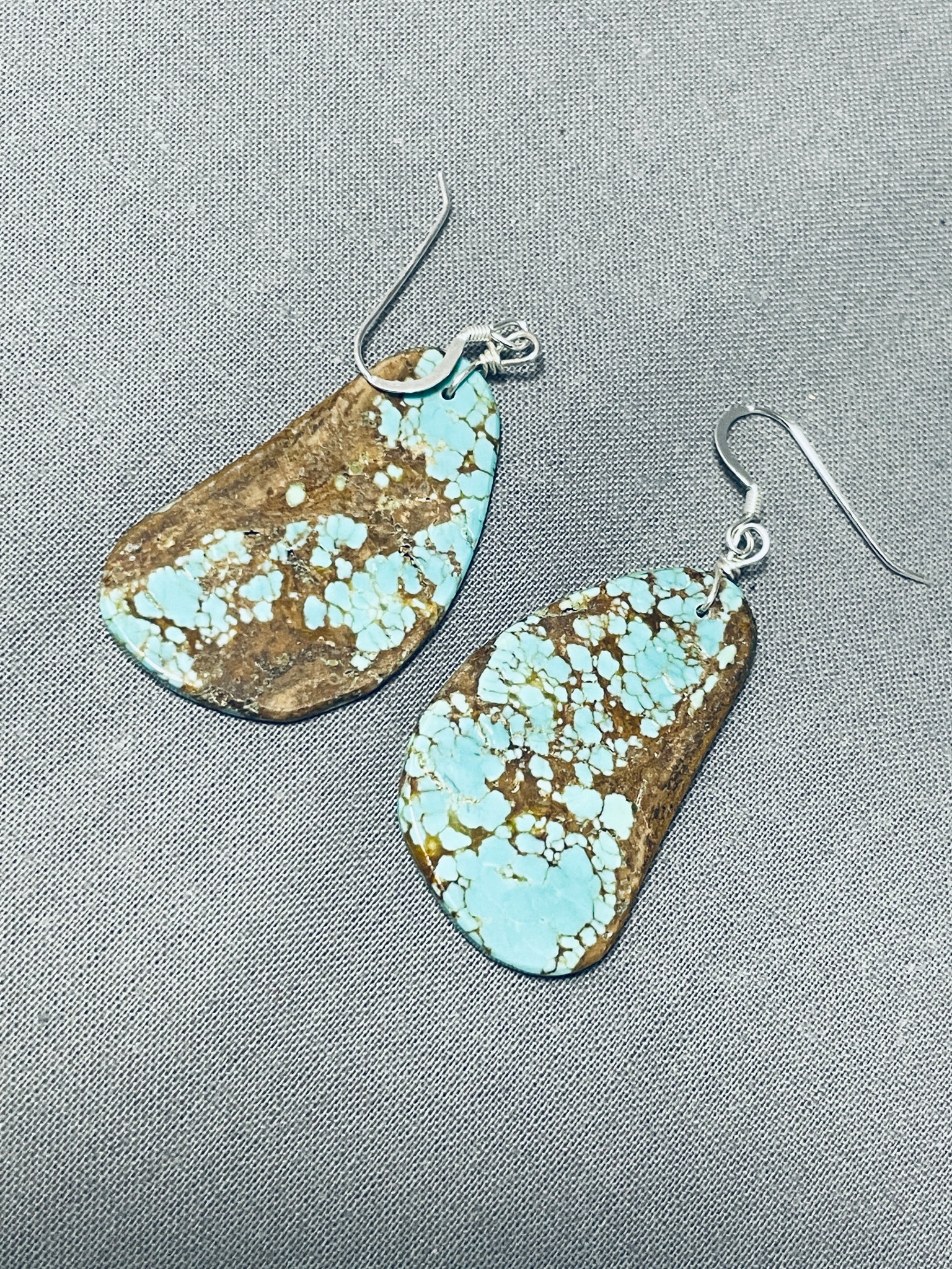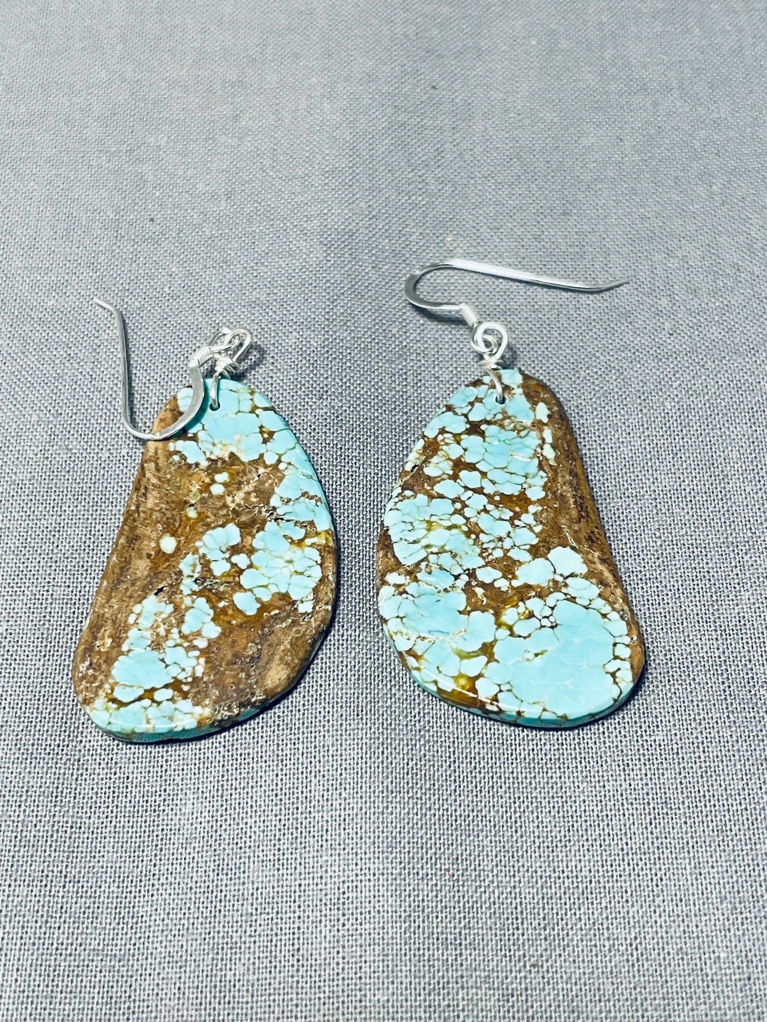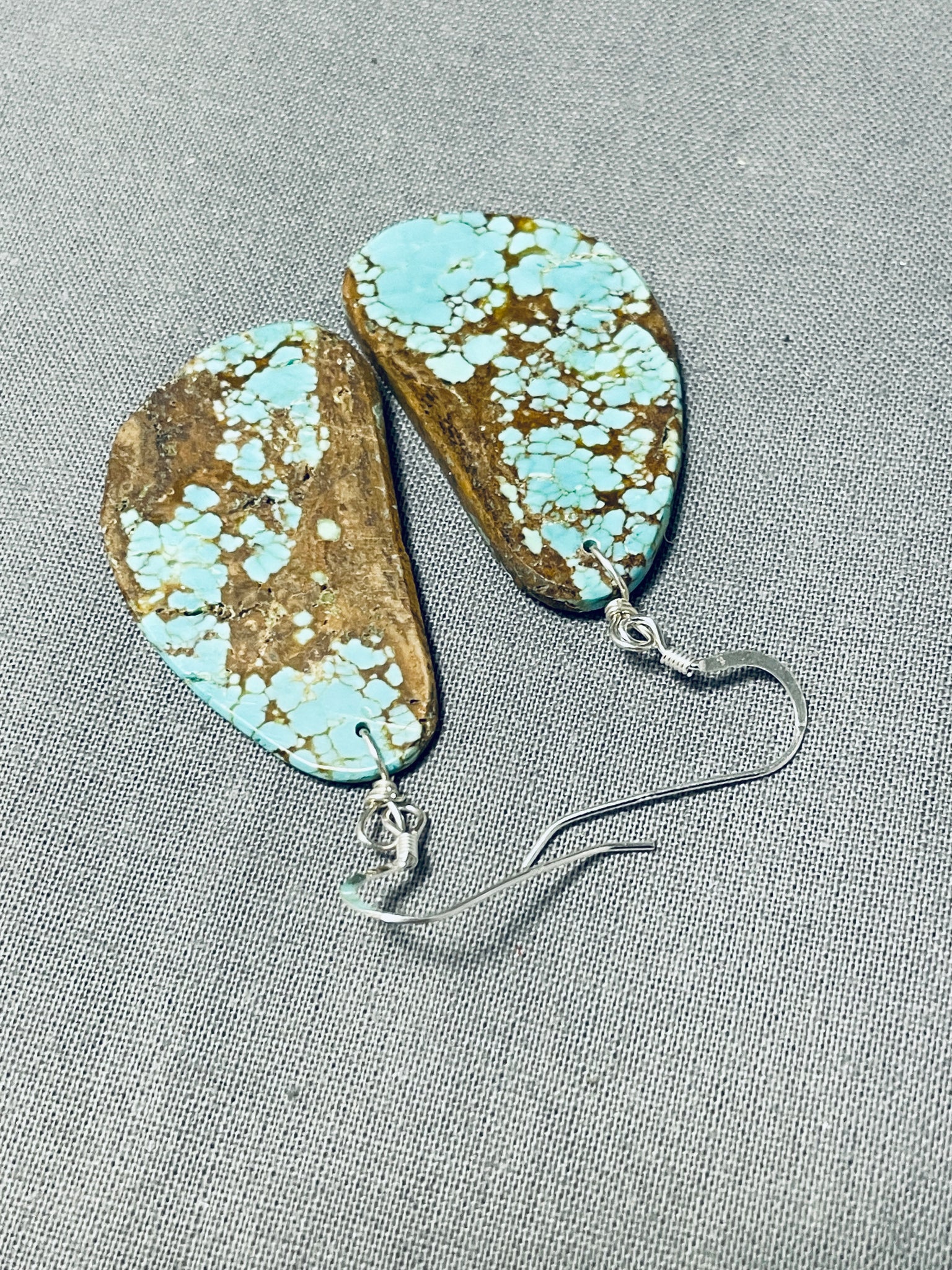 Native American Beautiful Santo Domingo 8 Turquoise Sterling Silver Earrings