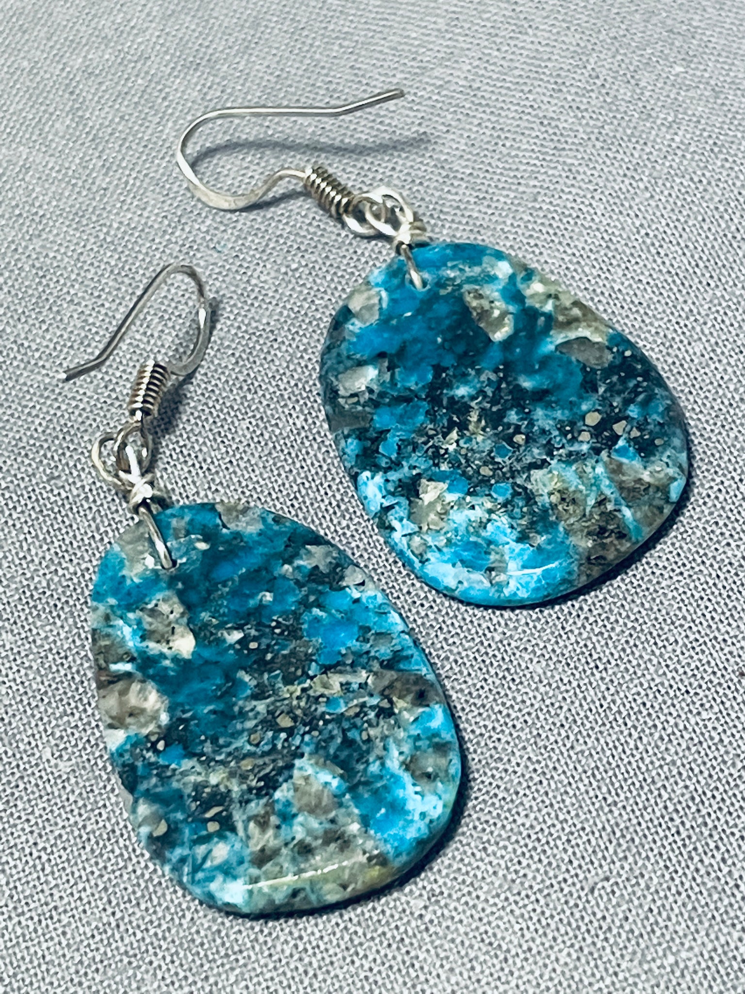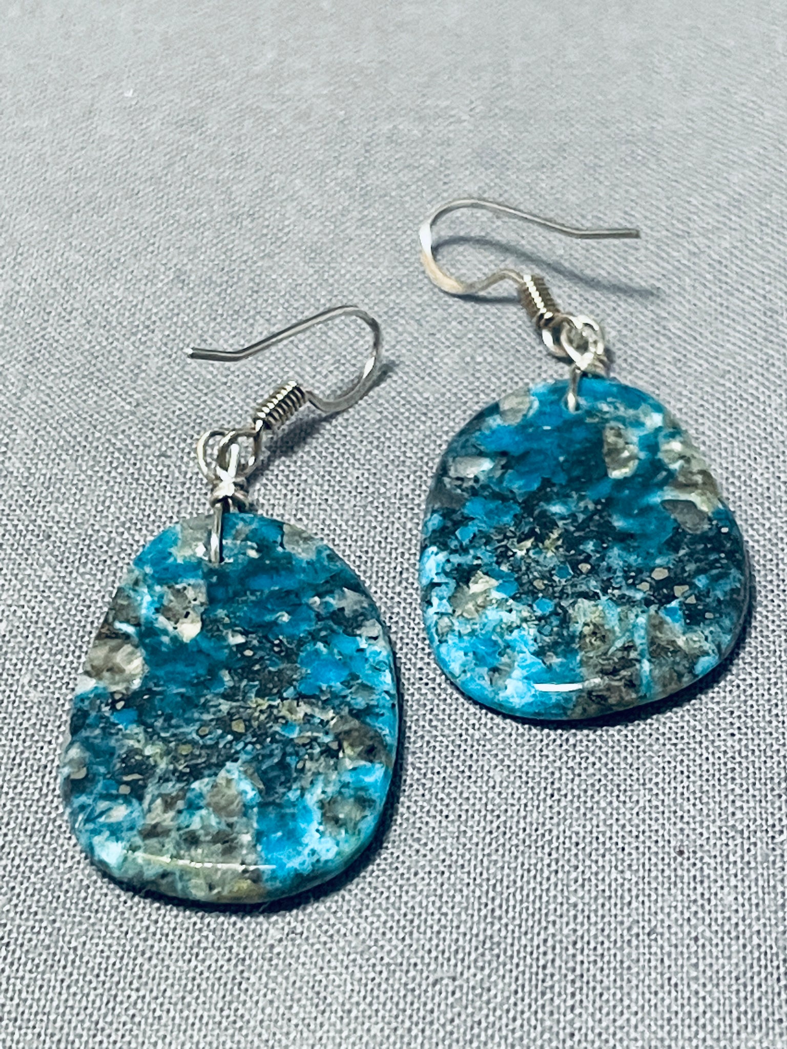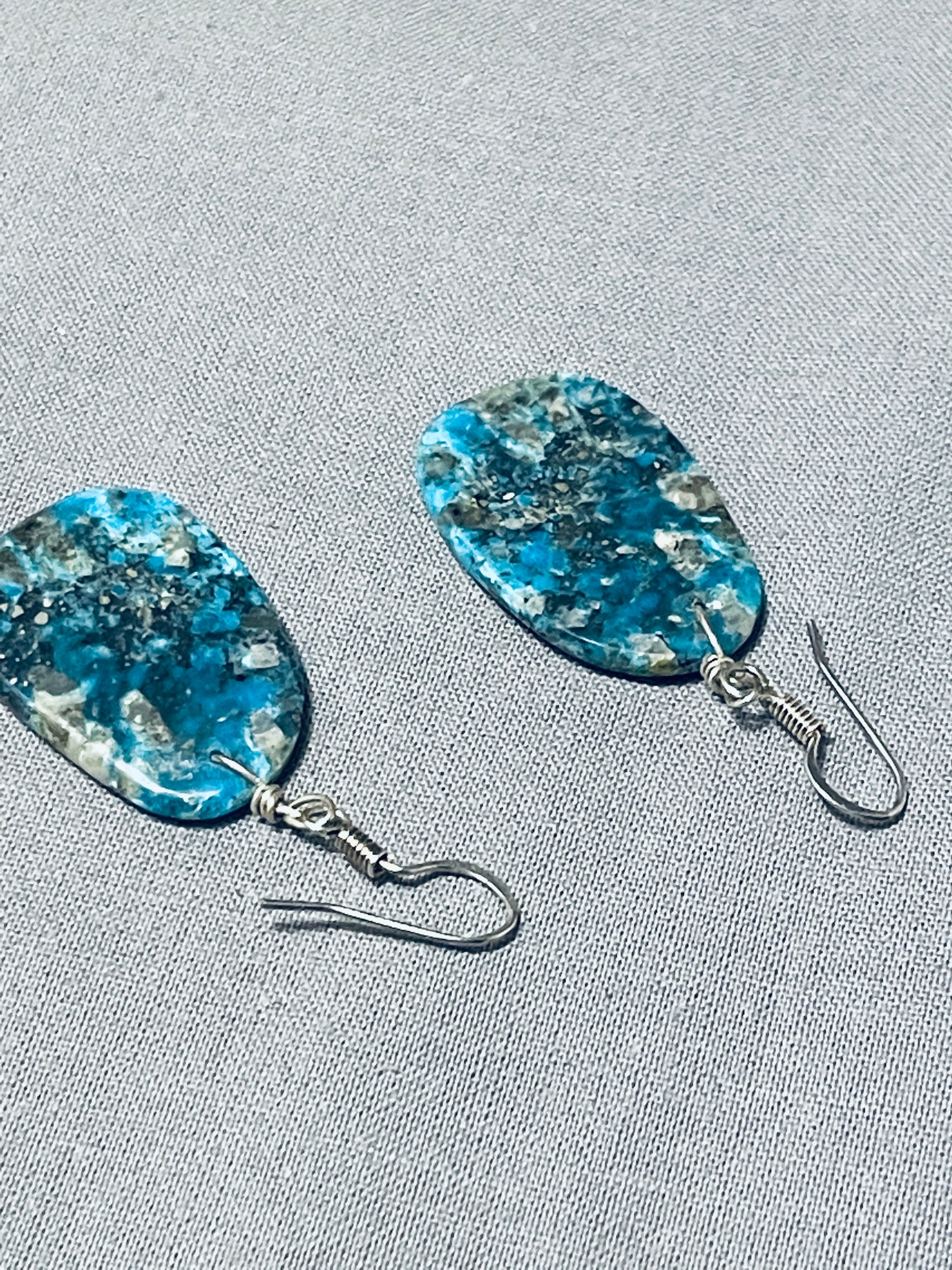 Native American Beautiful Santo Domingo Turquoise Slab Sterling Silver Earrings