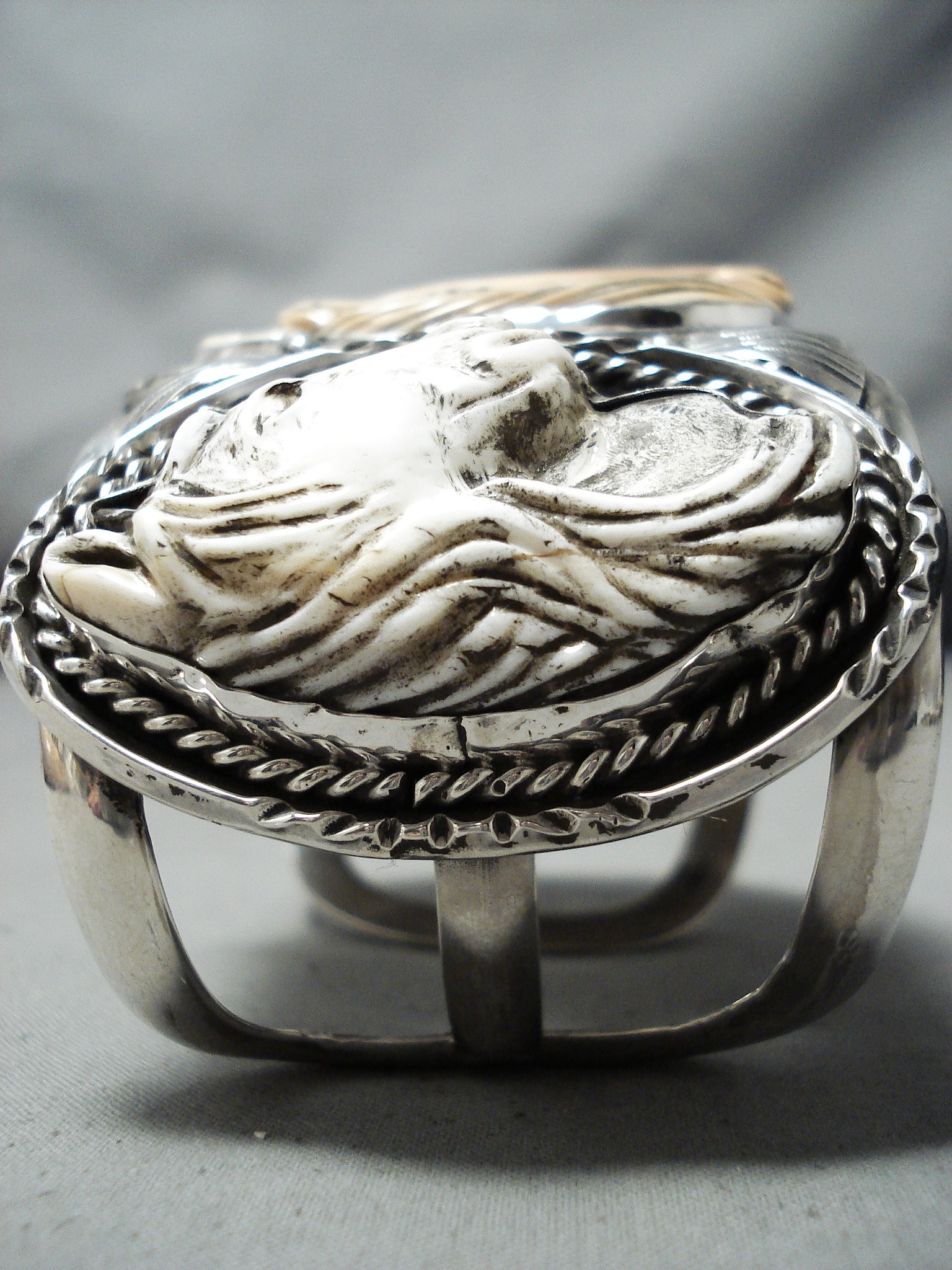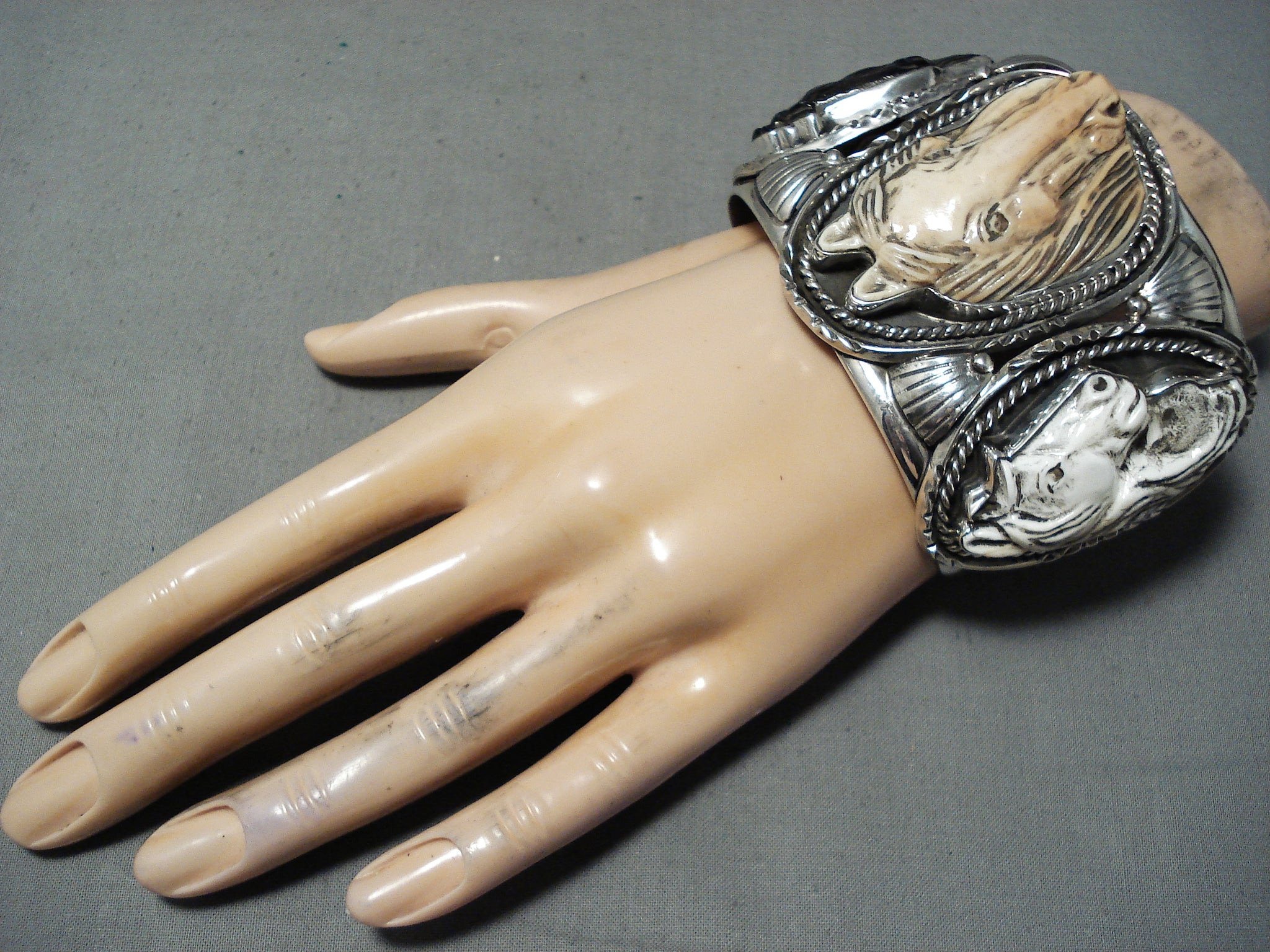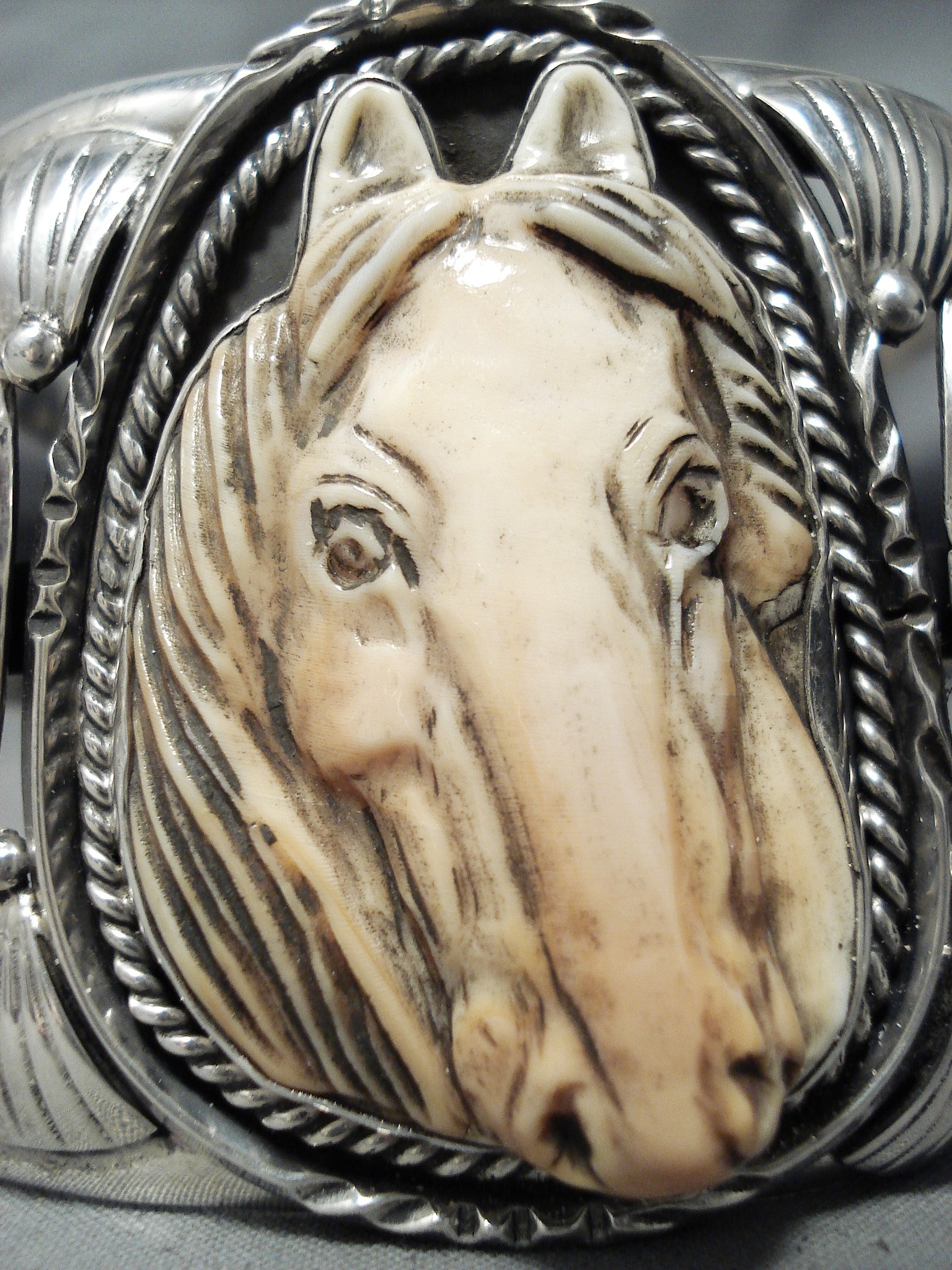 Native American Best Huge Heavy Hand Carved Horse Sterling Silver Bracelet Cuff