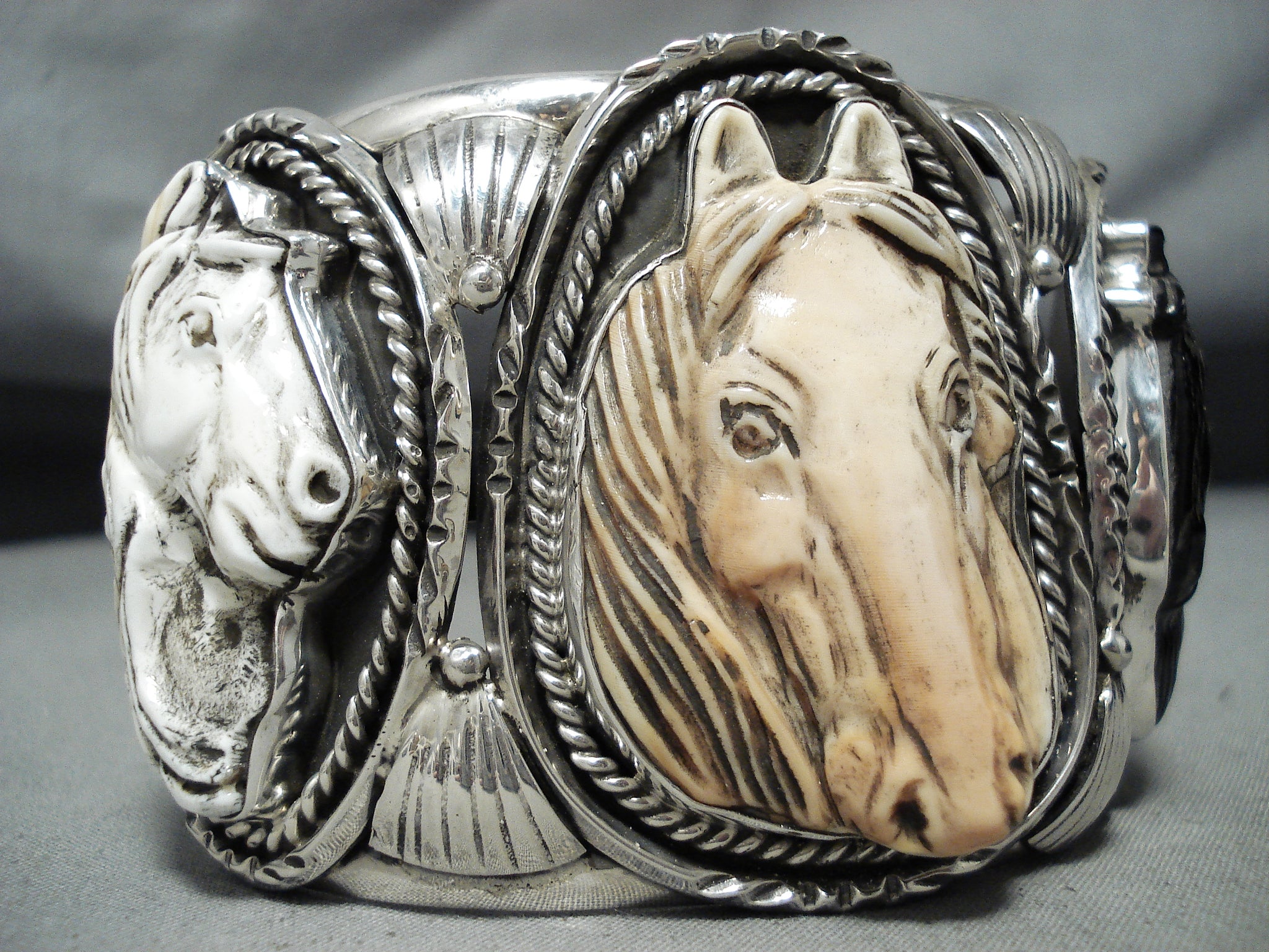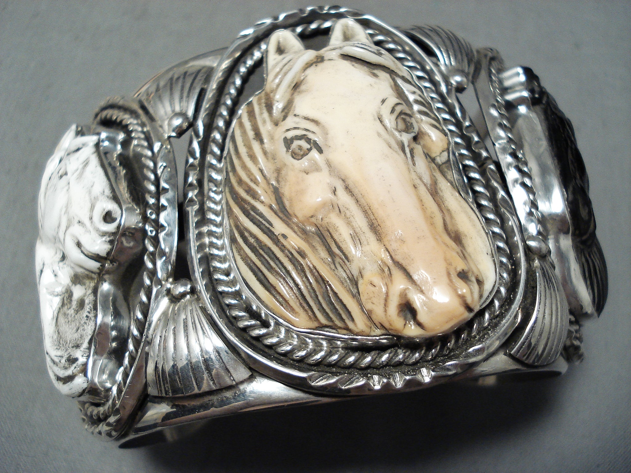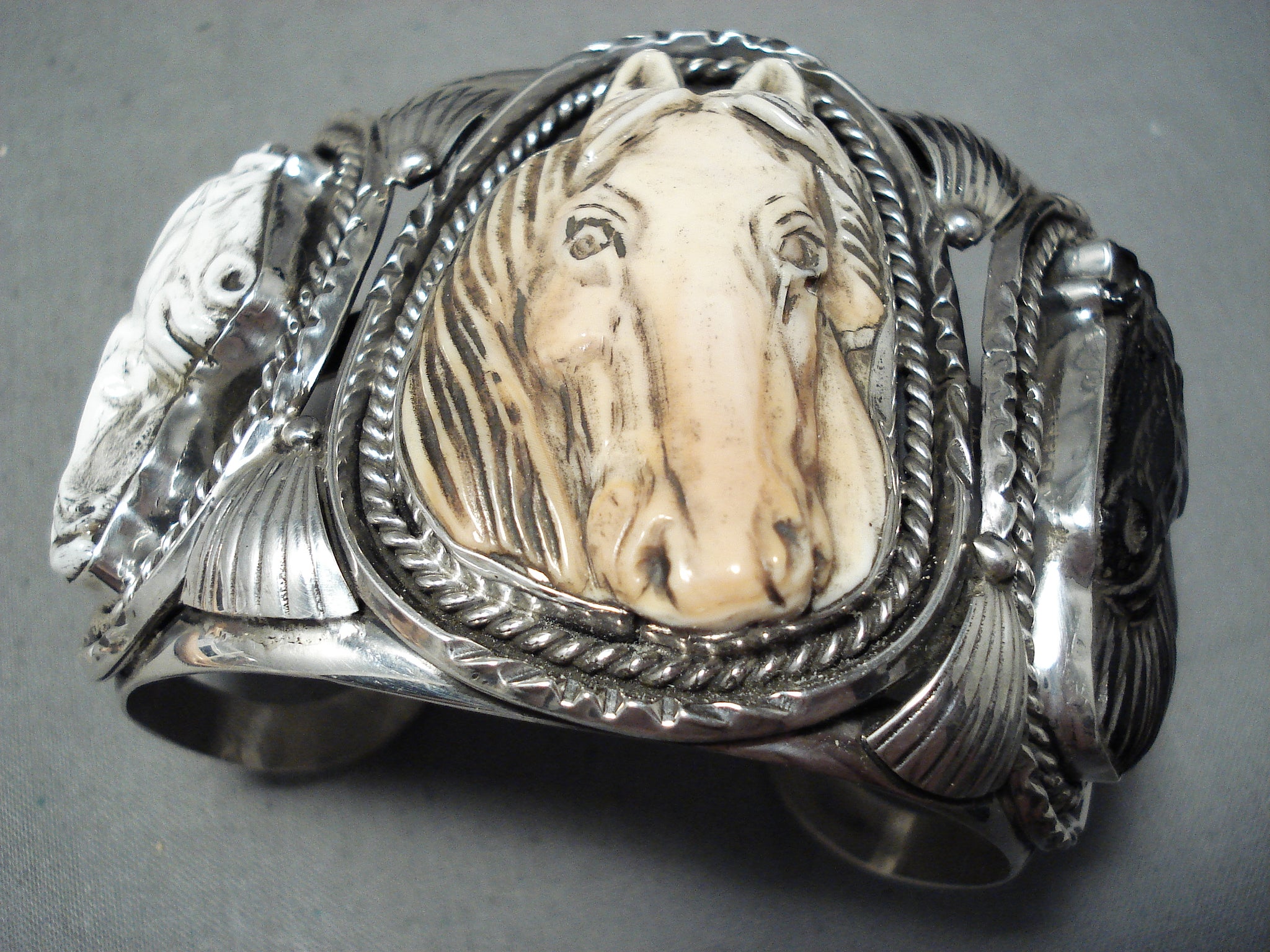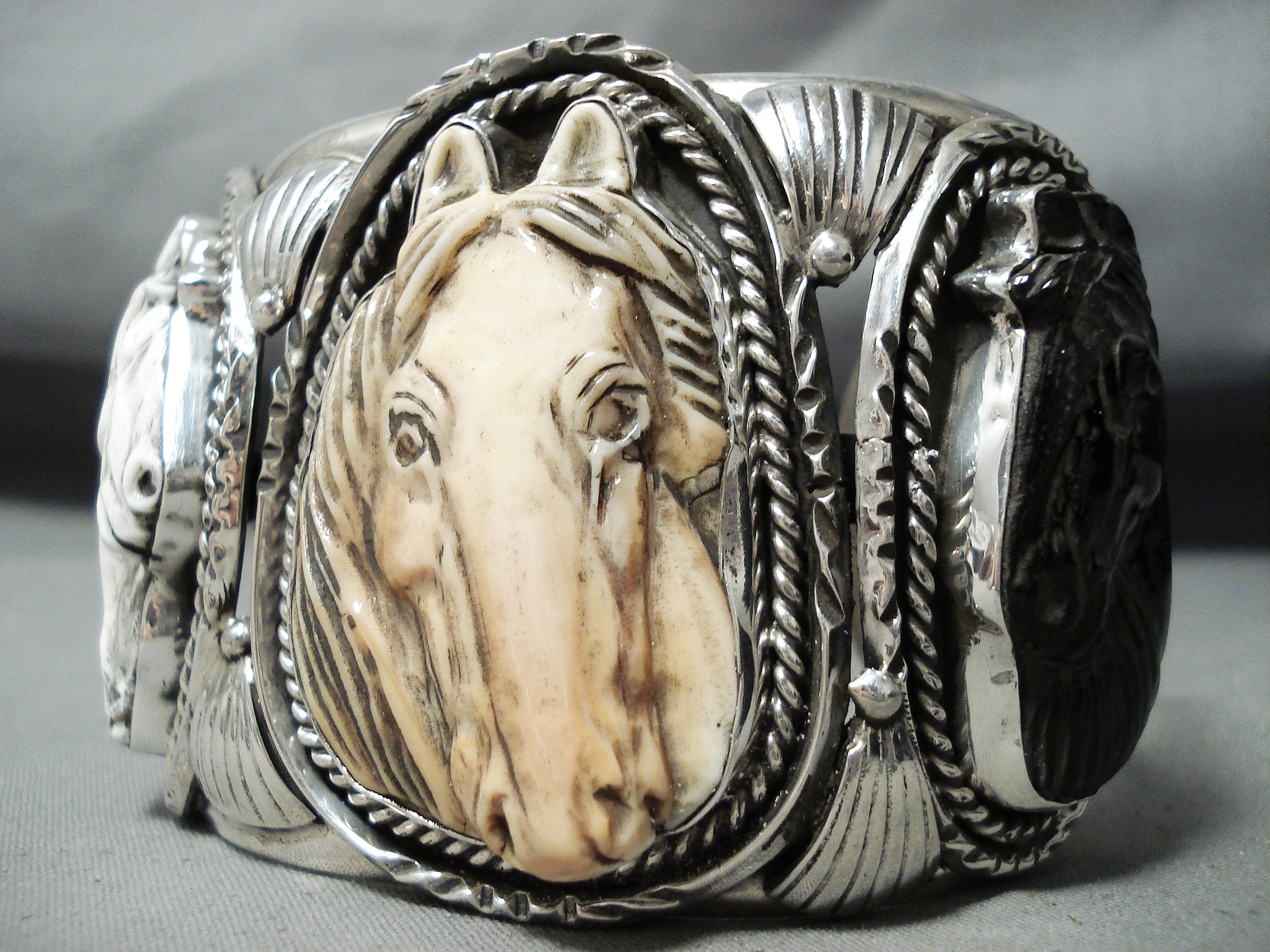Native American Best Huge Heavy Hand Carved Horse Sterling Silver Bracelet Cuff
