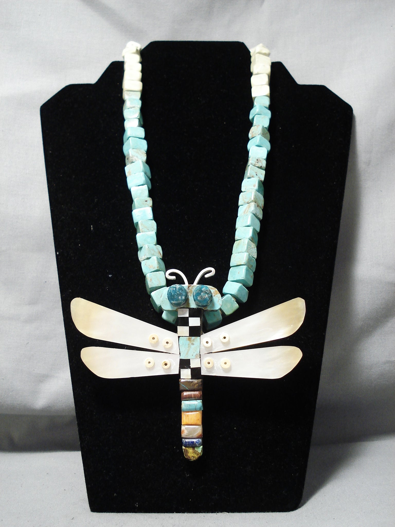 Native American Biggest Best Vintage Santo Domingo Turquoise Dragonfly Sterling Silver Necklace