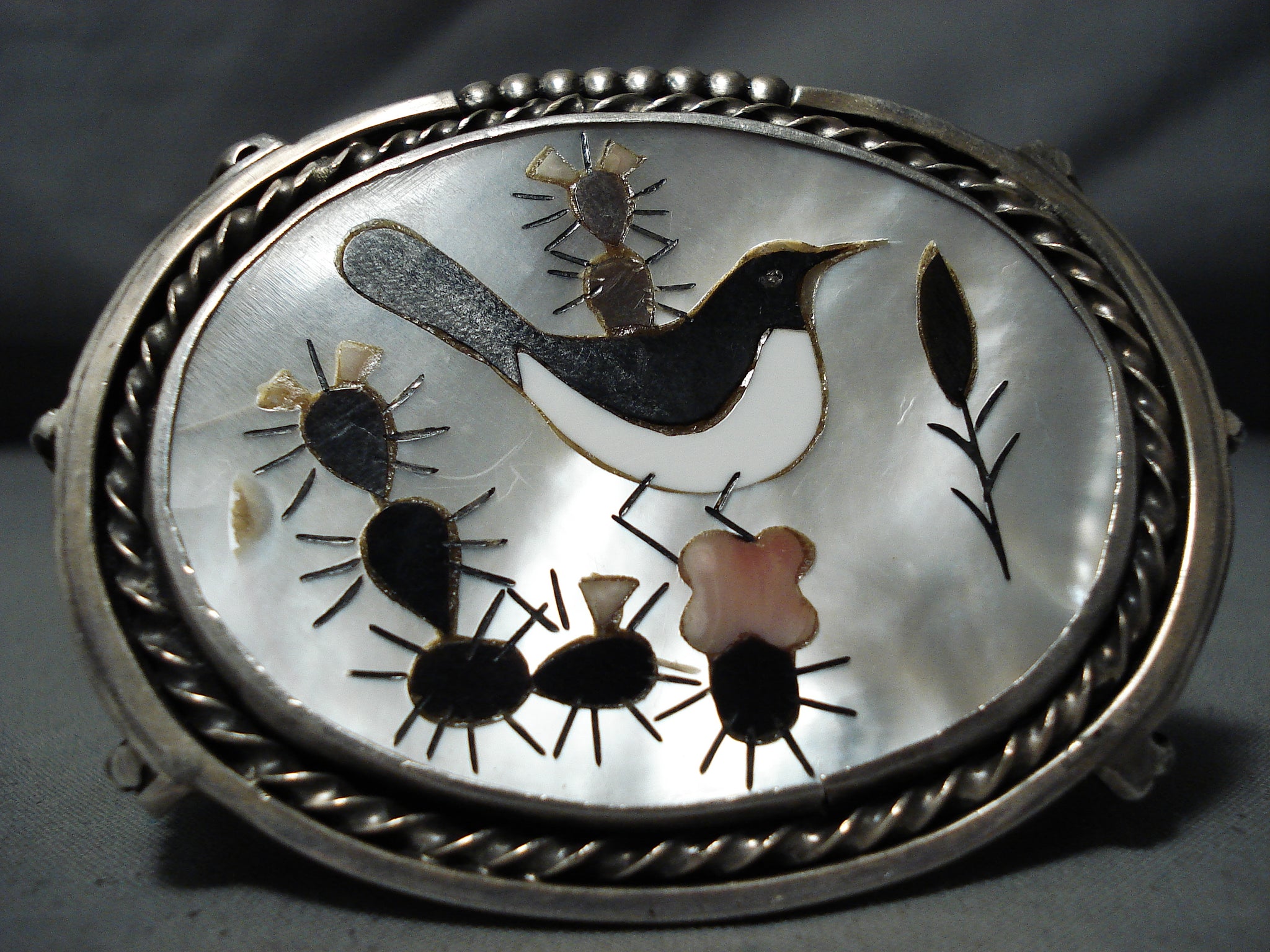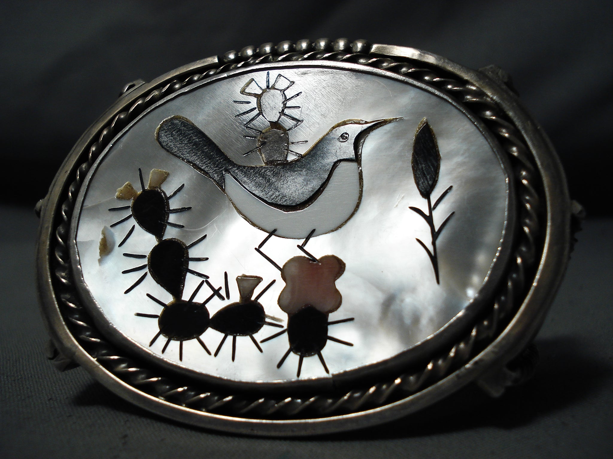 Native American Biggest Crazy Heavy Vintage Navajo Sterling Silver Bird Inlay Bracelet Old