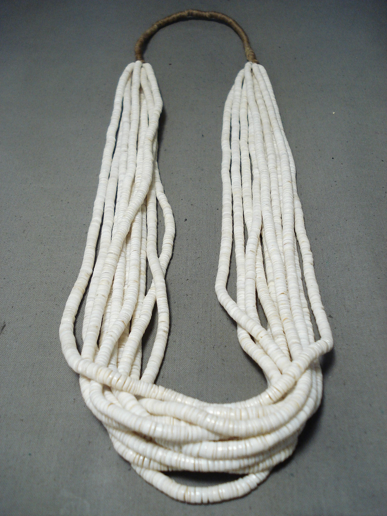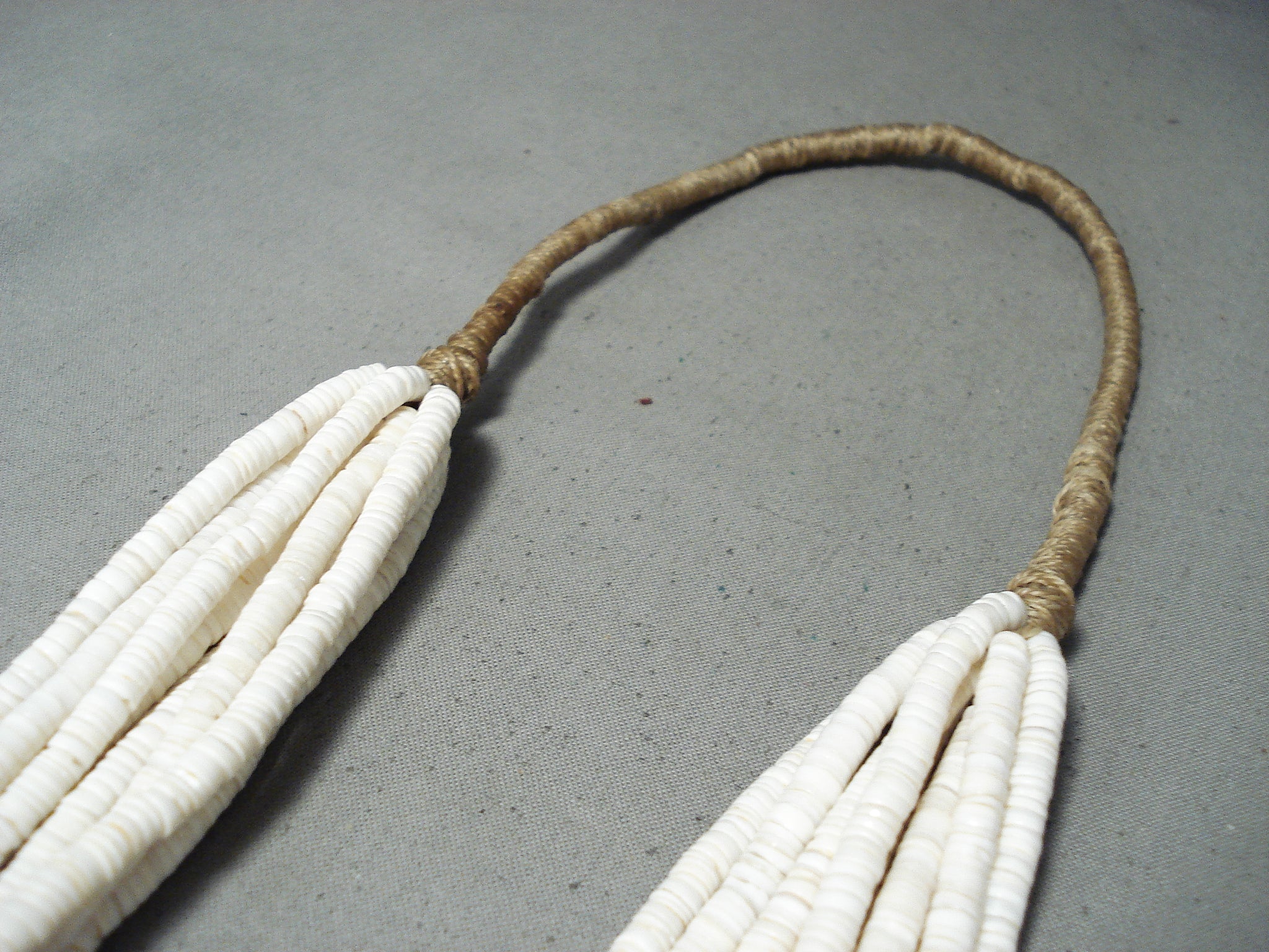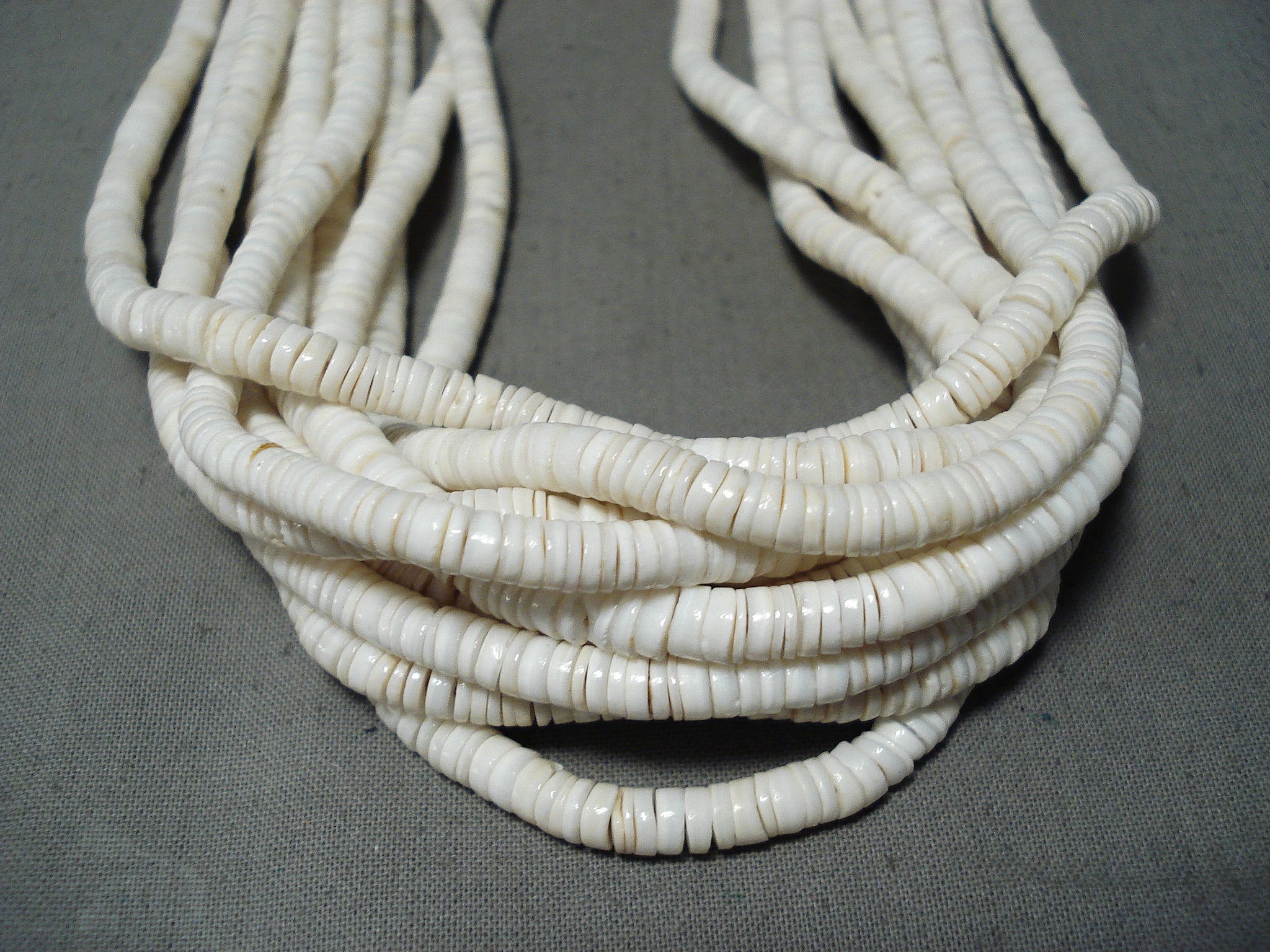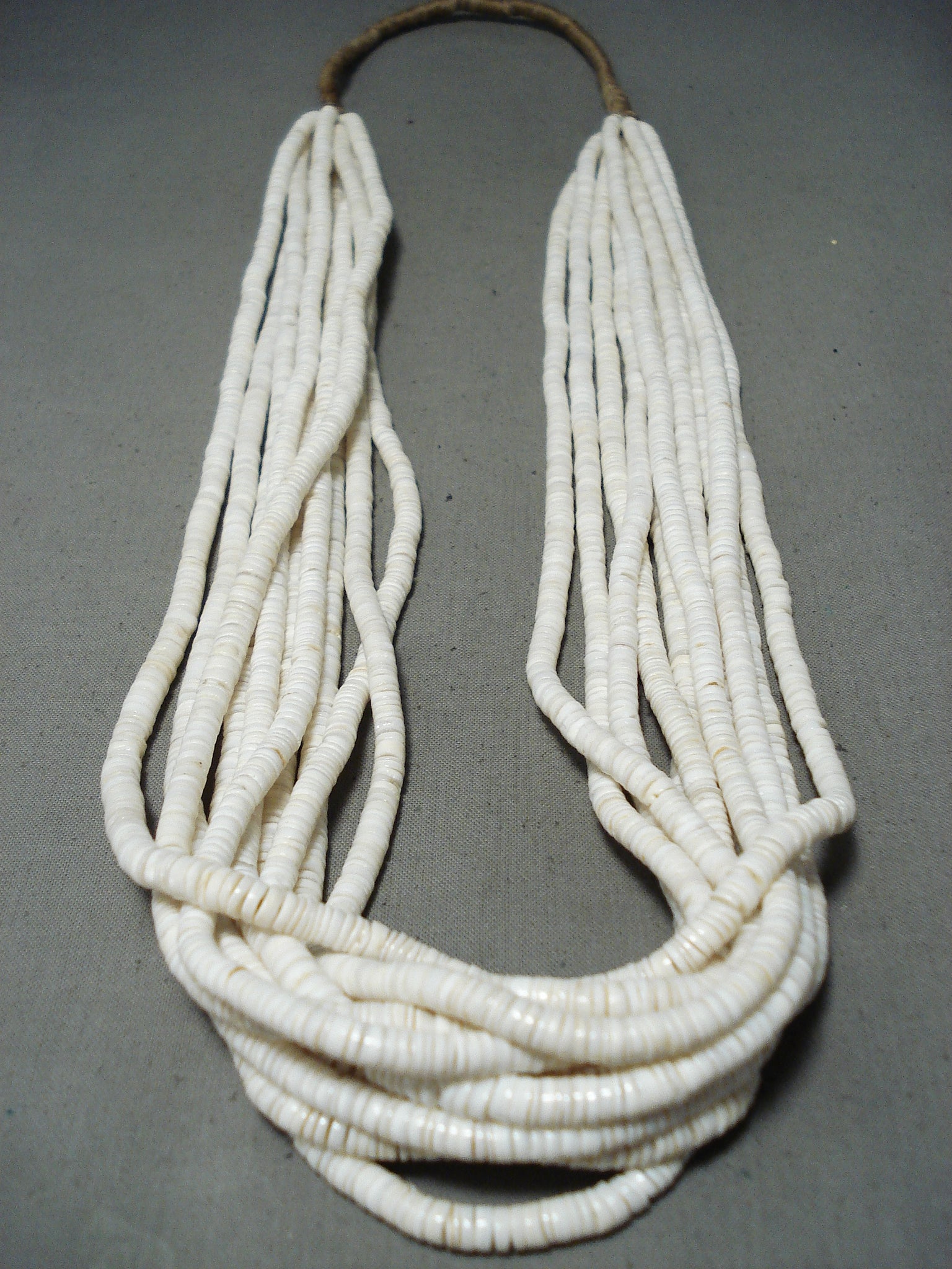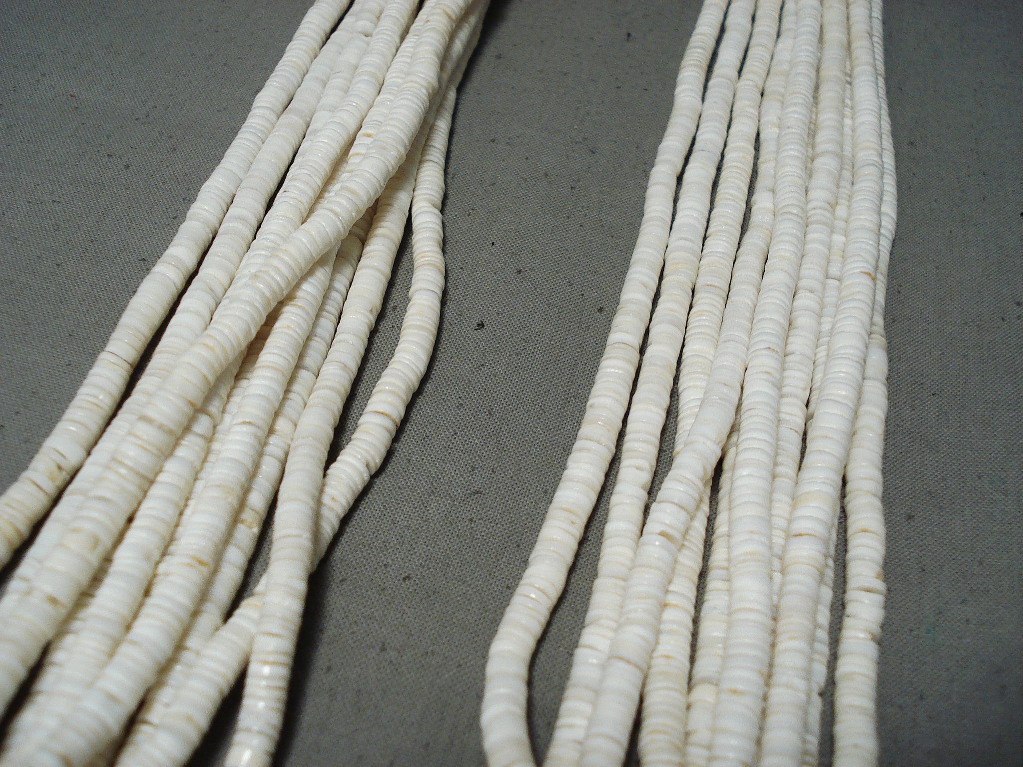 Native American Breathtaking Santo Domingo 10 Strand White Shell Cord Necklace