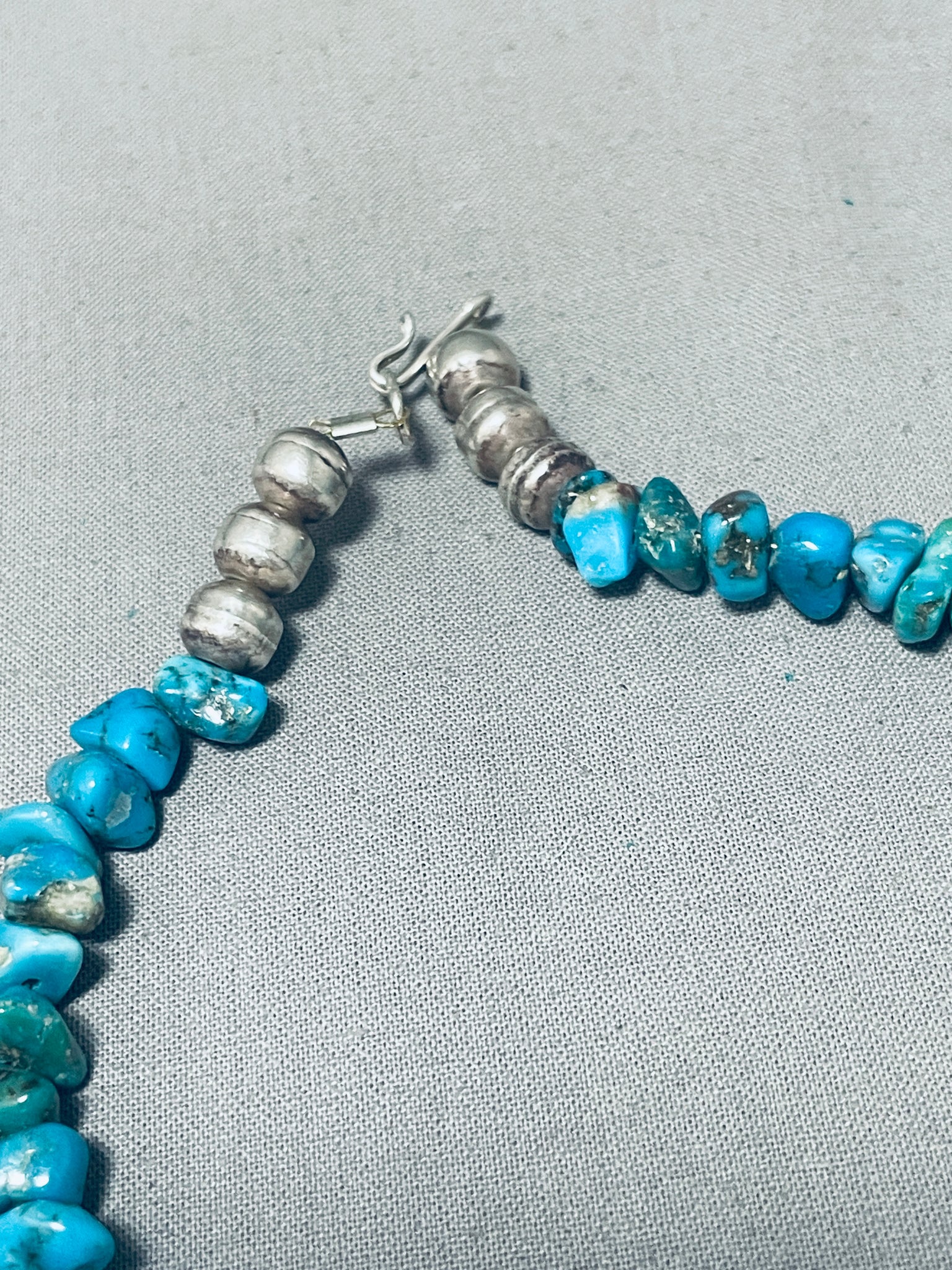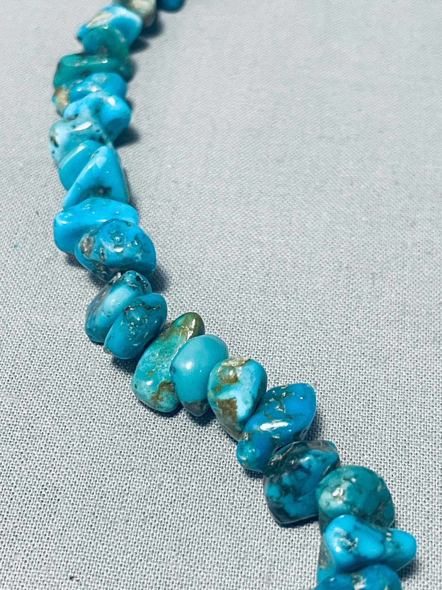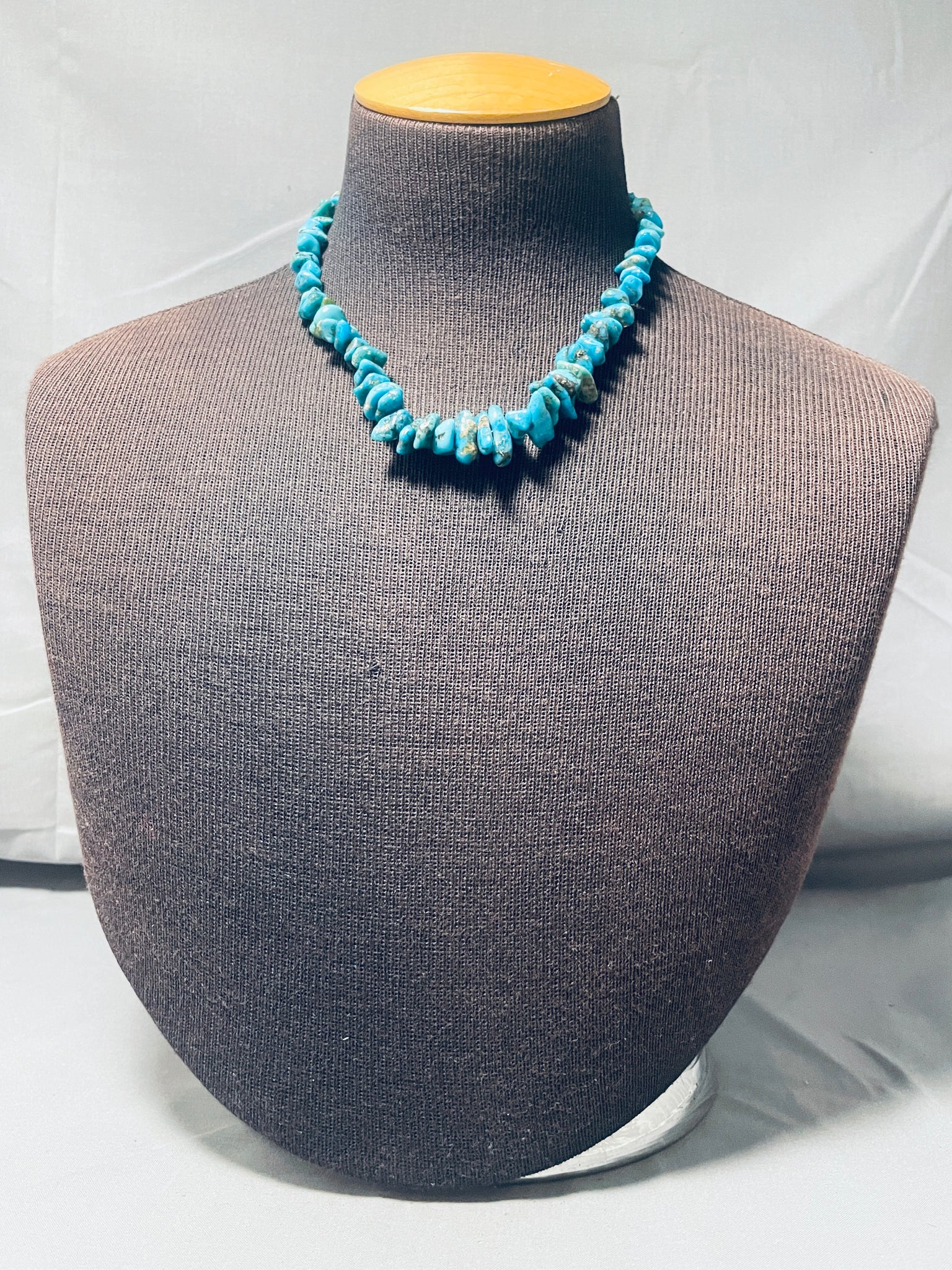 Native American Brilliant Vintage Santo Domingo Pilot Mountain Turquoise Chunks Necklace