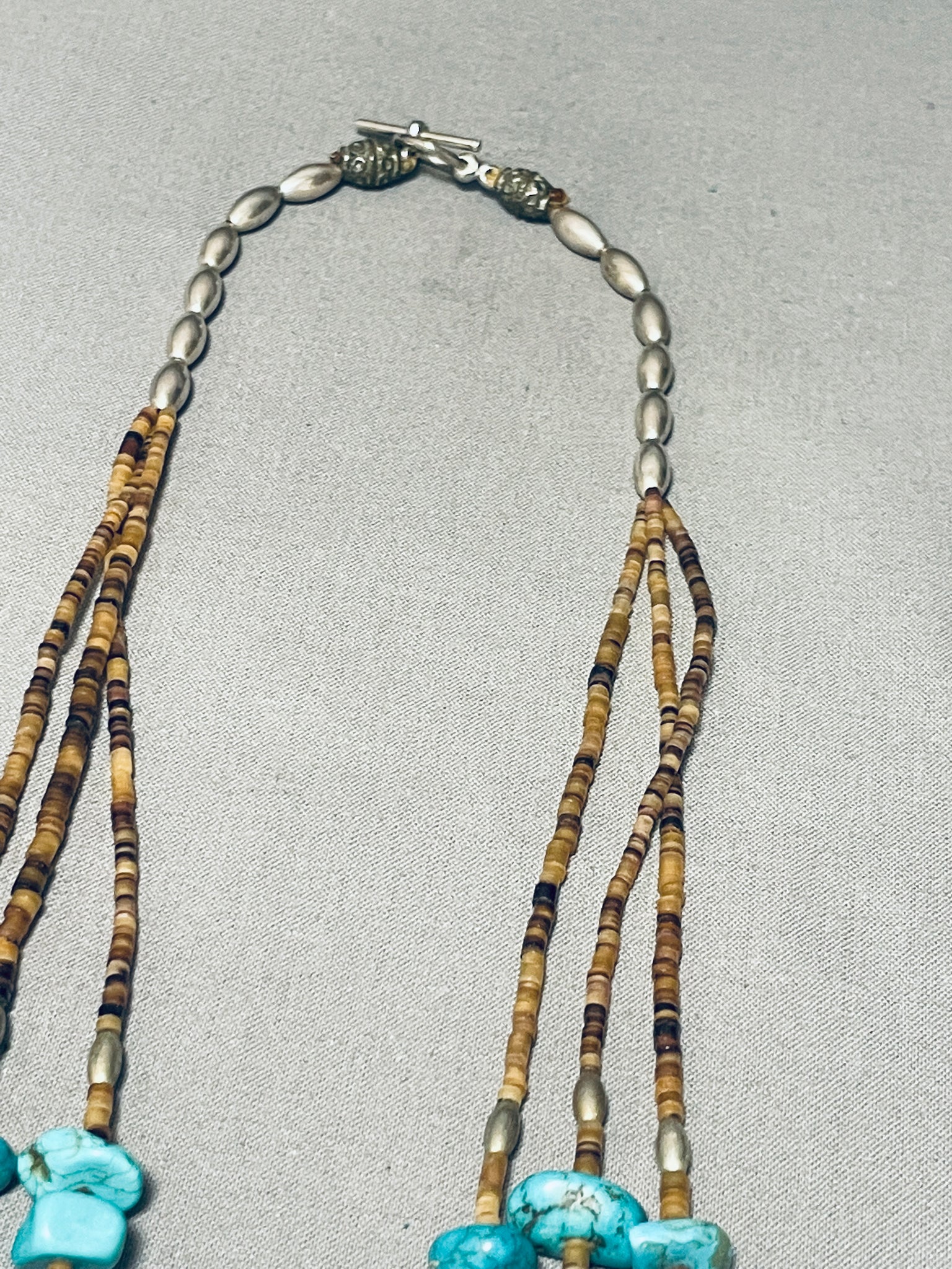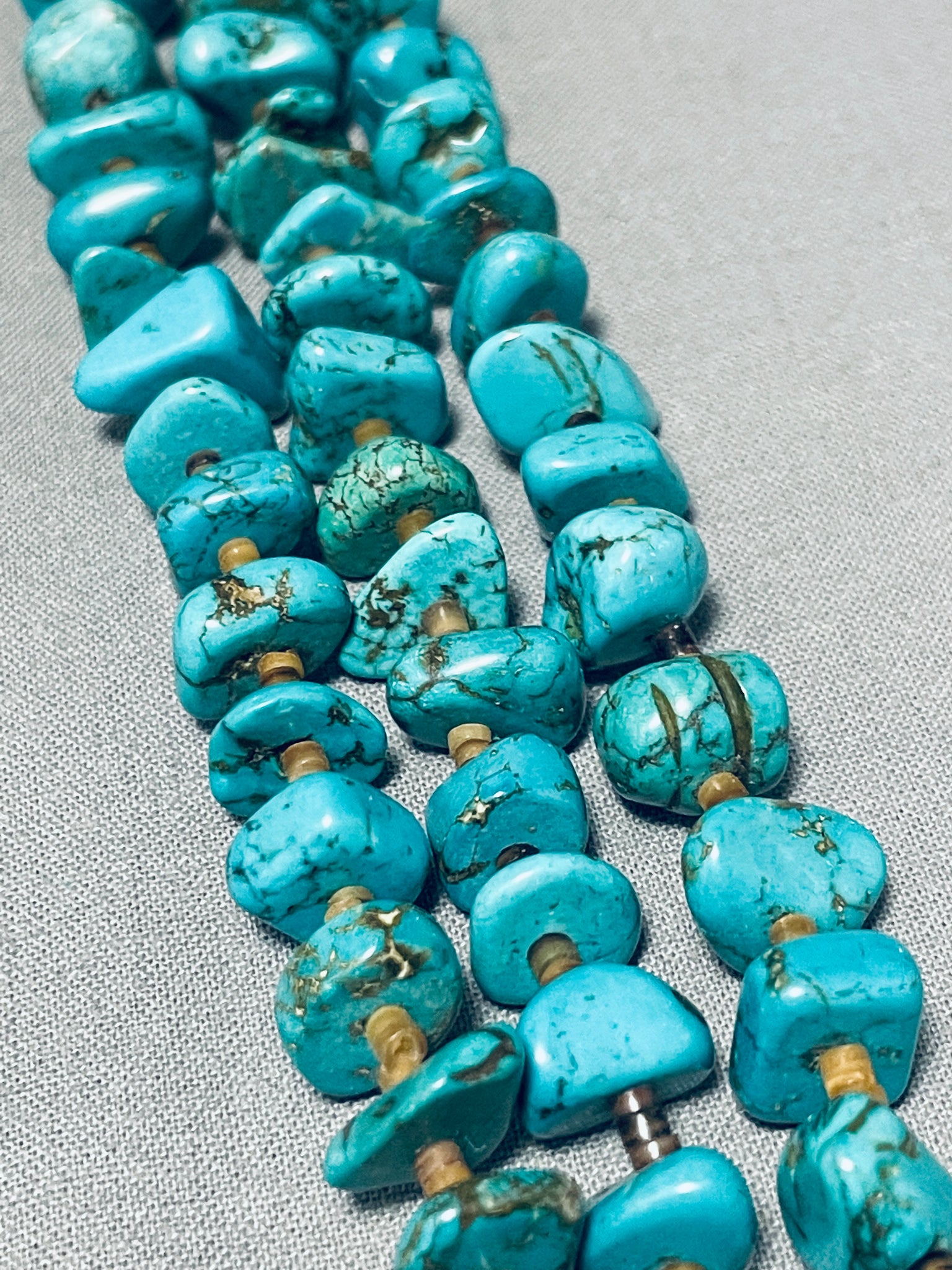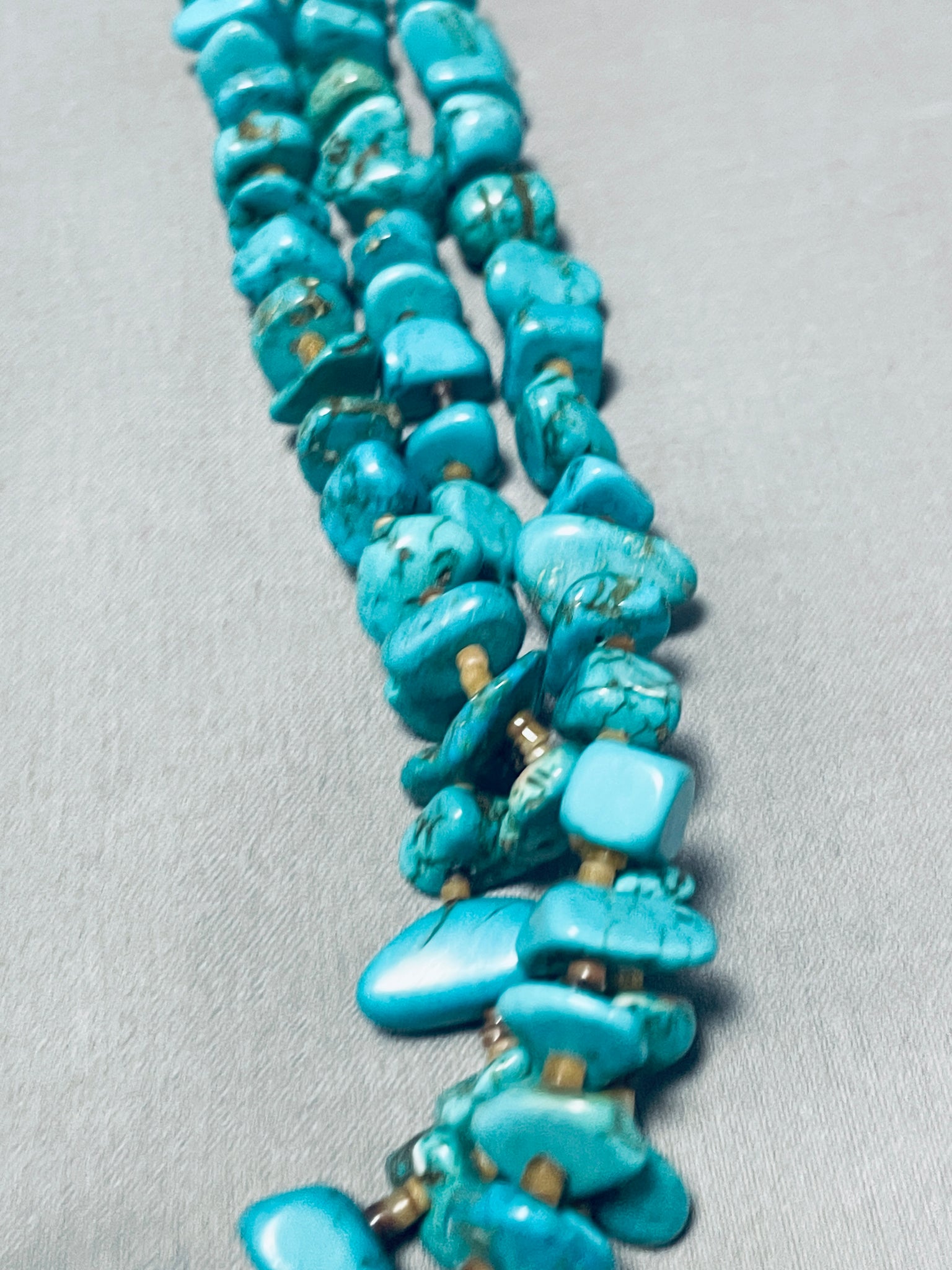 Native American Chunky Vintage Navajo Aqua Turquoise Sterling Silver Heishi Necklace