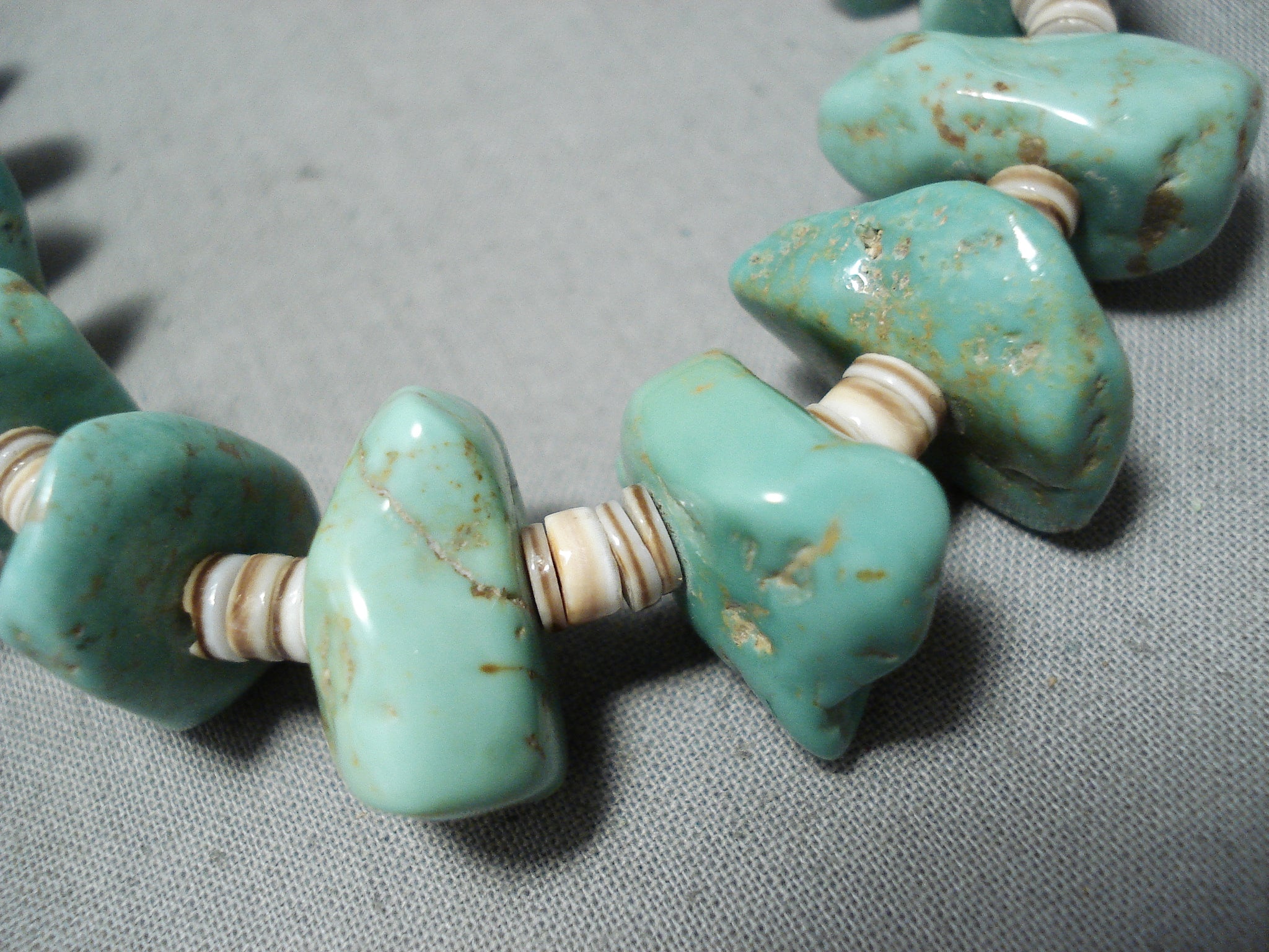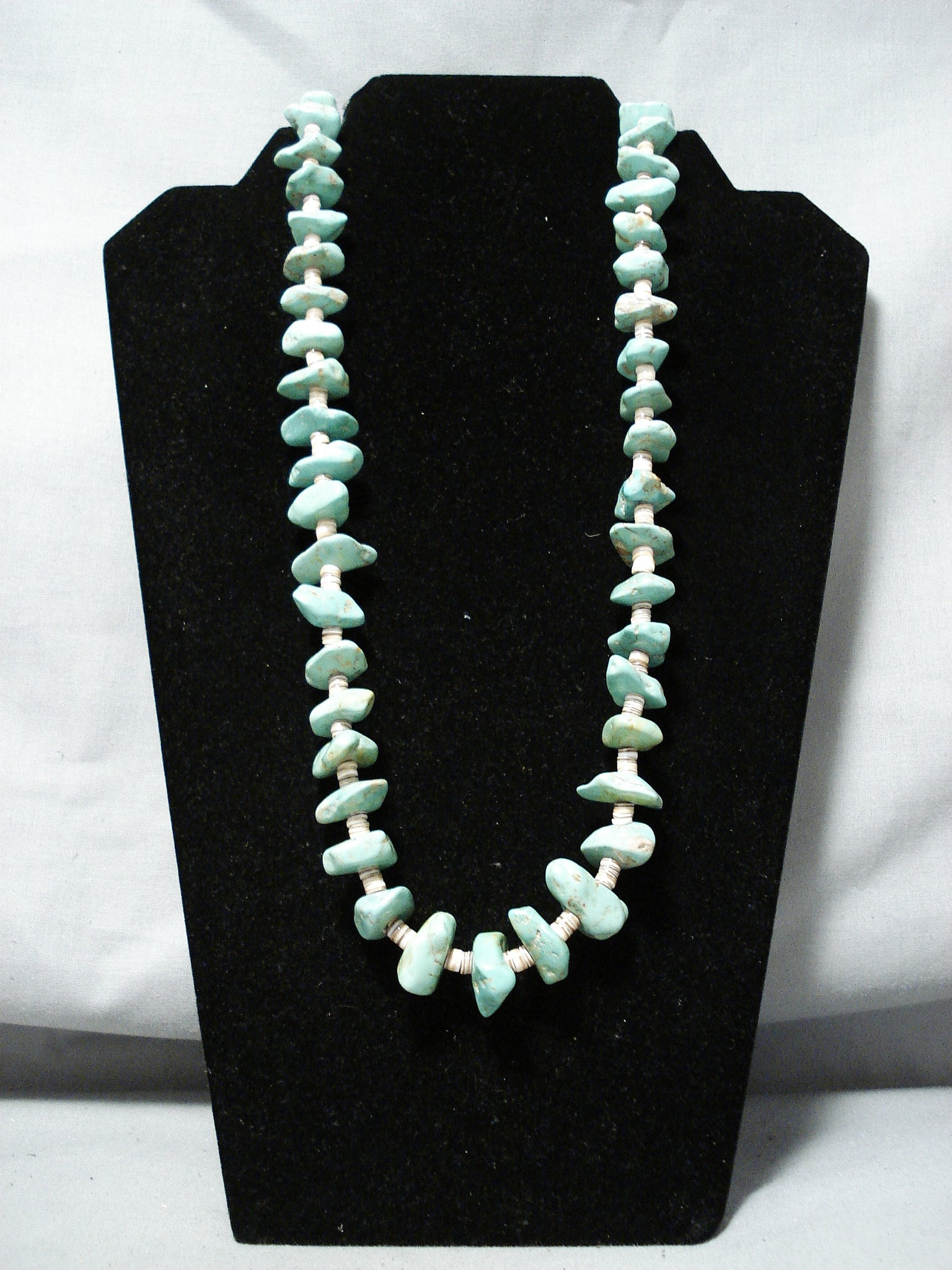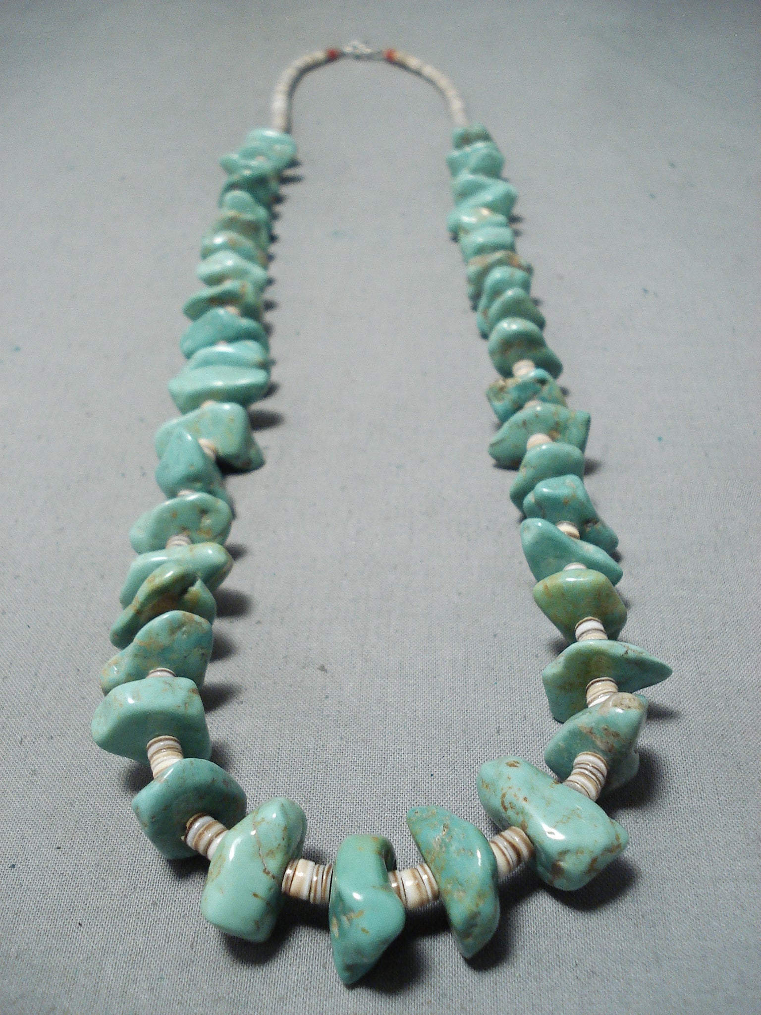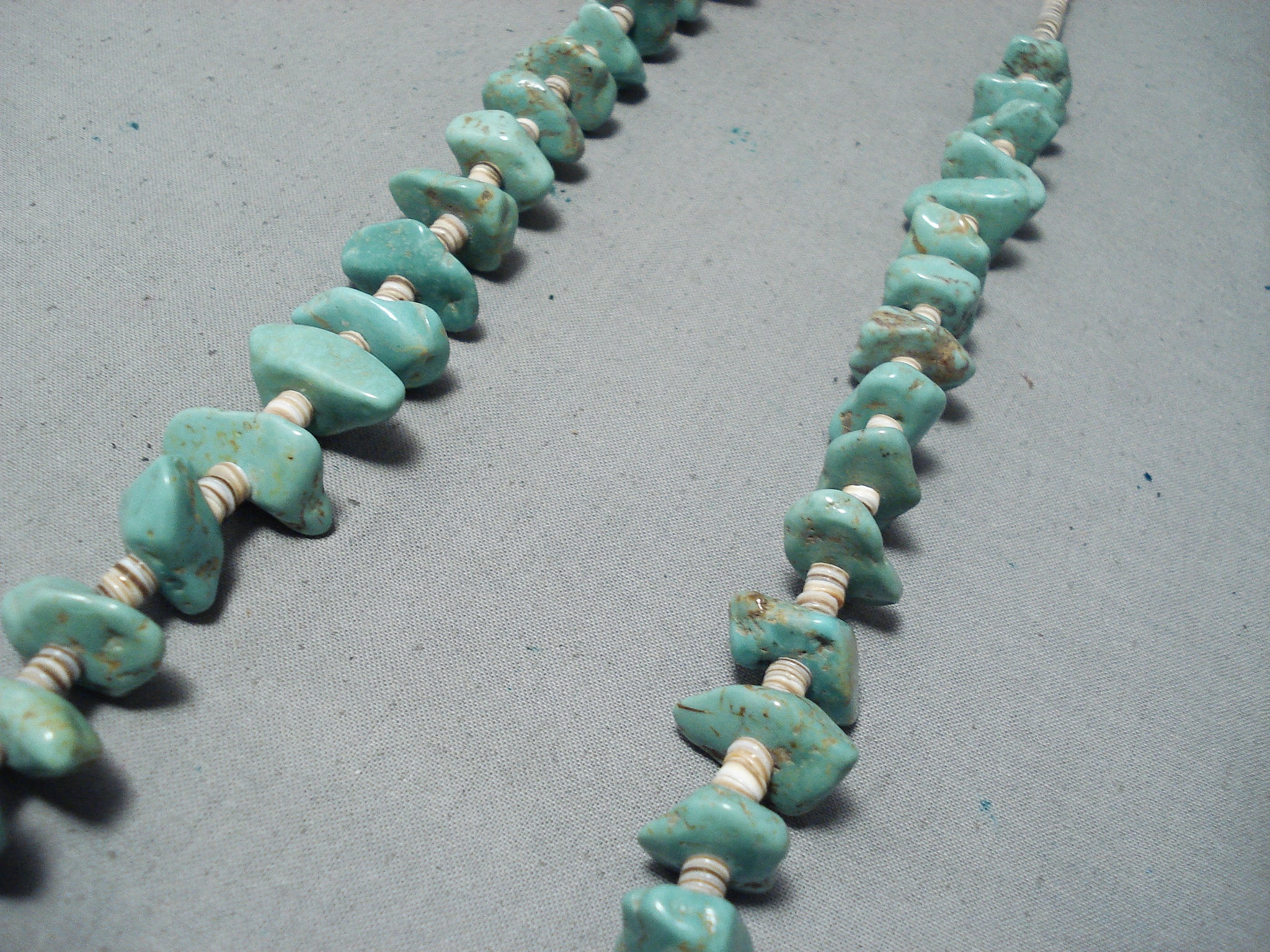 Native American Chunky Vintage Santo Domingo Royston Turquoise Sterling Silver Necklace Old