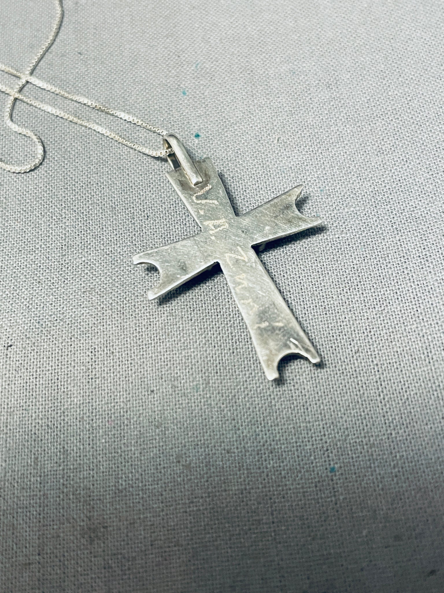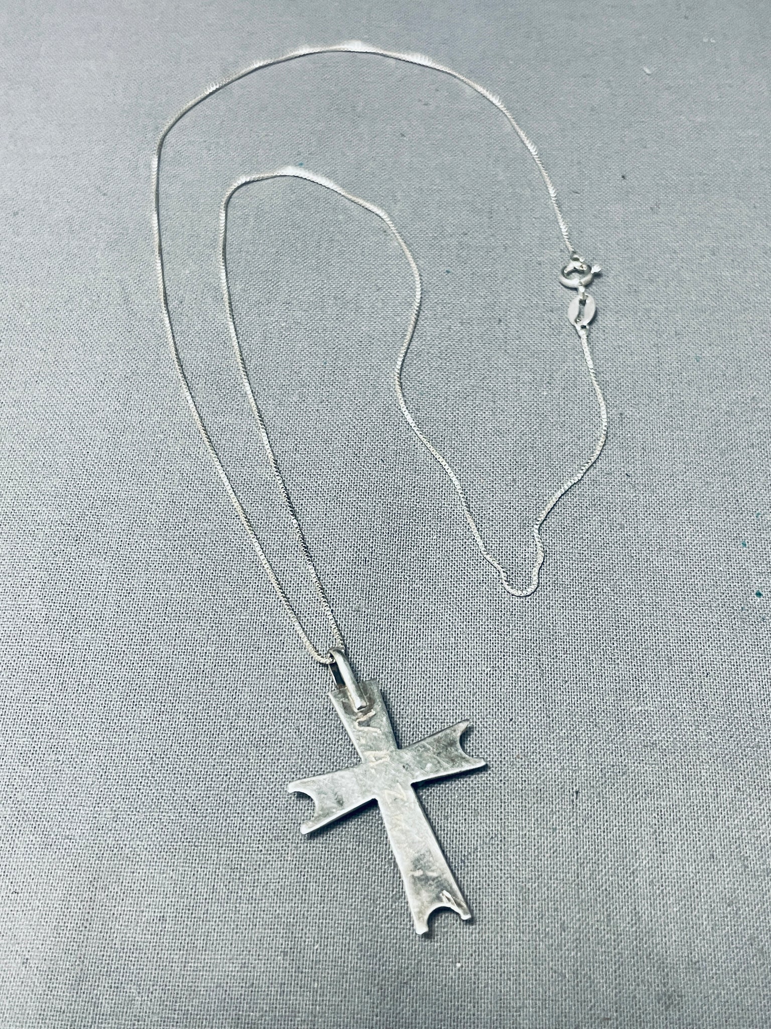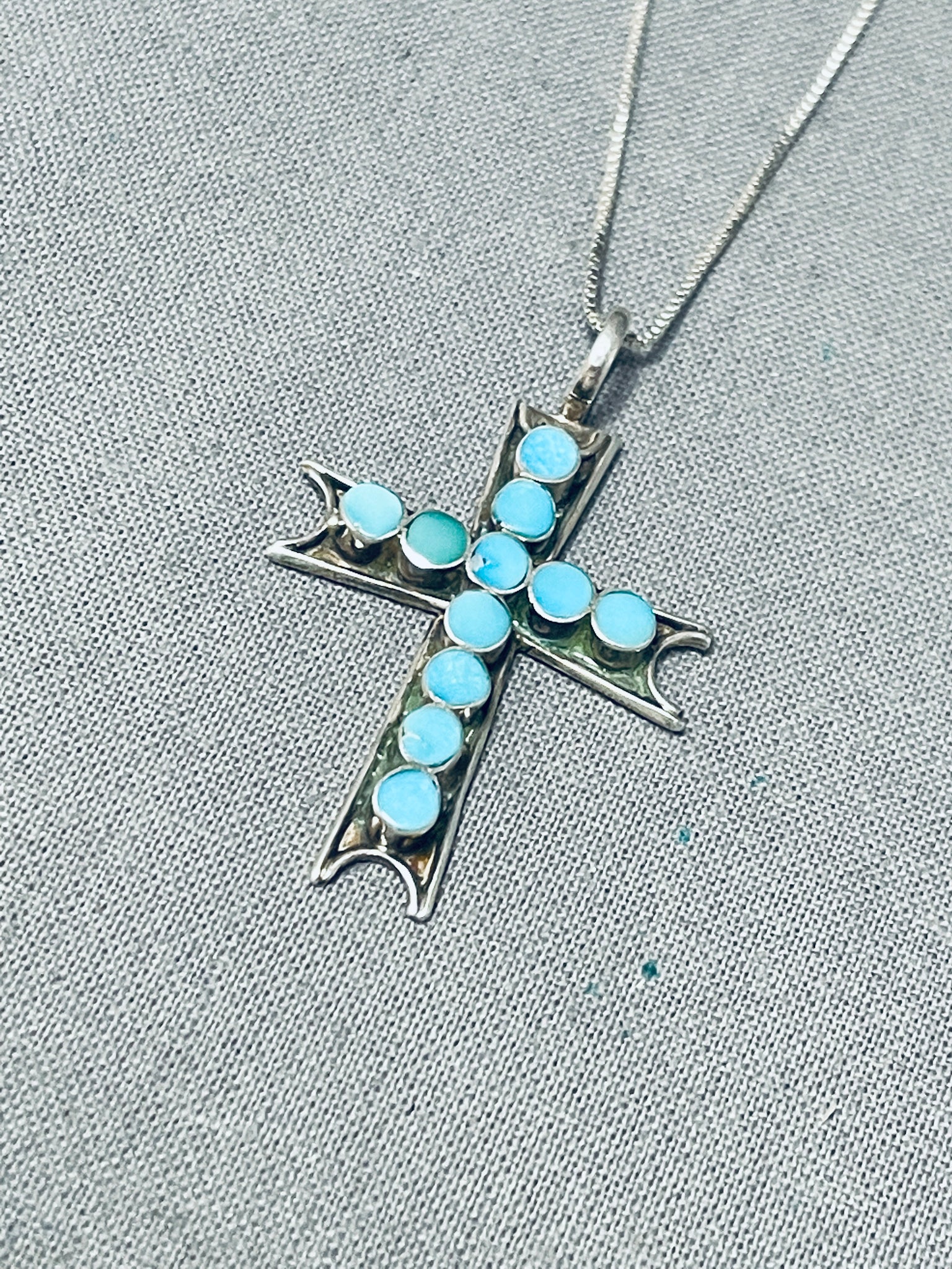 Native American Classic Vintage Zuni Blue Gem Turquoise Sterling Silver Cross Necklace