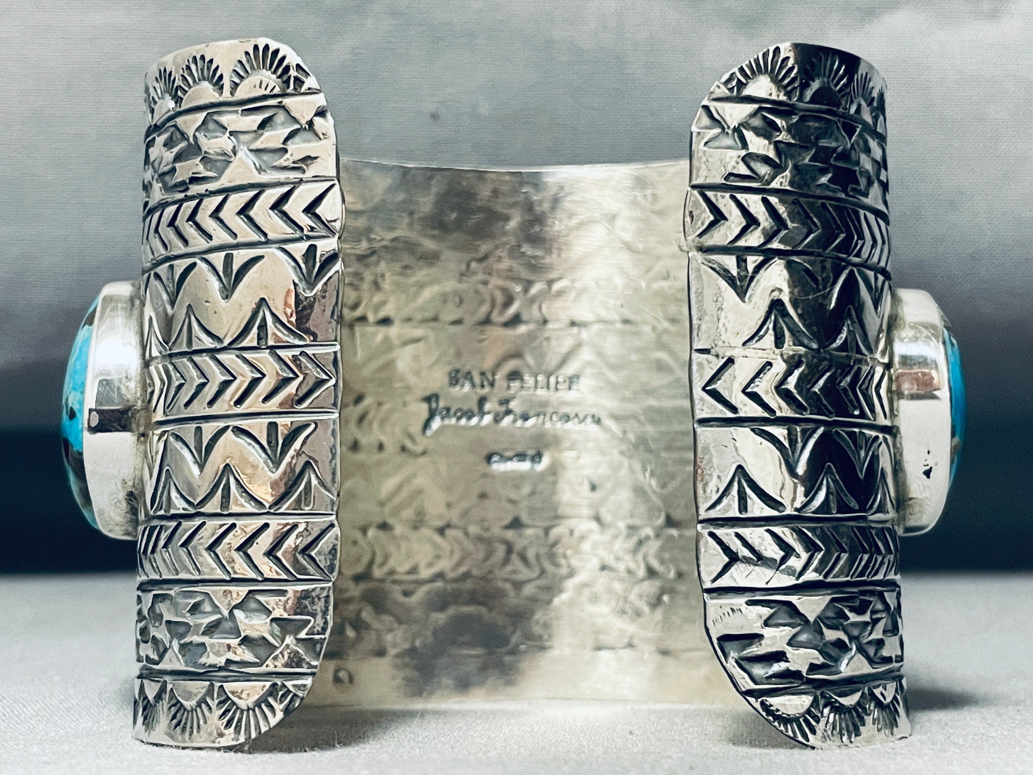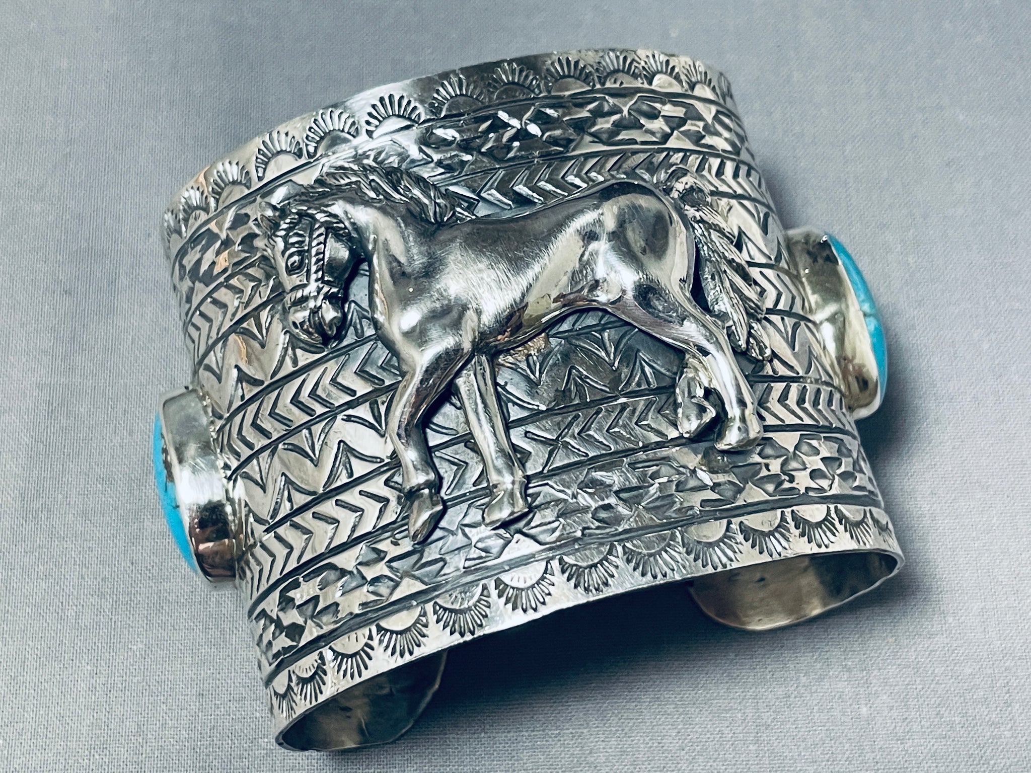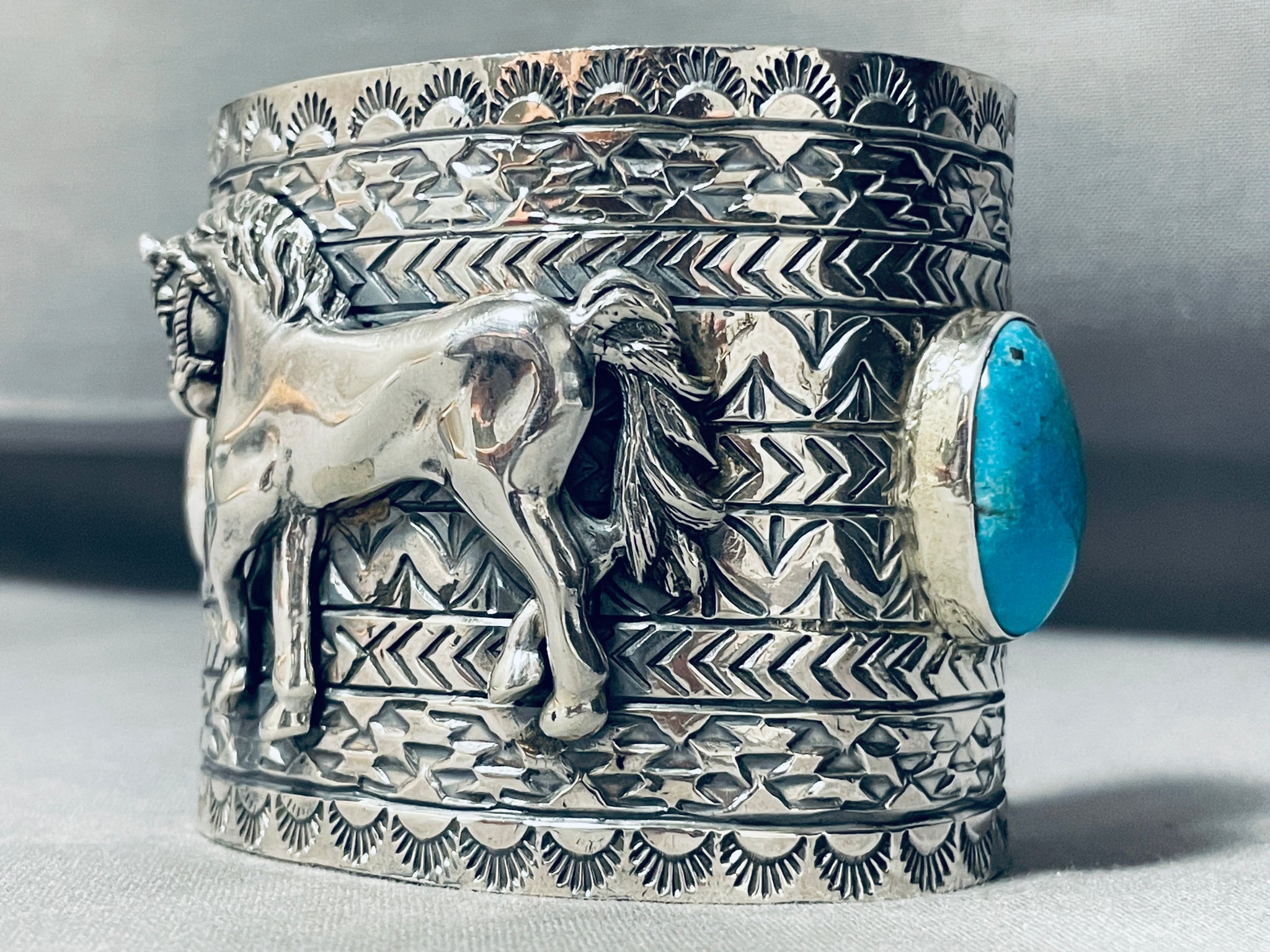 Native American Colossal Horse San Felipe Turquoise Sterling Silver Bracelet