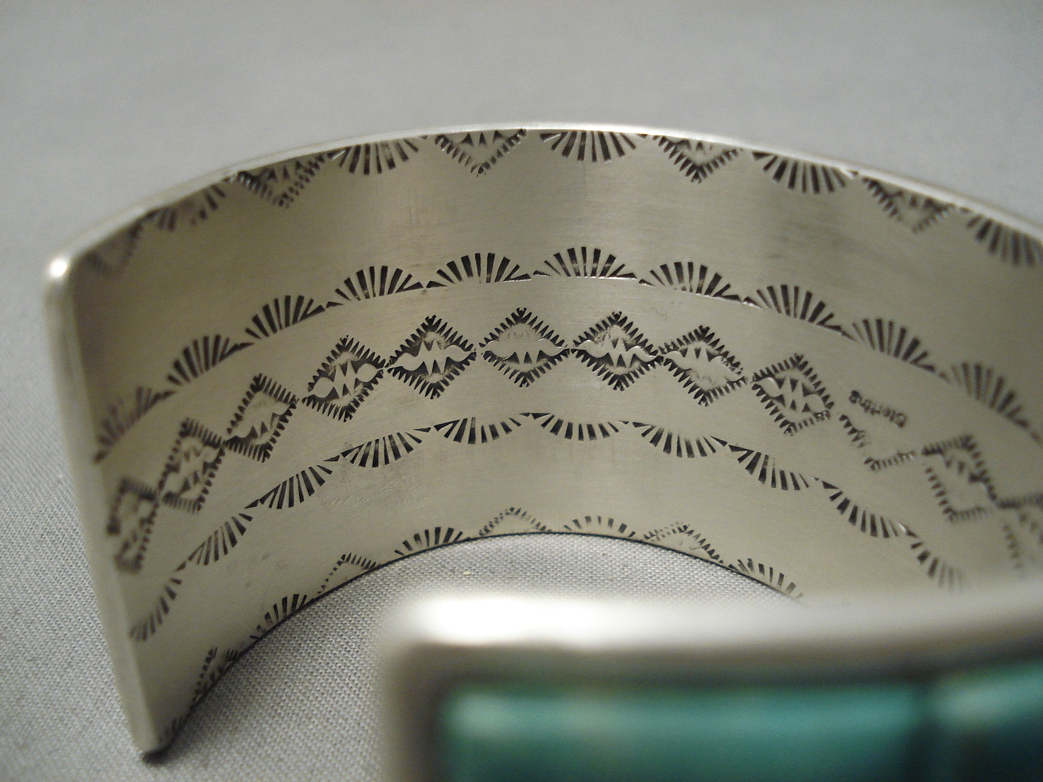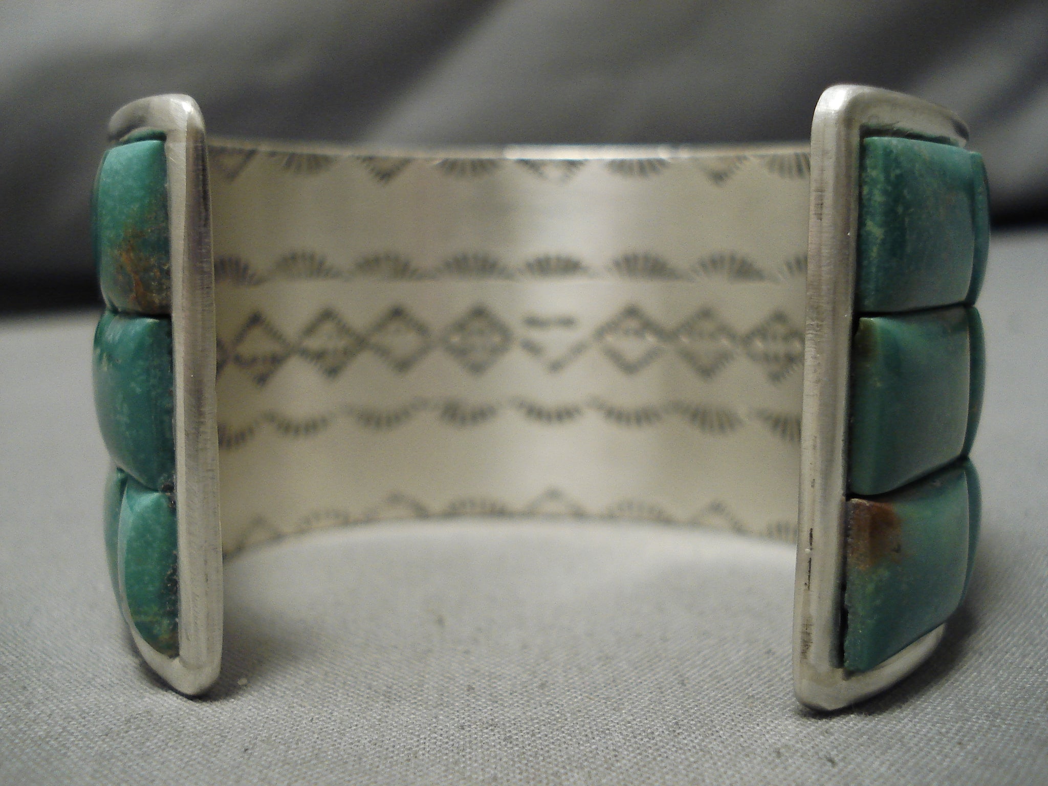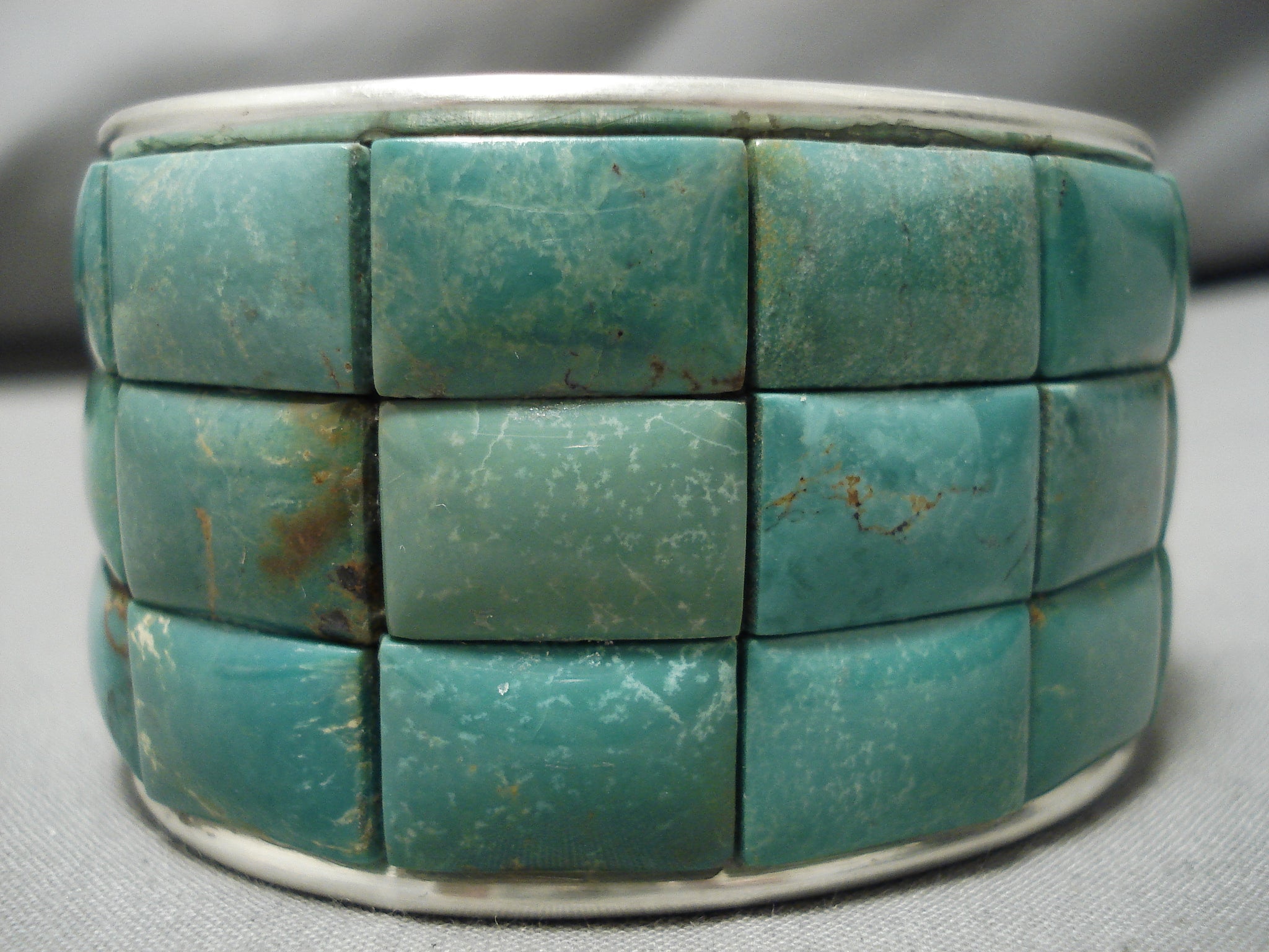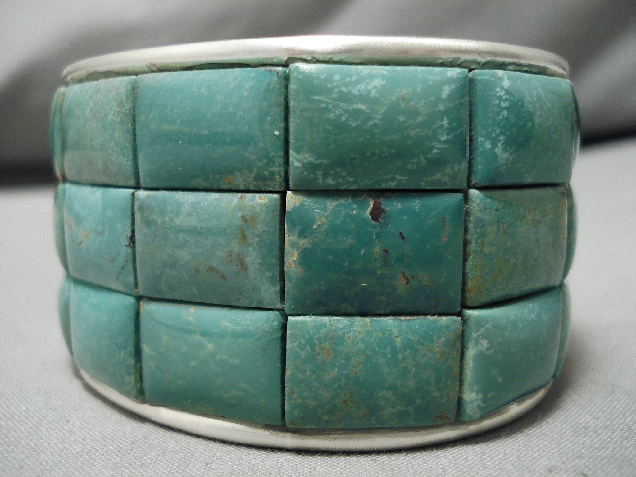 Native American Colossal Stone To Stone Inlay Green Turquoise Sterling Silver Bracelet