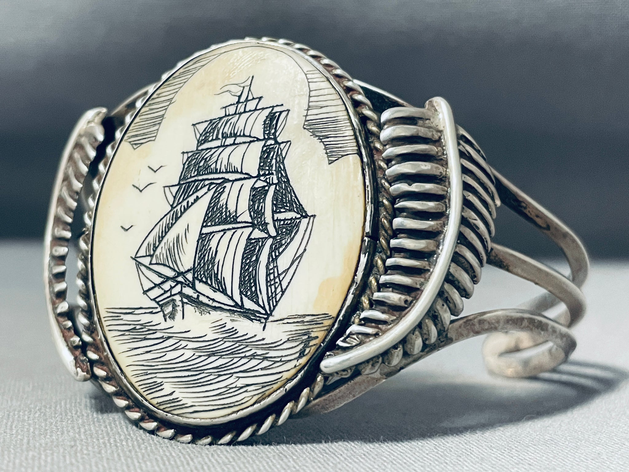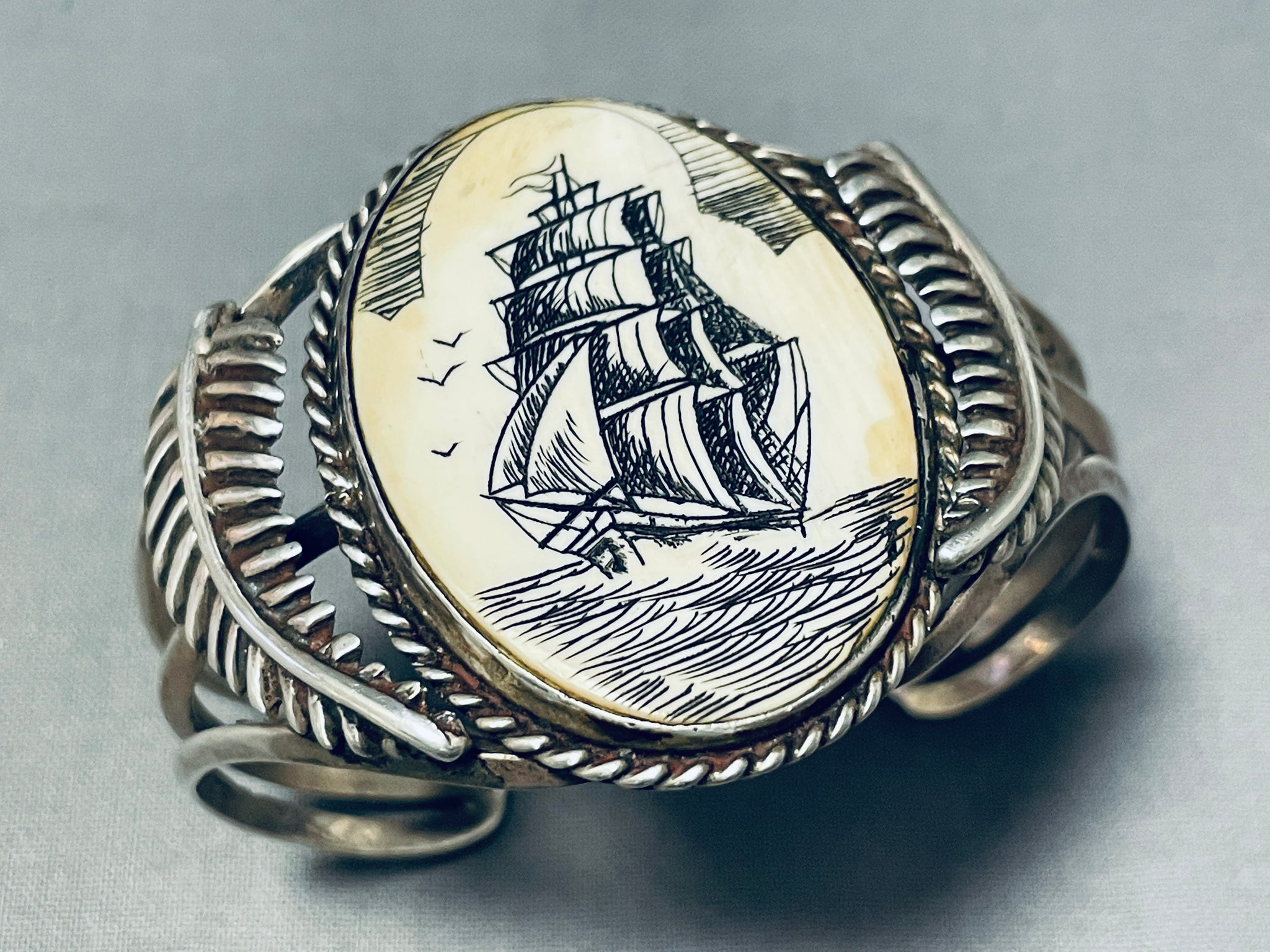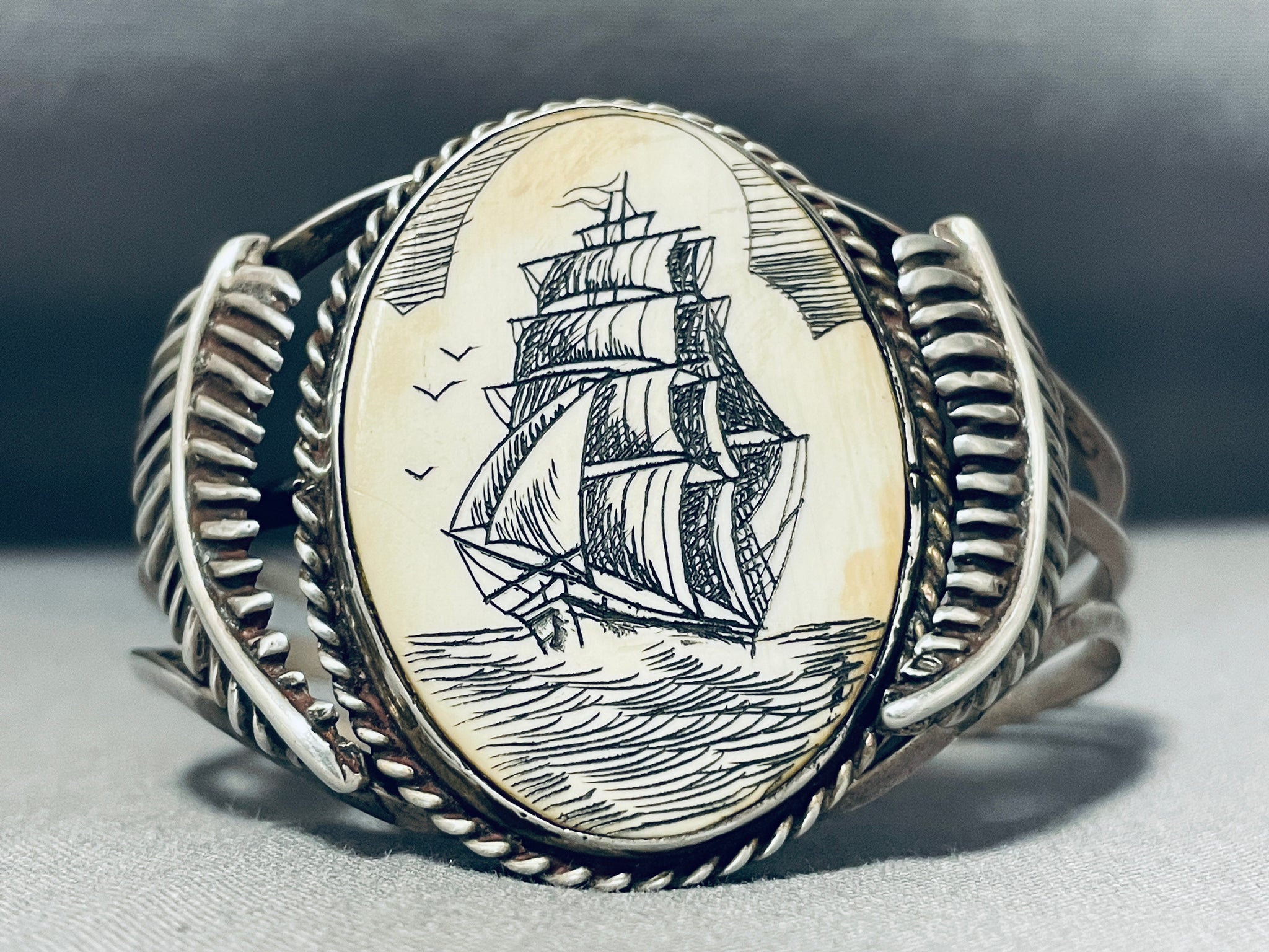 Native American Completely Hand Carved Vintage Navajo Sterling Silver Bracelet