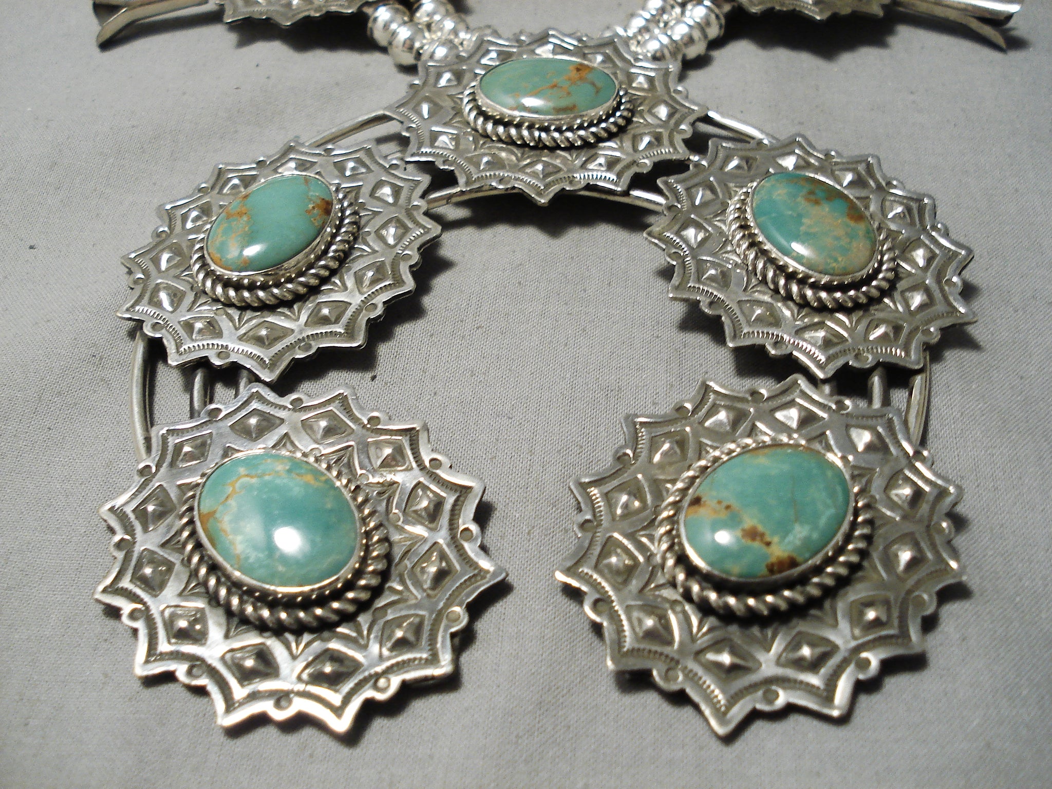 Native American Craziest Navajo Green Turquoise Sterling Silver Squash Blossom Necklace