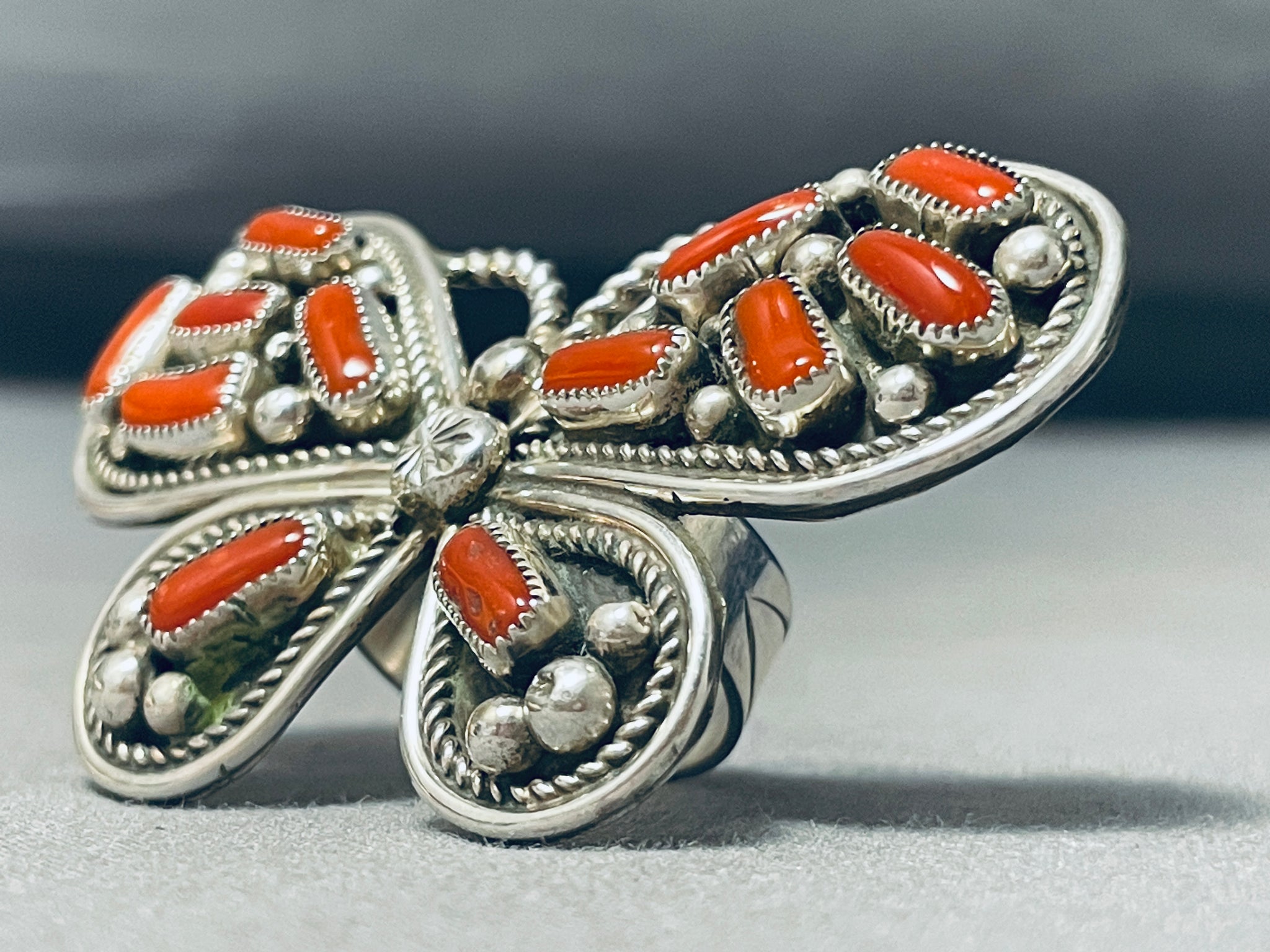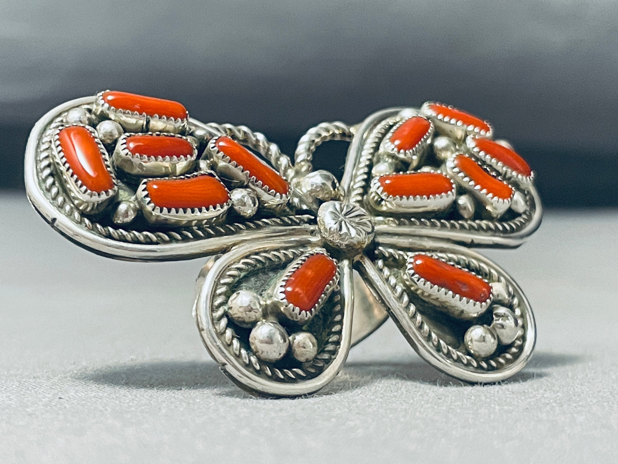 Native American Danny Brown Massive Butterfly Coral Sterling Silver Ring