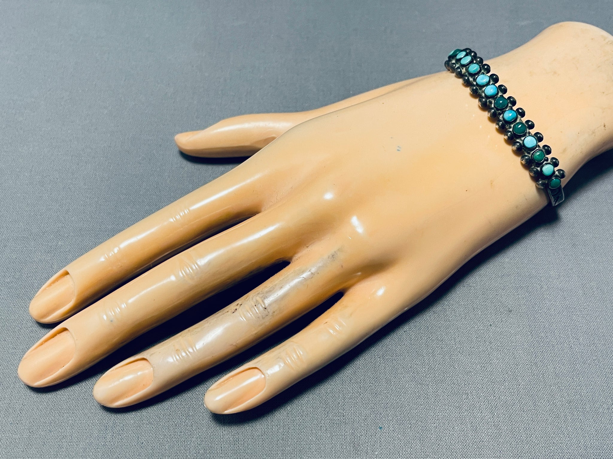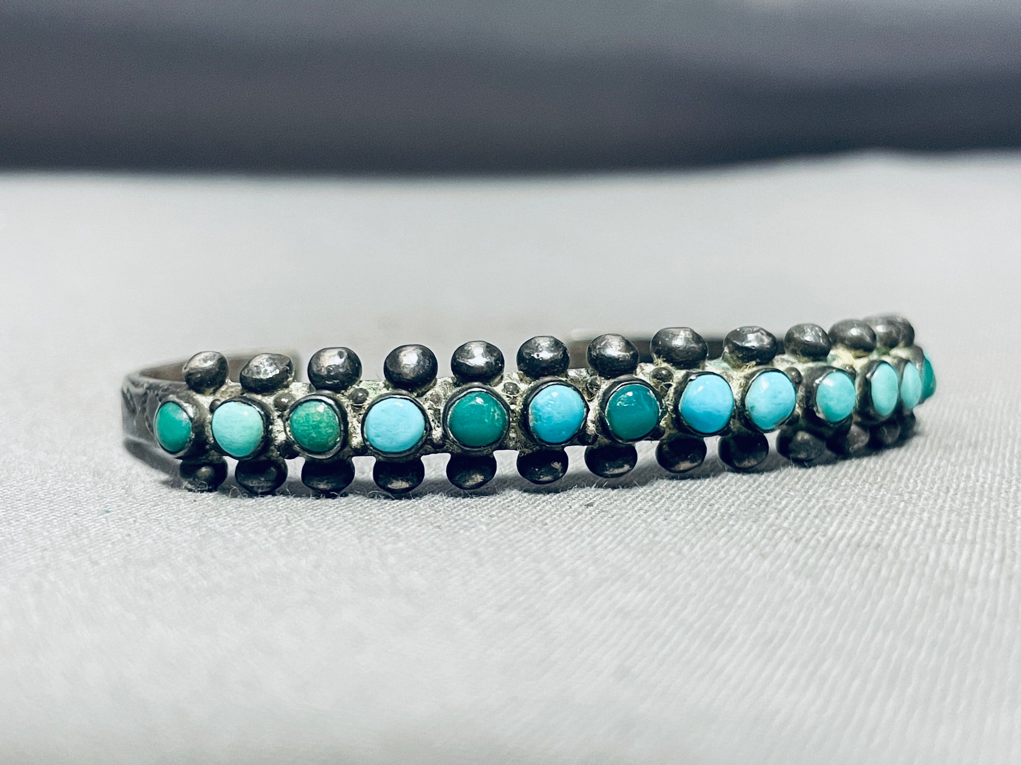 Native American Early 1900's Vintage Zuni Turquoise Eye Sterling Silver Bracelet