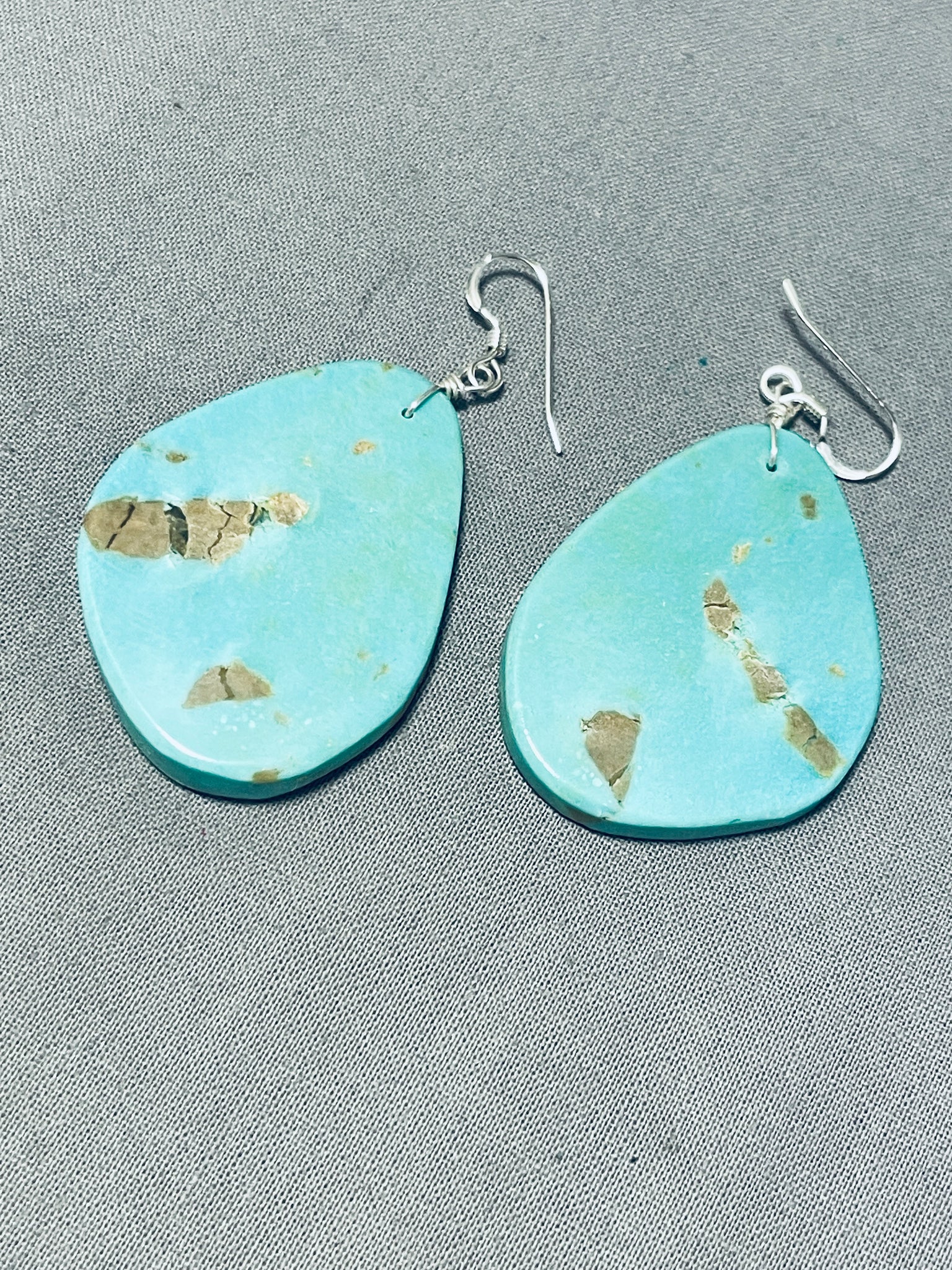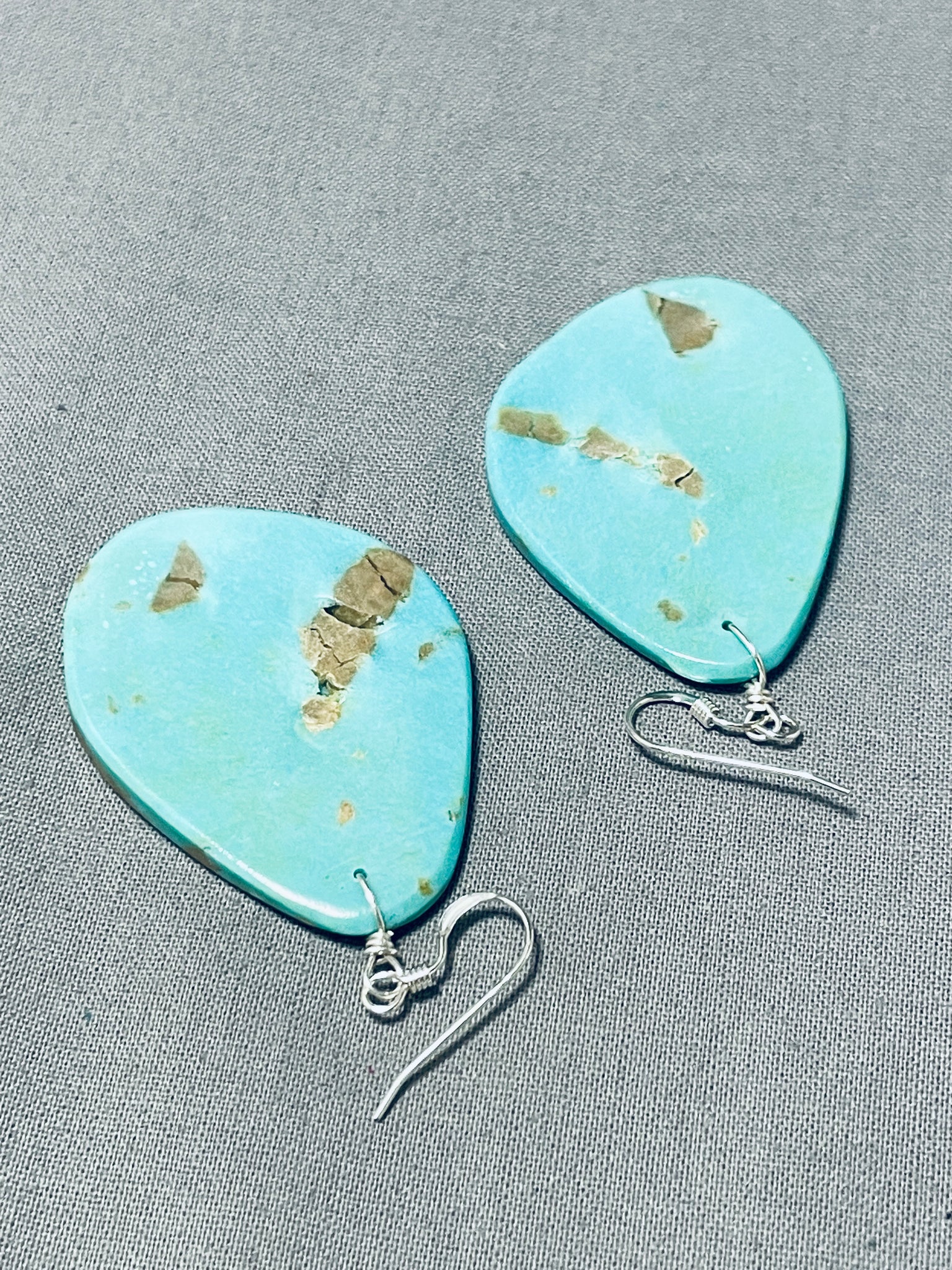 Native American Elaborate Santo Domingo Turquoise Large Slab Sterling Silver Earrings