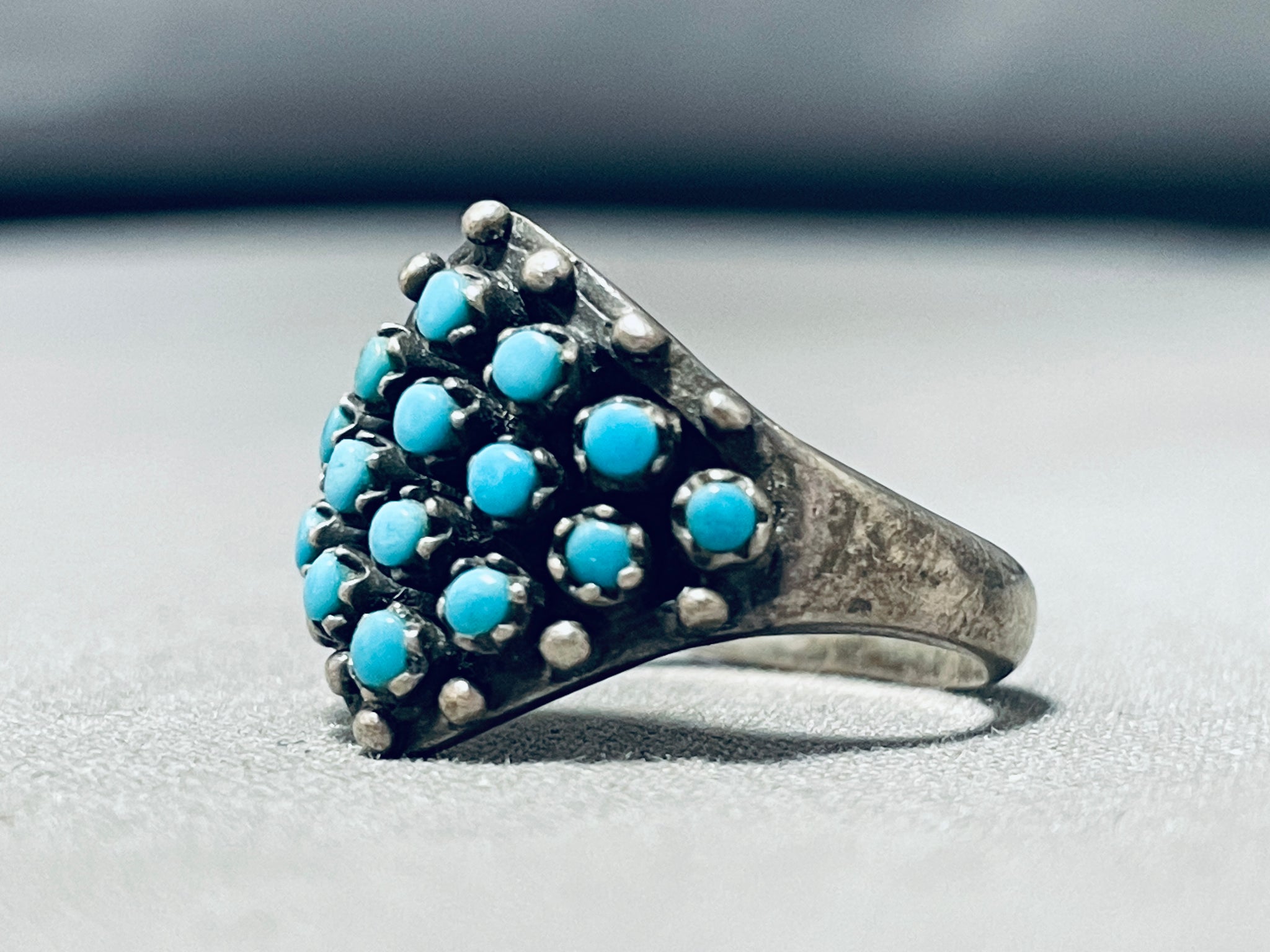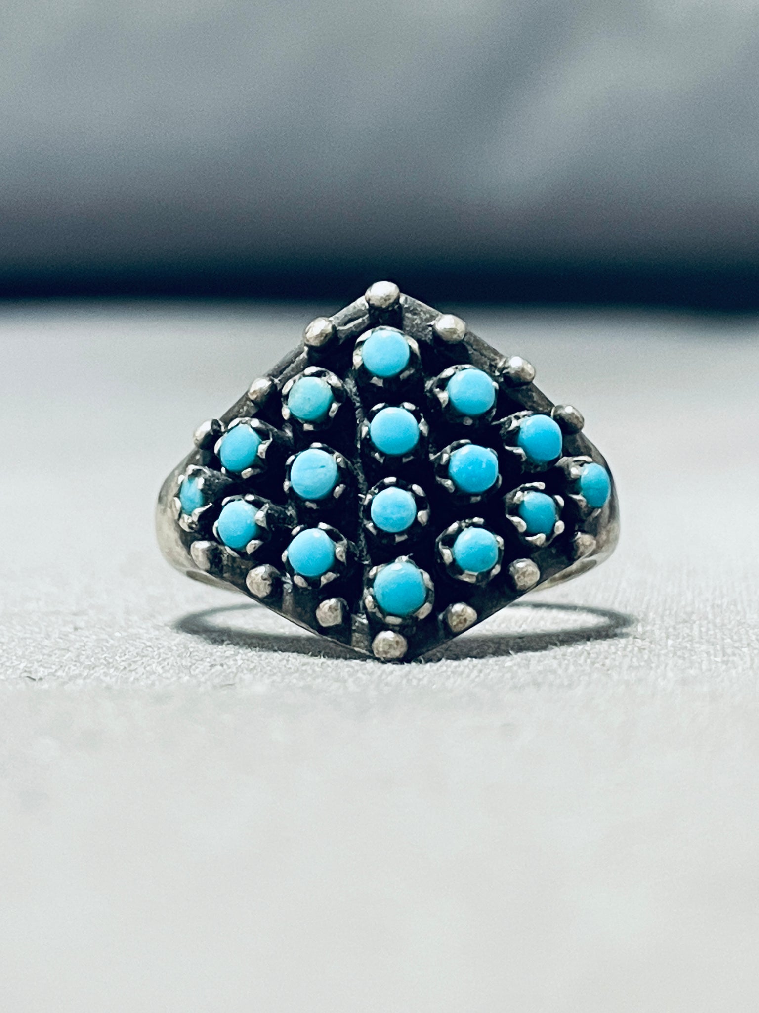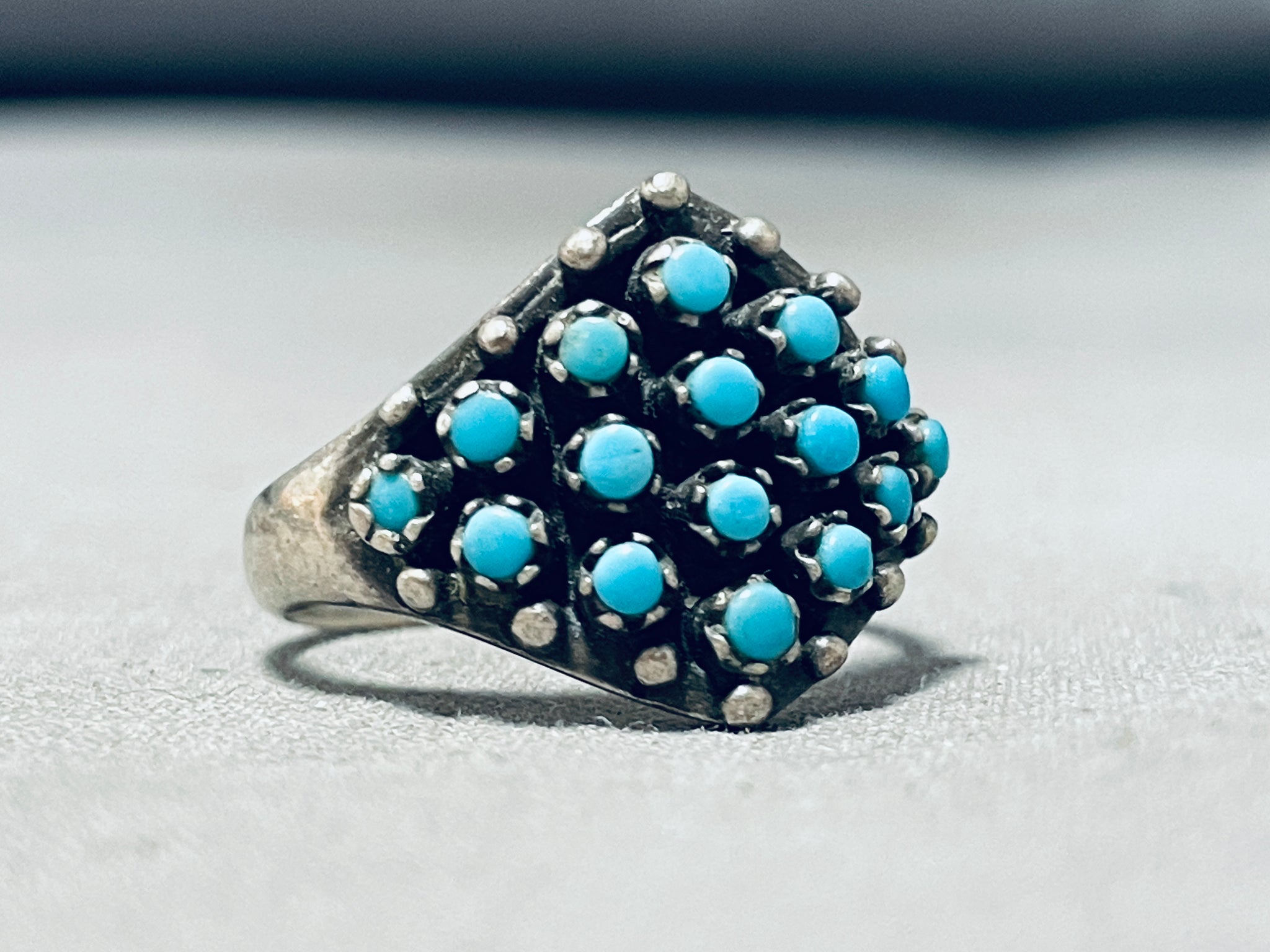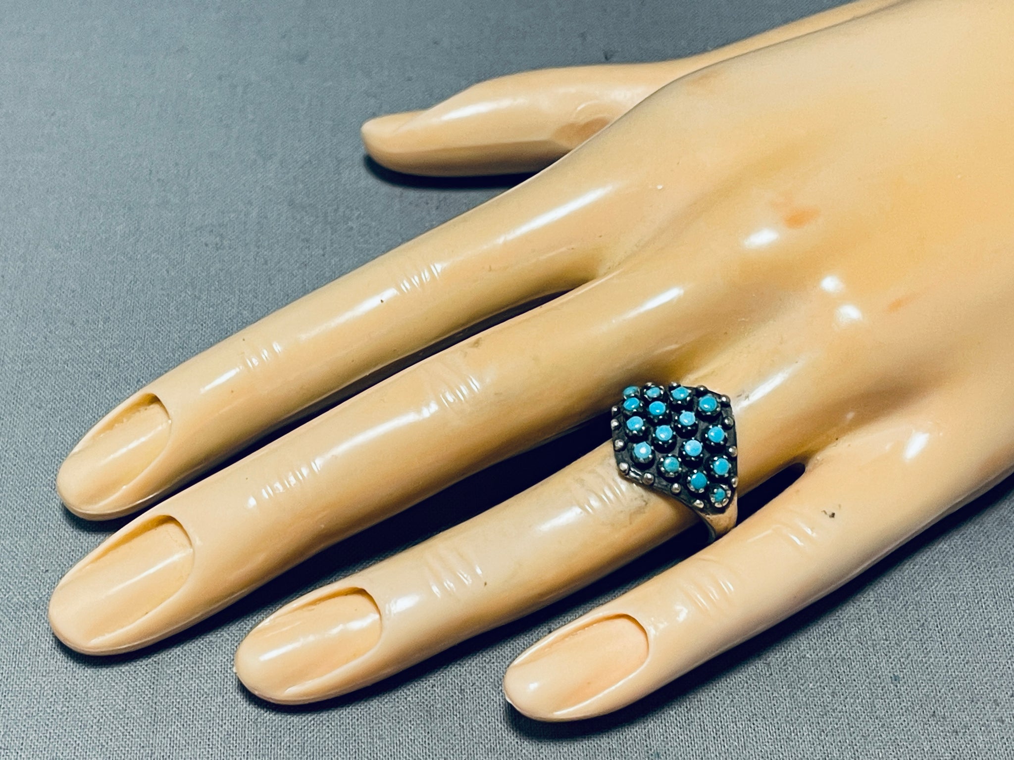 Native American Elegant Vintage Zuni Blue Gem Turquoise Sterling Silver Ring