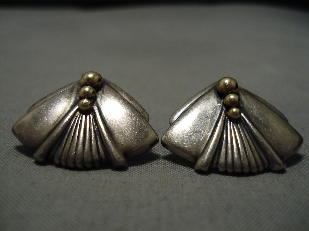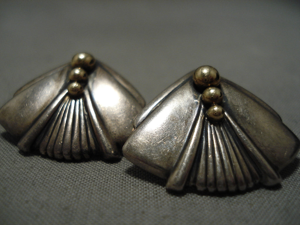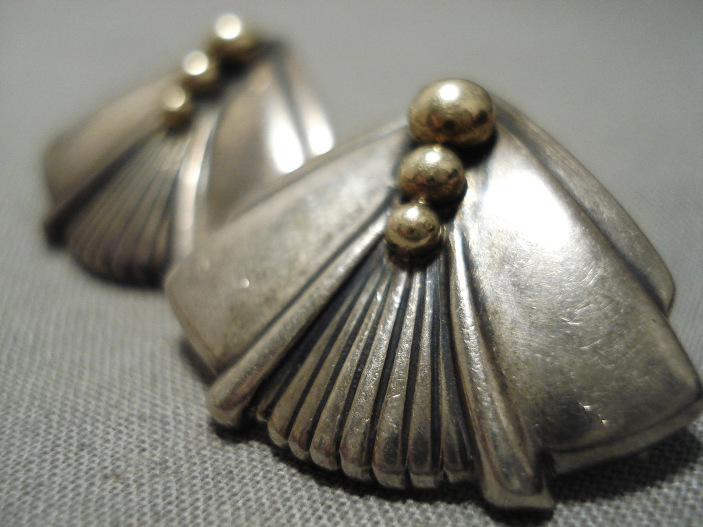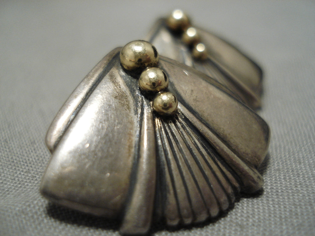 Native American Exceptional Vintage Cherokee 18k Gold David Dean Sterling Silver Earrings