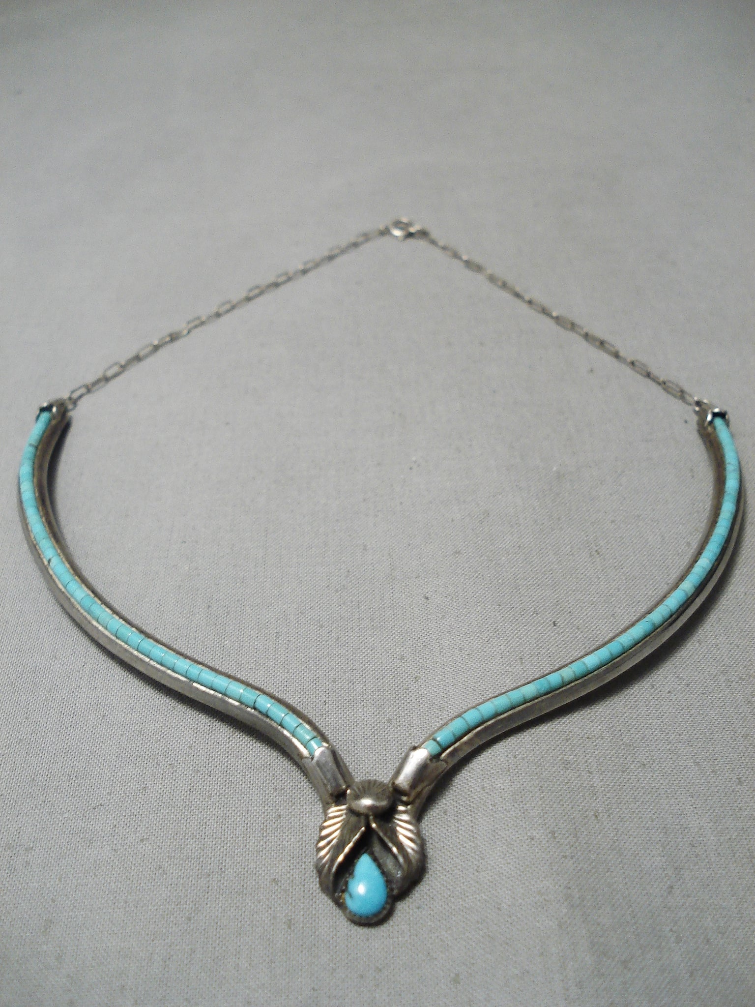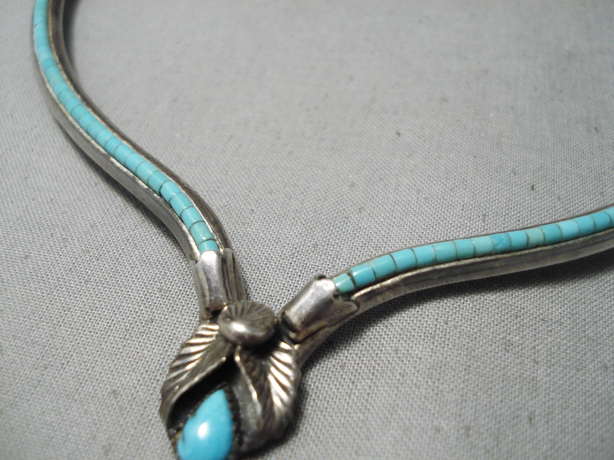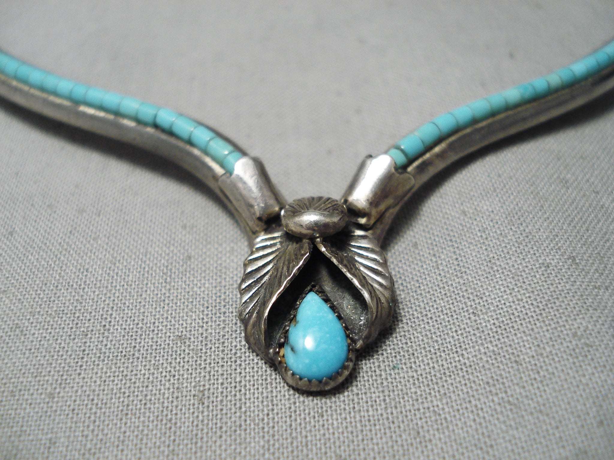 Native American Exceptional Vintage Navajo Turquoise Heishi Sterling Silver Necklace Old