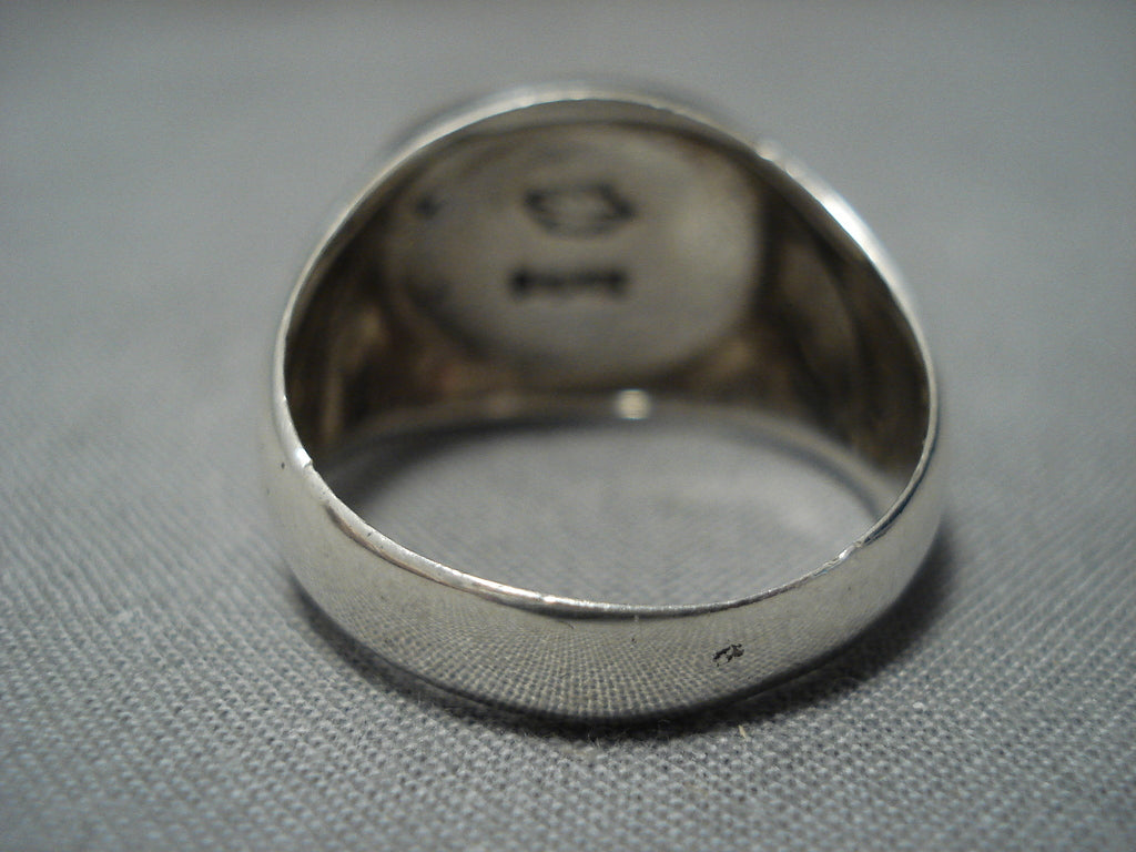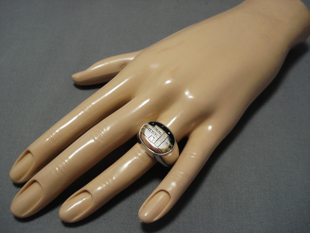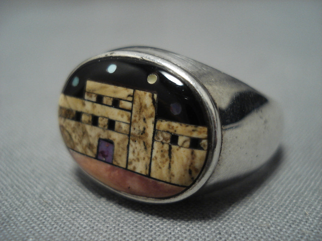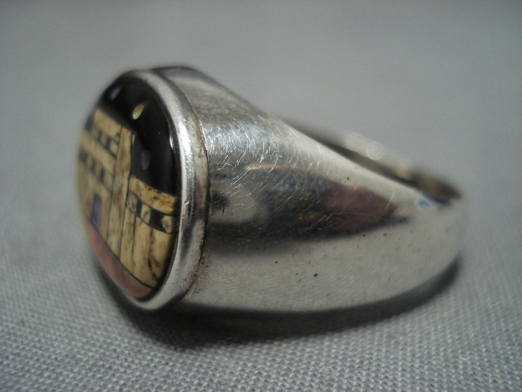 Native American Extremely Detailed Vintage Navaj Turquoise Pueblo Inlay Sterling Silver Ring Old