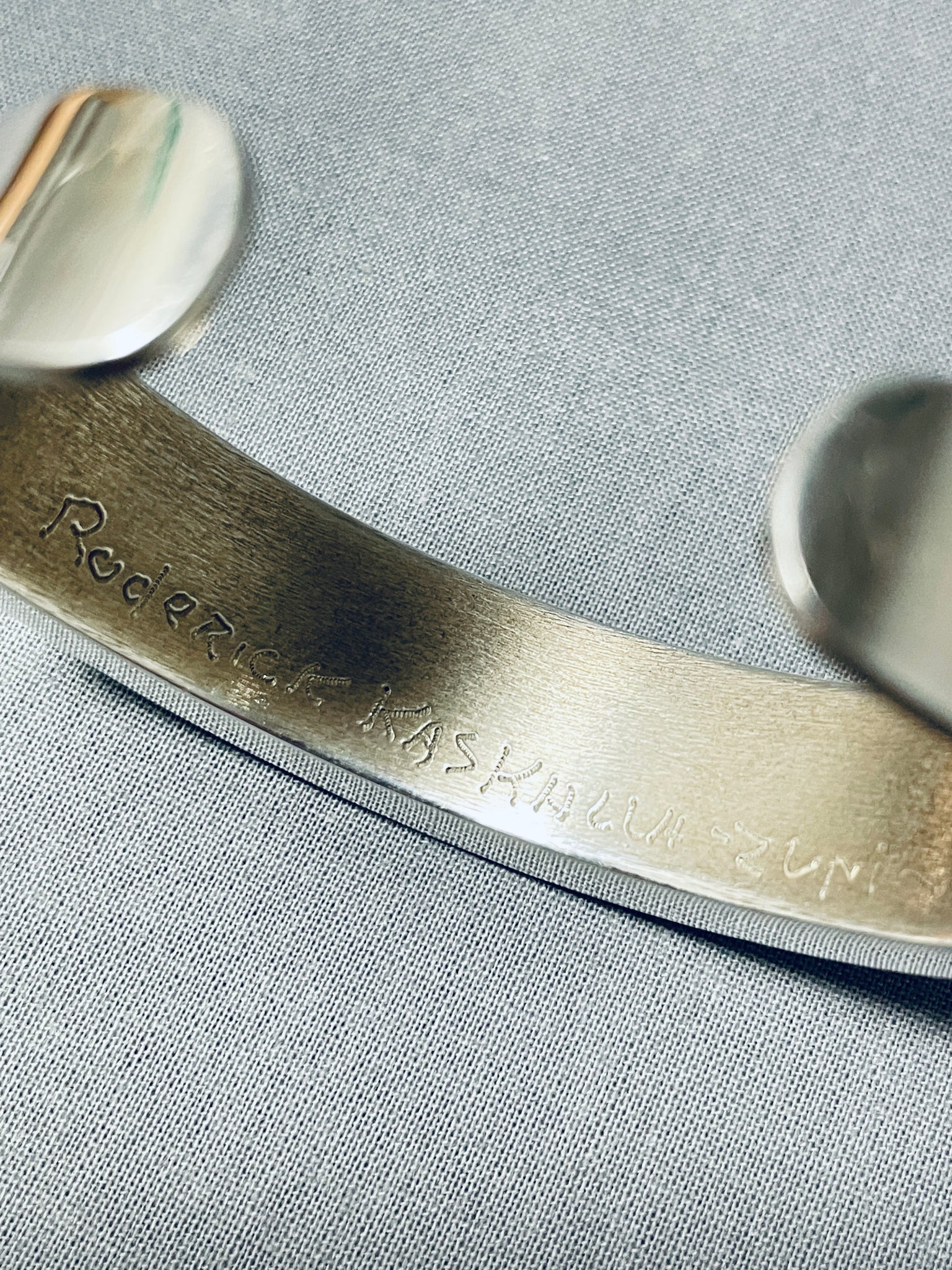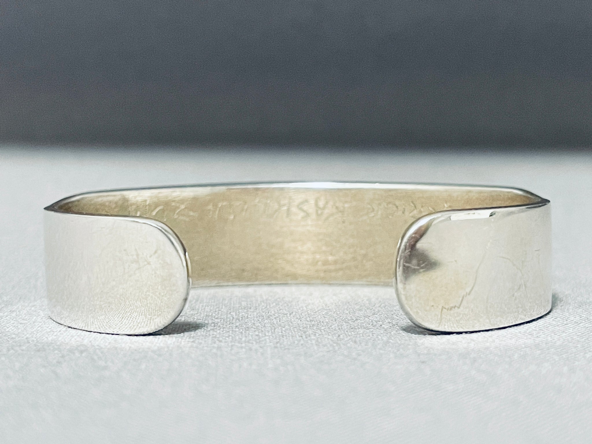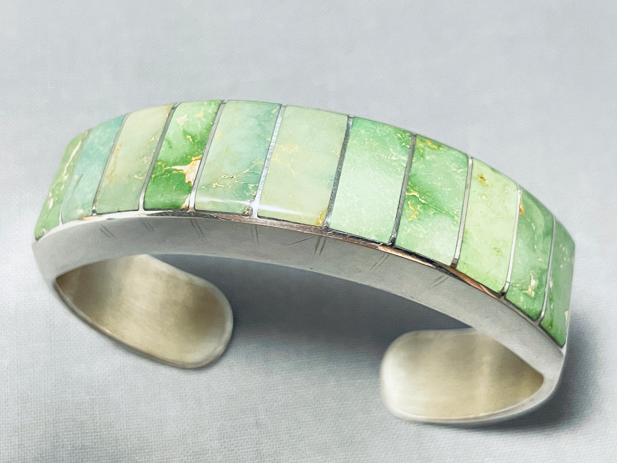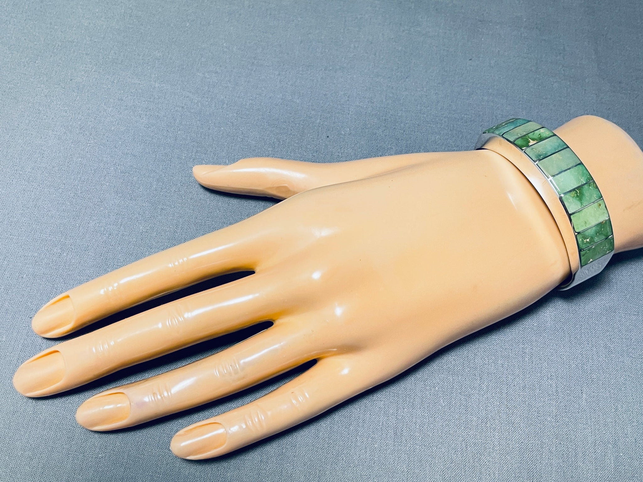 Native American Extremely Rare Damale Turquois Einlay Vintage Navajo Sterling Silver Bracelet