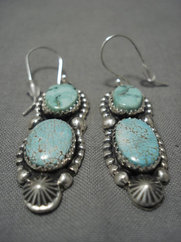 Native American Fabulous Jeanette Dale Sterling Silver #8 And Tortoise Turquoise Earrings