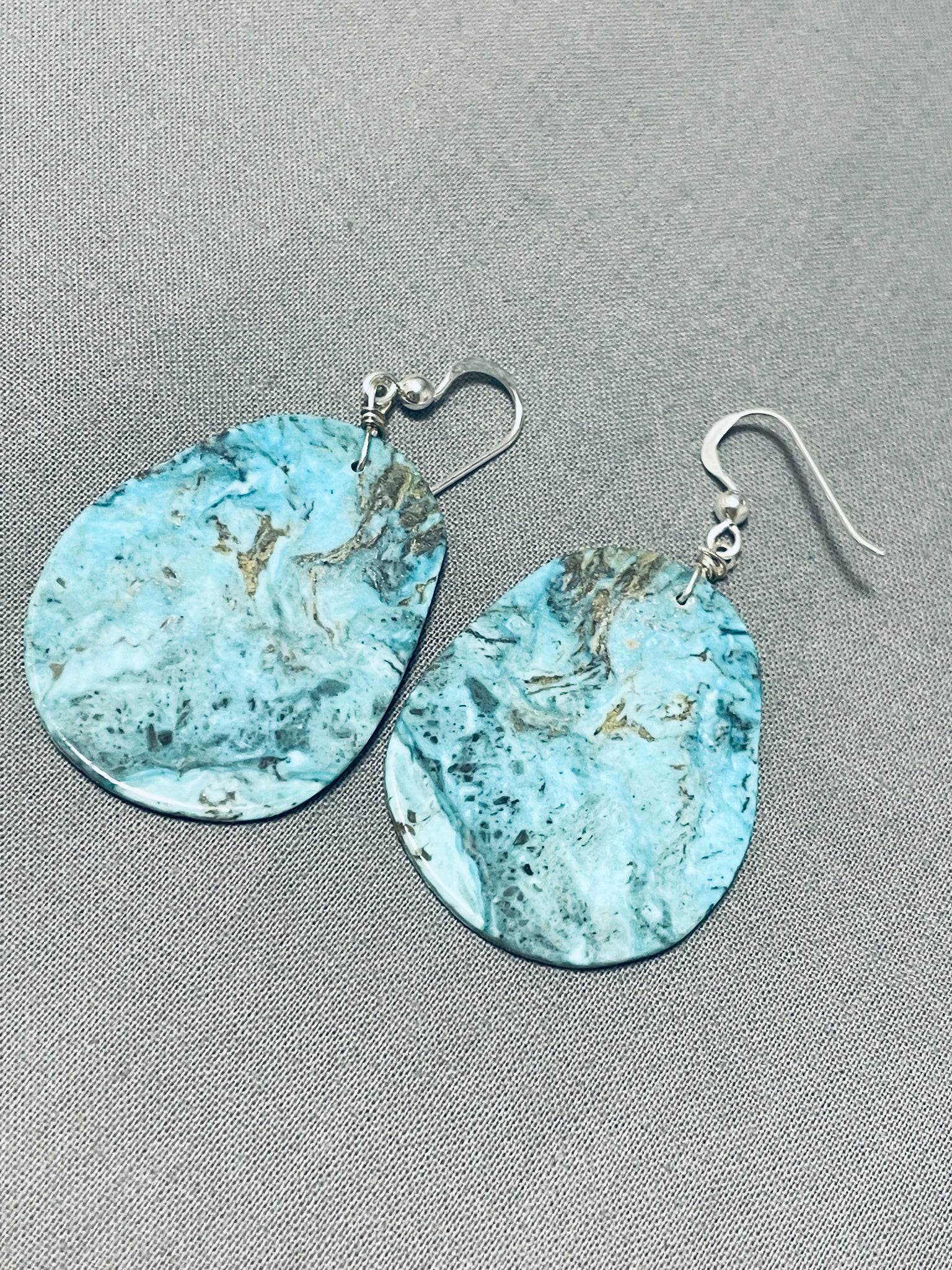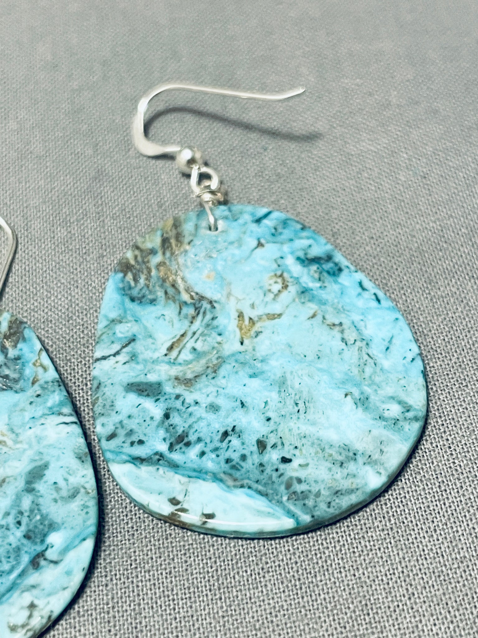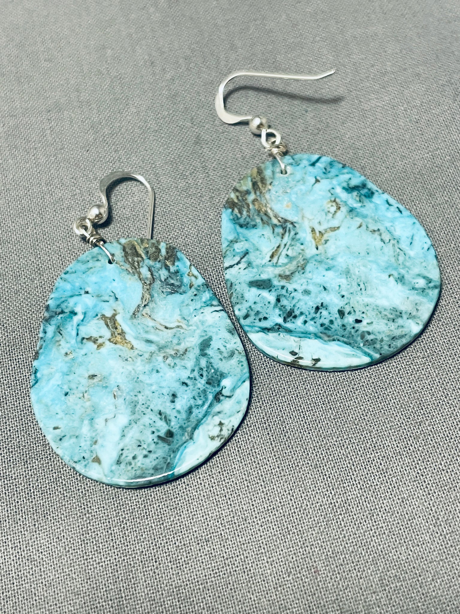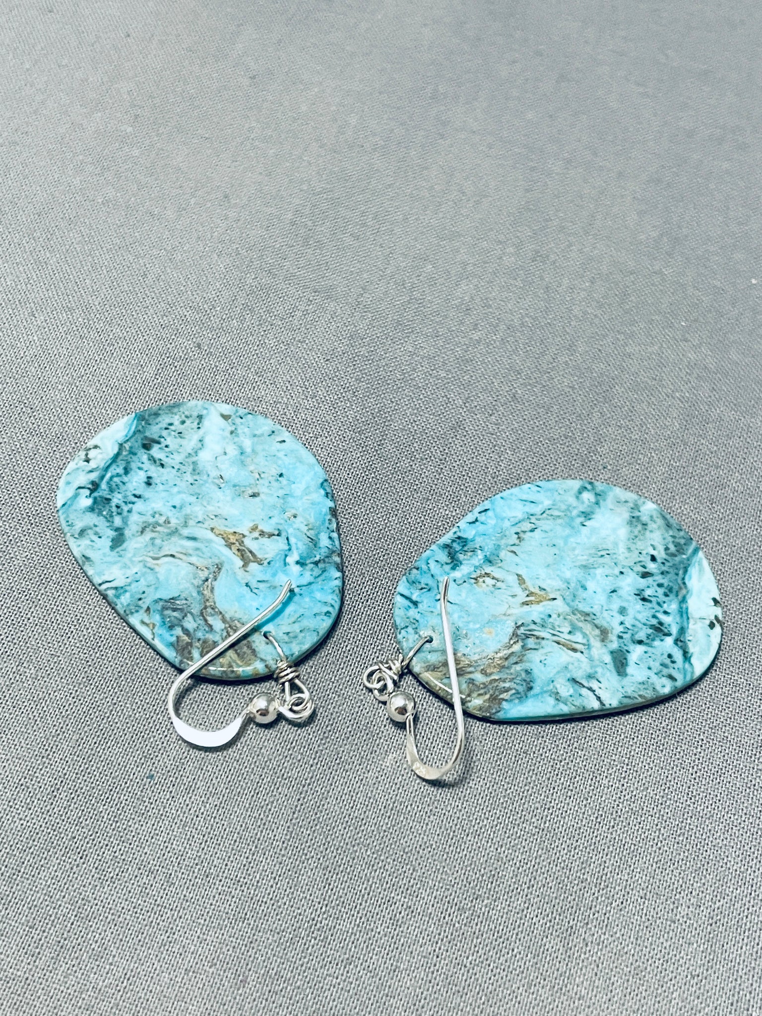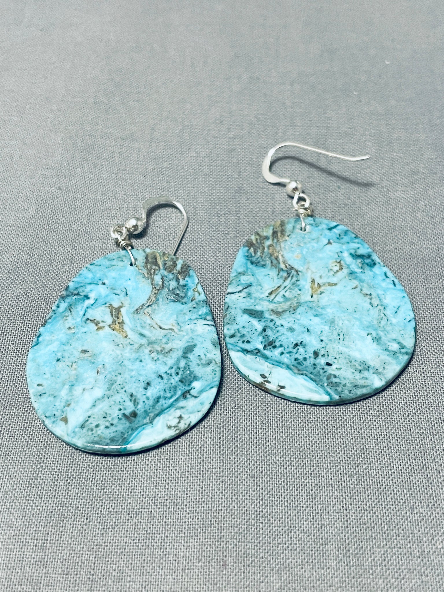 Native American Fabulous Santo Domingo Large Turquoise Slab Sterling Silver Earrings