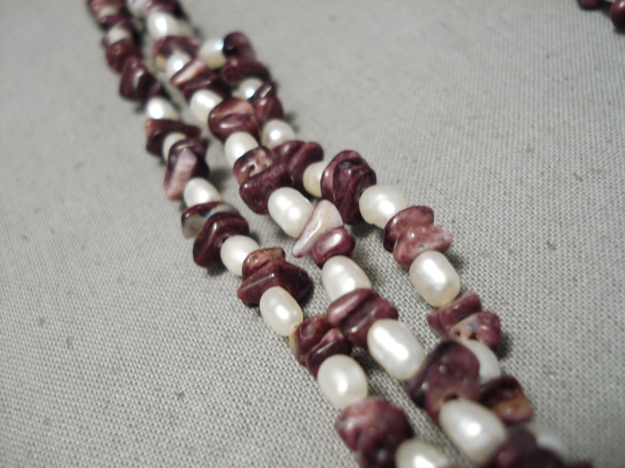 Native American Fabulous Vintage Santo Domingo Purple Shell Sterling Silver Necklace