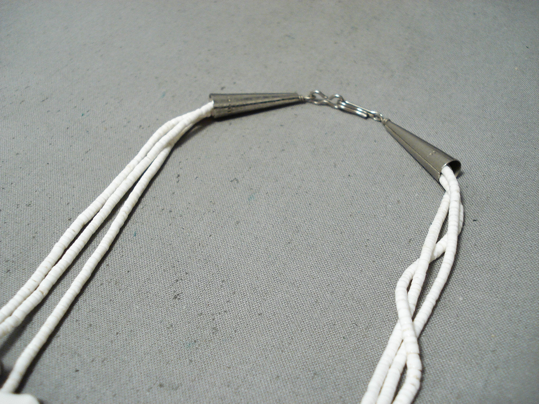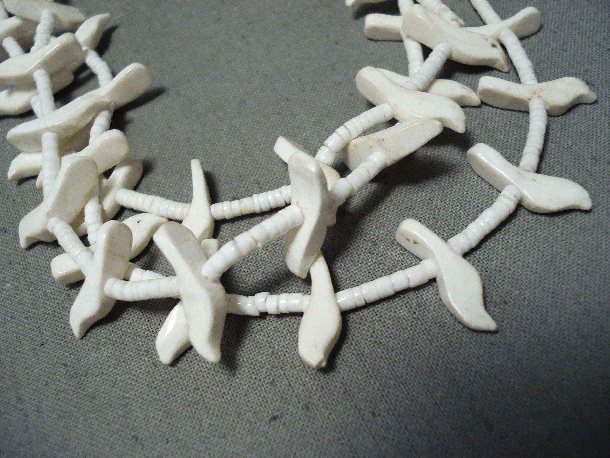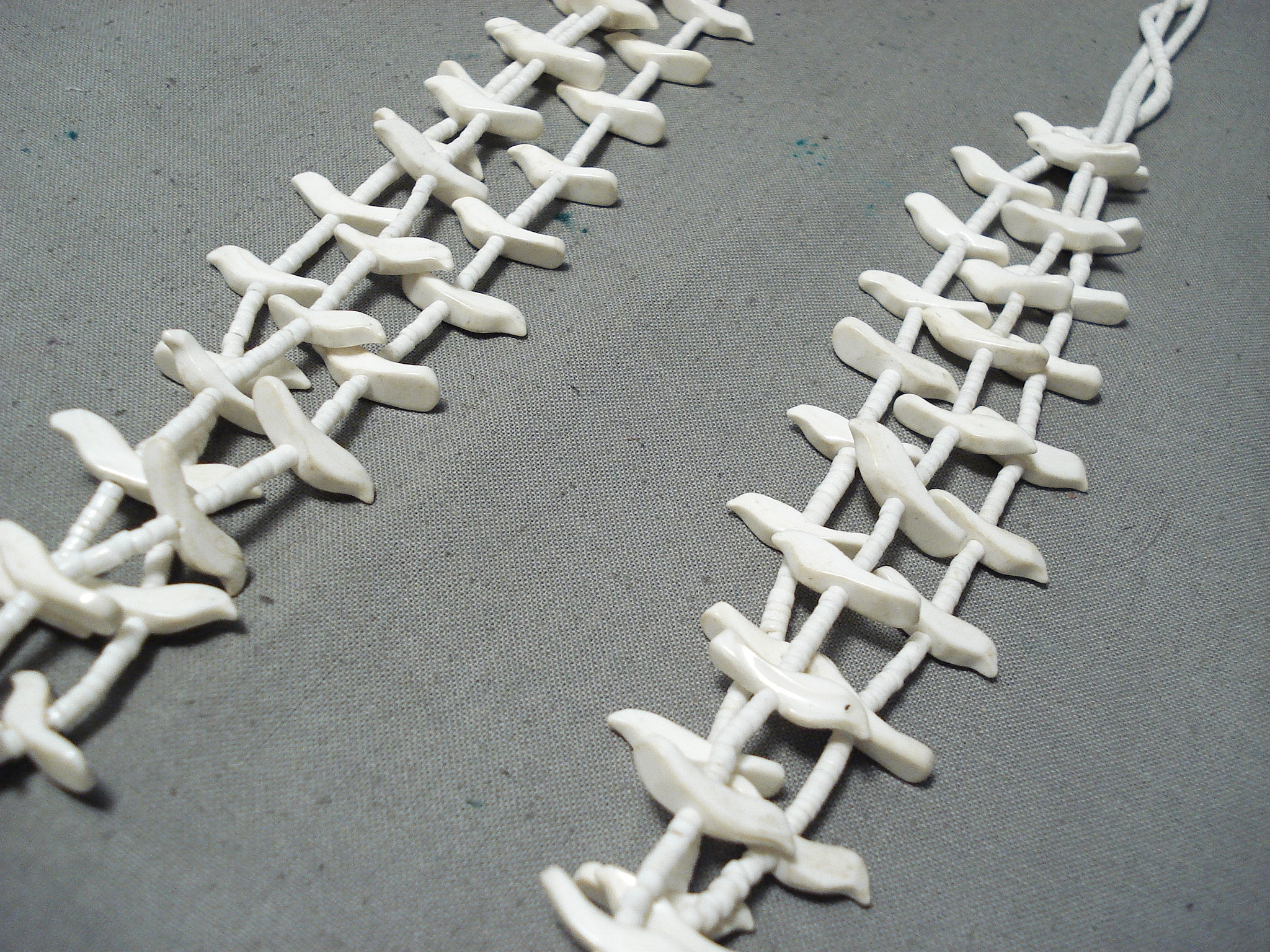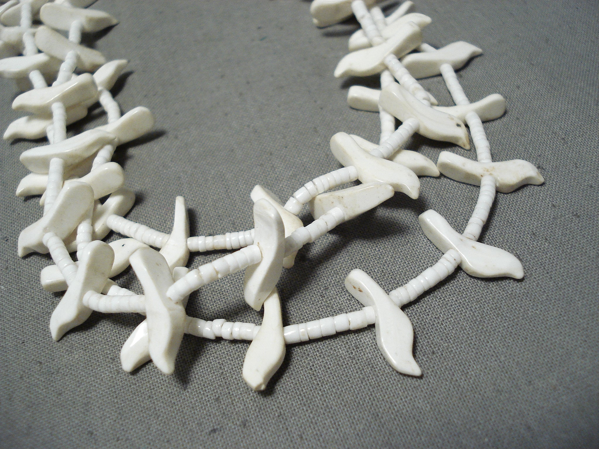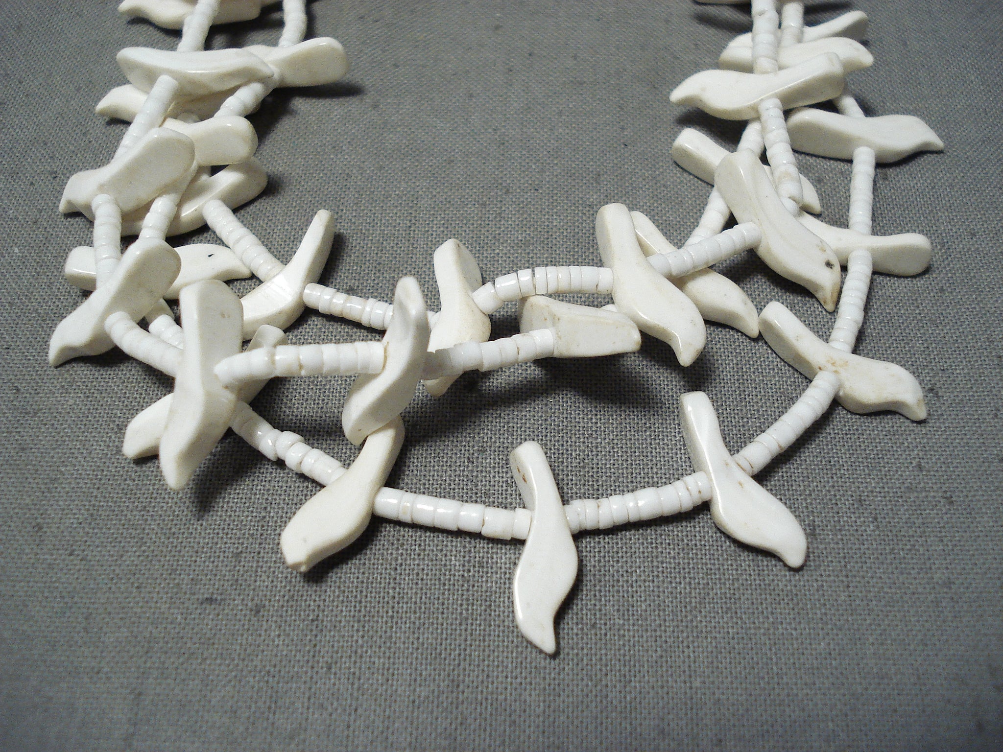 Native American Fabulous Vintage Santo Domingo White Shell Sterling Silver Bird Fetish Necklace